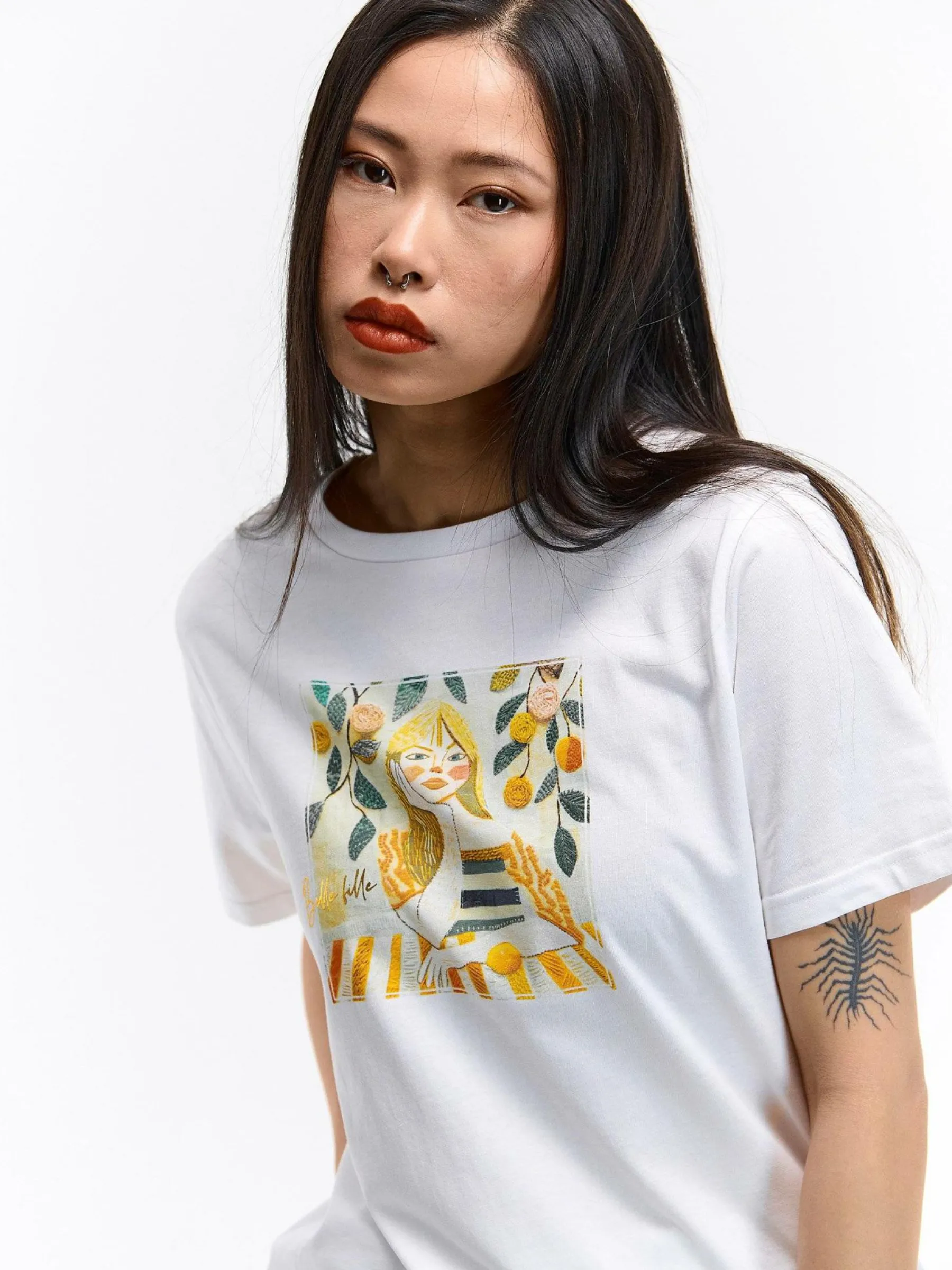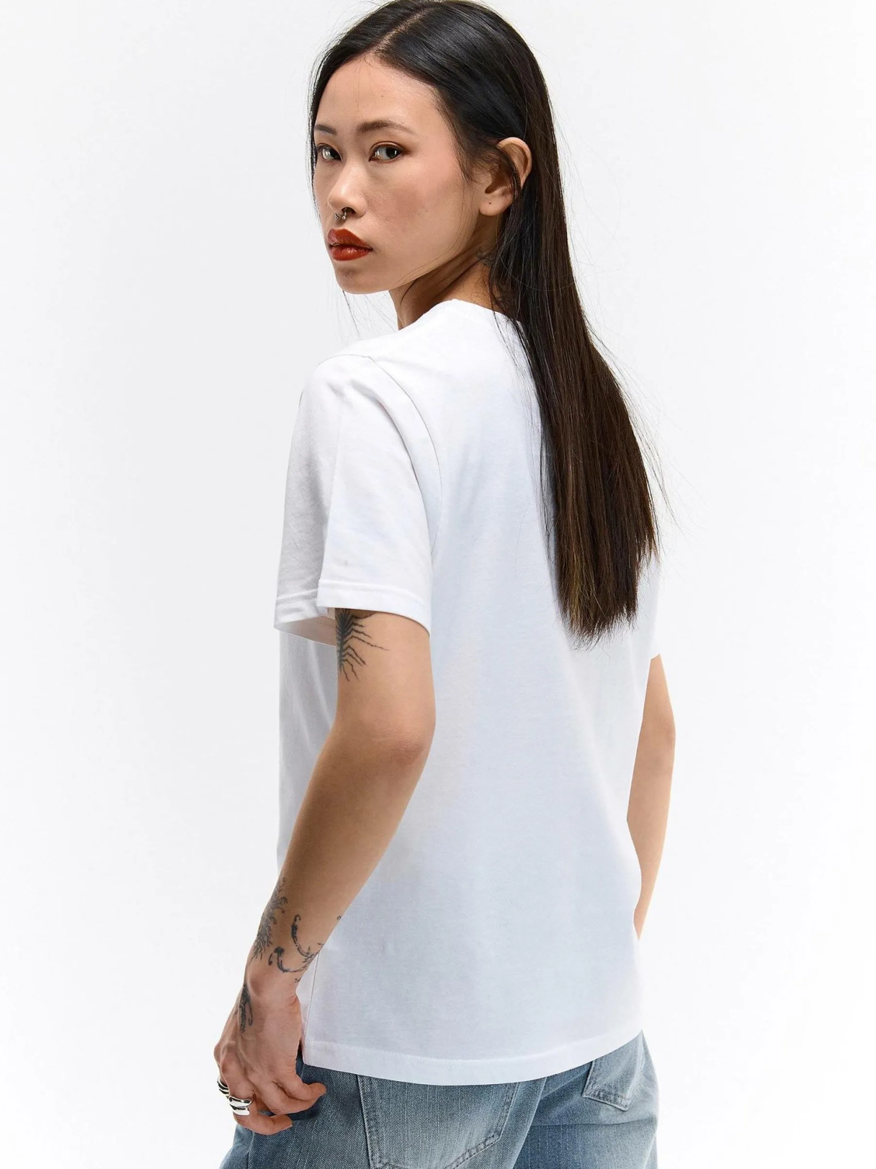 Kolor: białyKrój: regularTyp: koszulkaRekaw: krótki rękawDługość: krótkiPattern style: z nadrukiemDetal: nad gł…