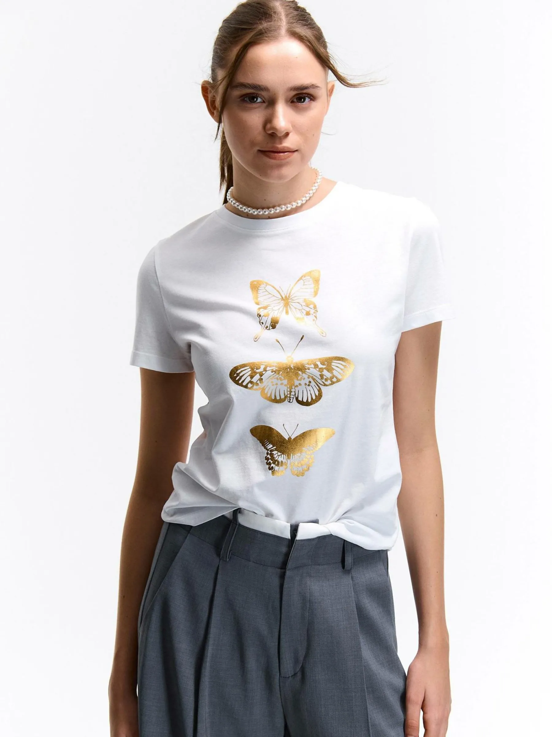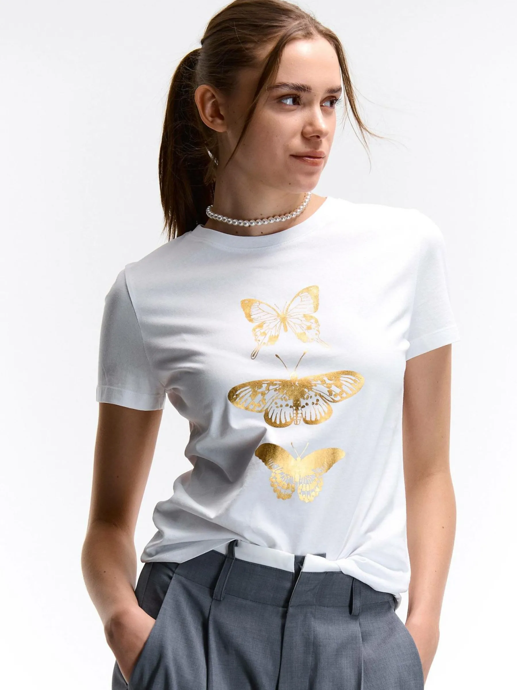Kolor: białyKrój: regularTyp: koszulkaRekaw: krótki rękawDługość: krótkiPattern style: z nadrukiemDetal: nad gł…