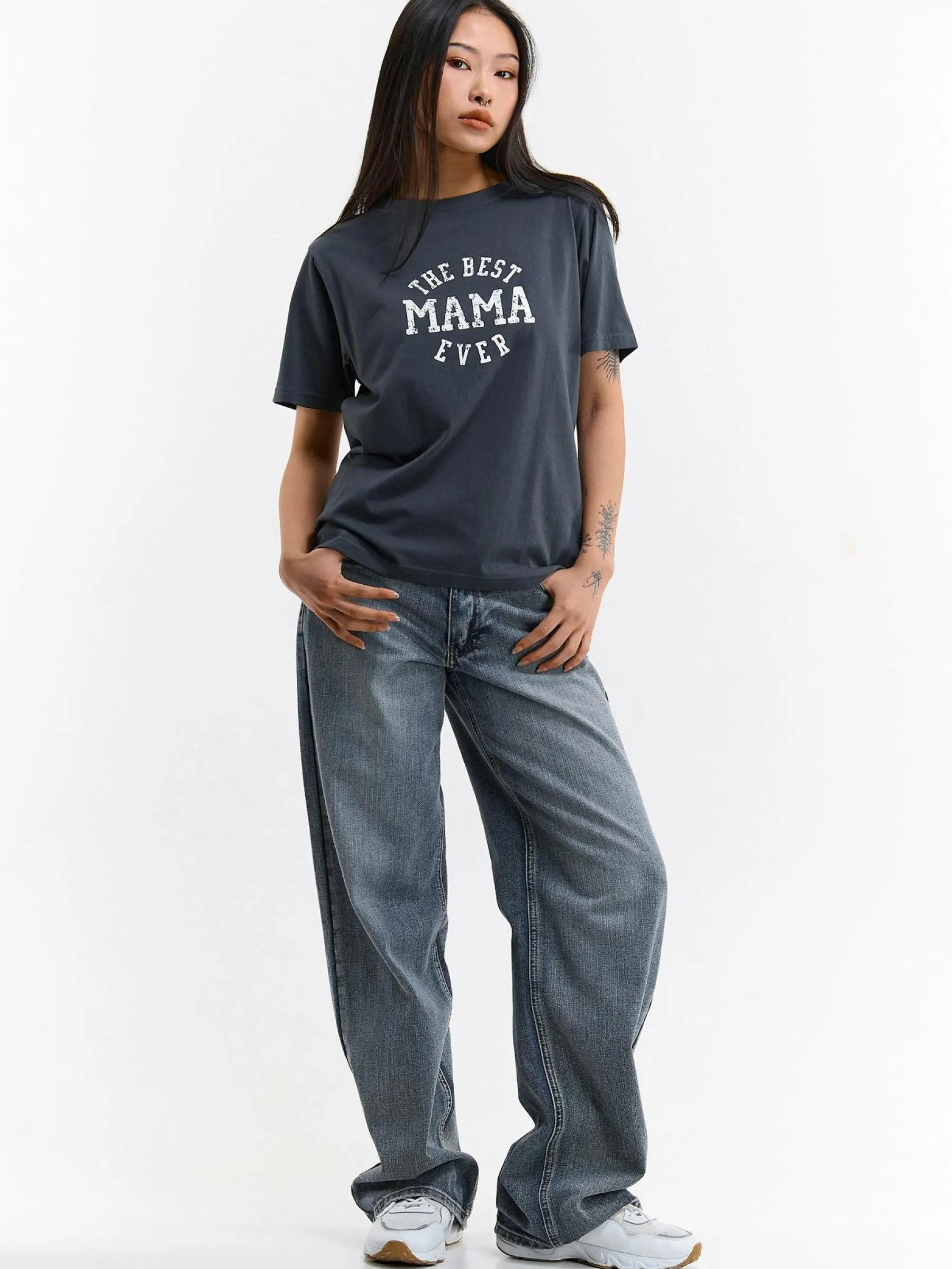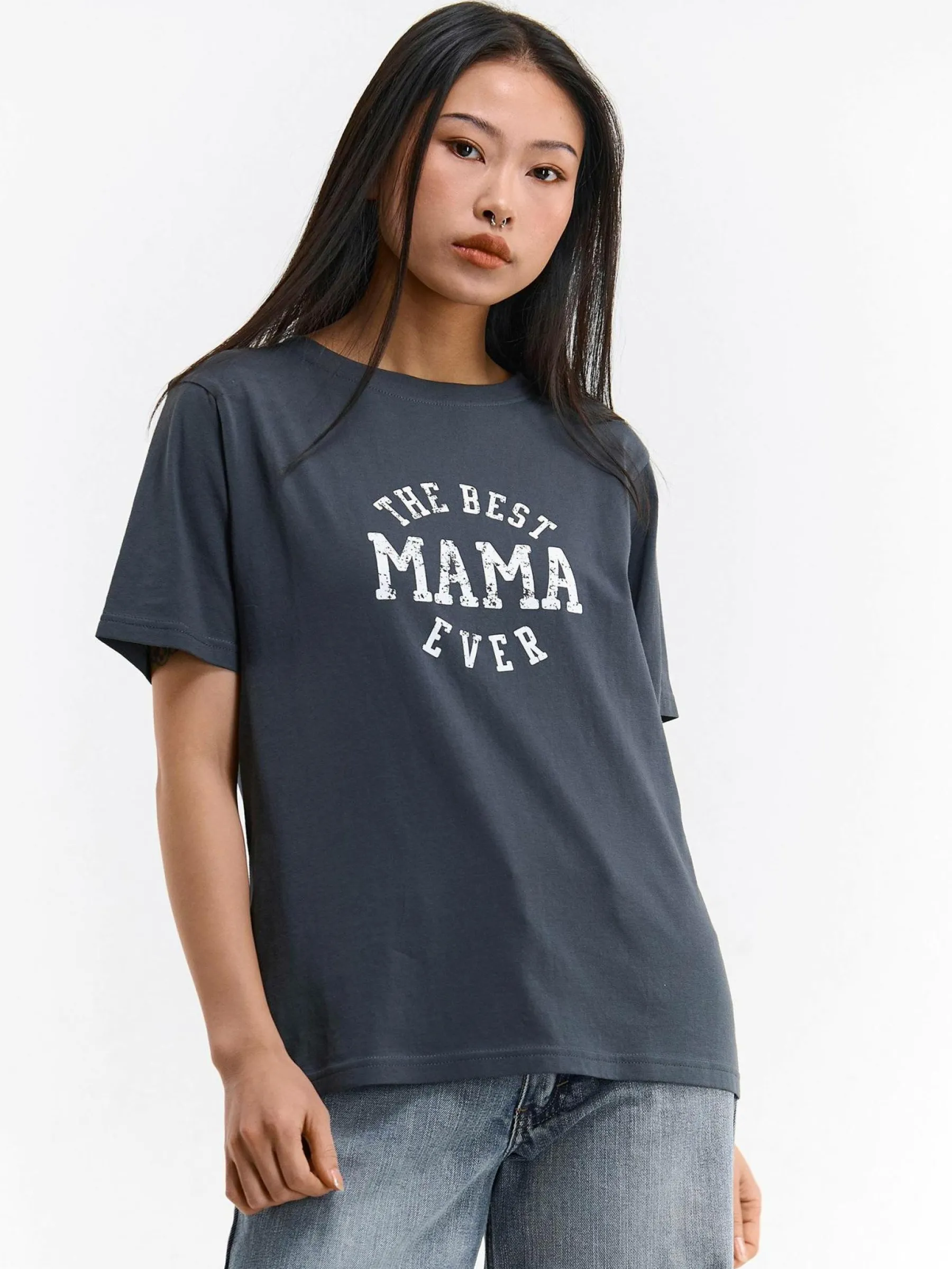 Kolor: szaryKrój: regularTyp: koszulkaRekaw: krótki rękawDługość: krótkiPattern style: z nadrukiemDetal: nad gło…