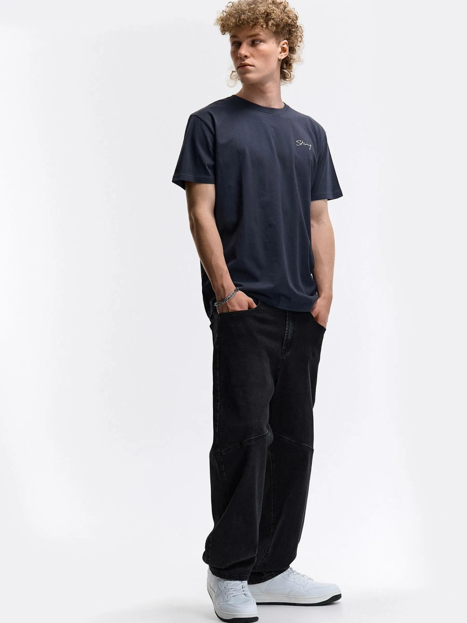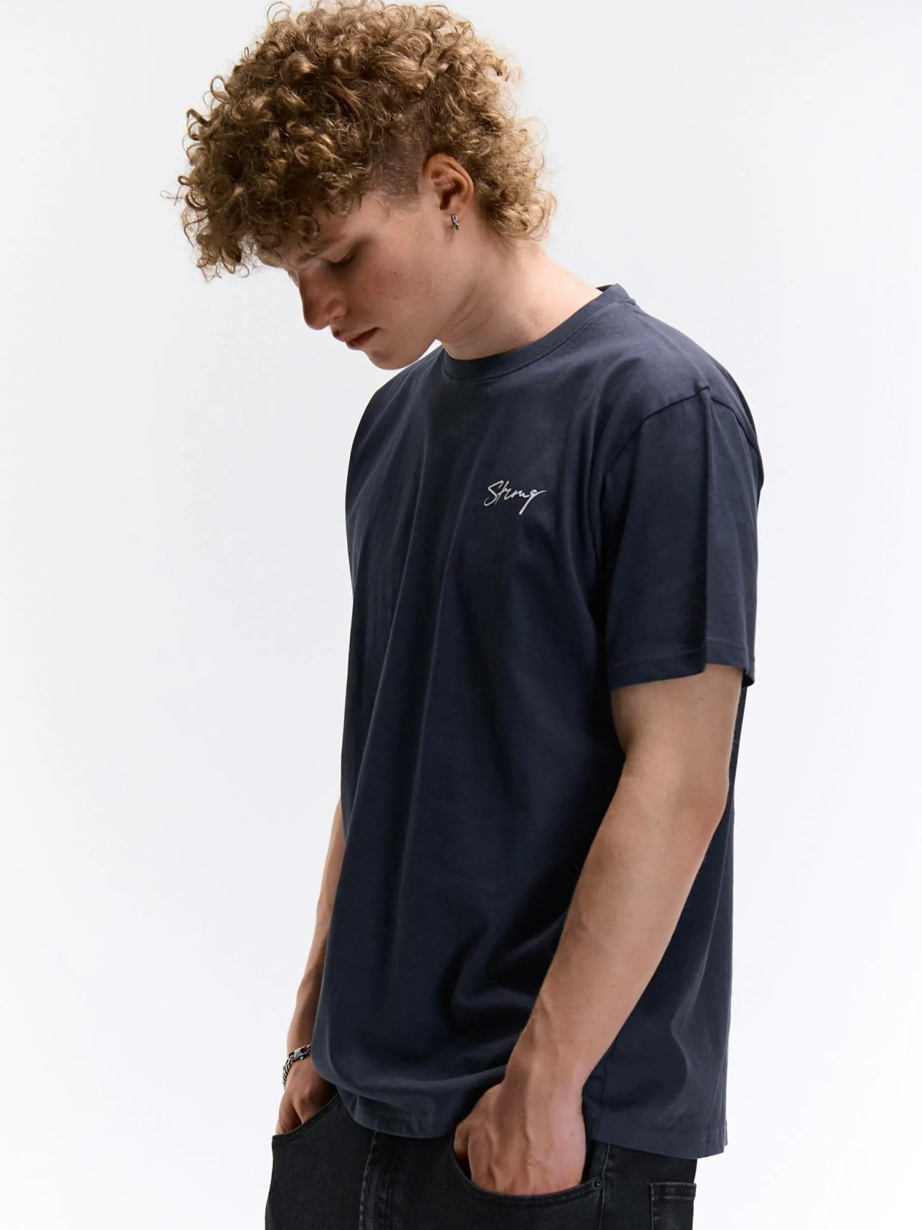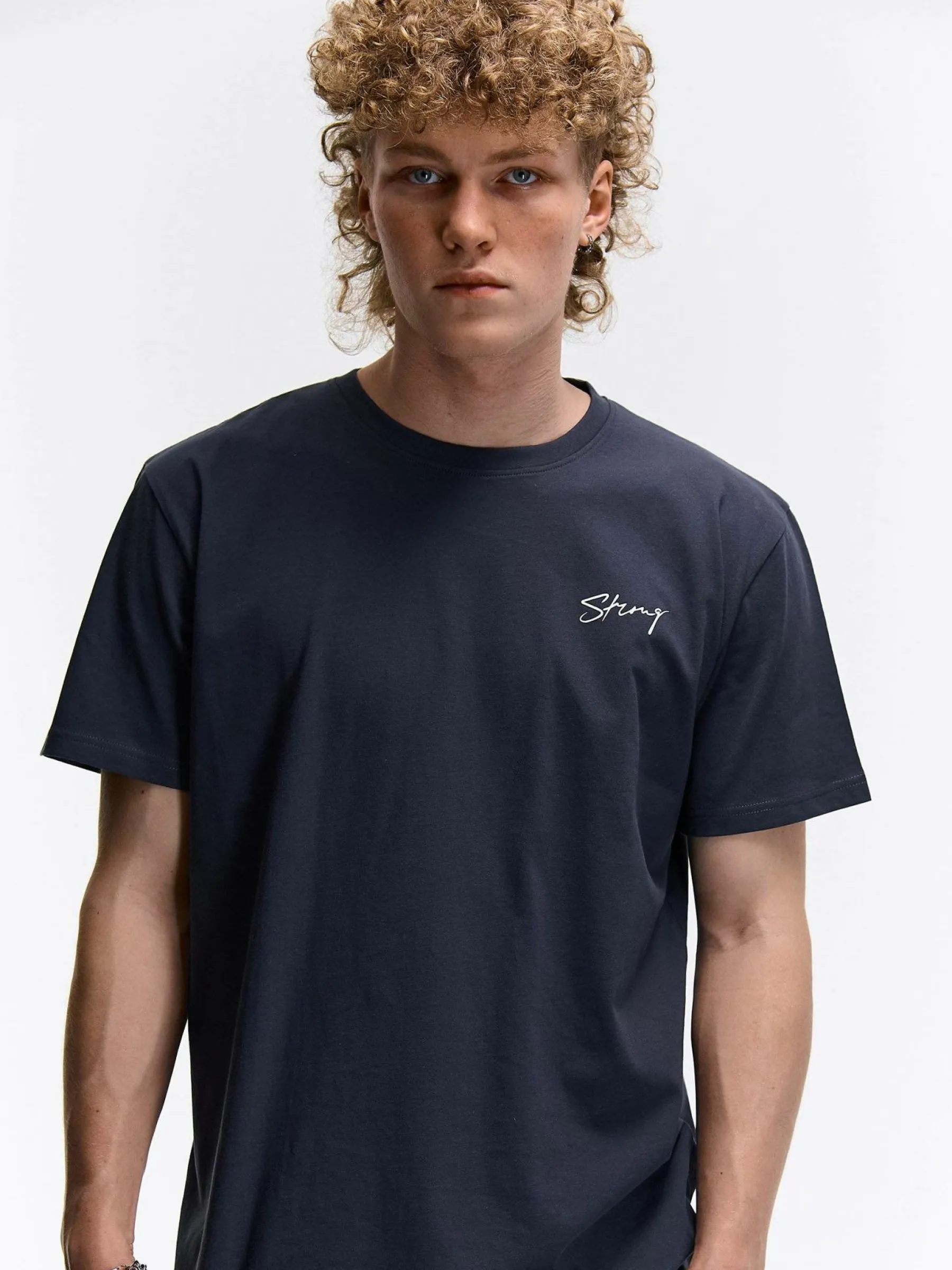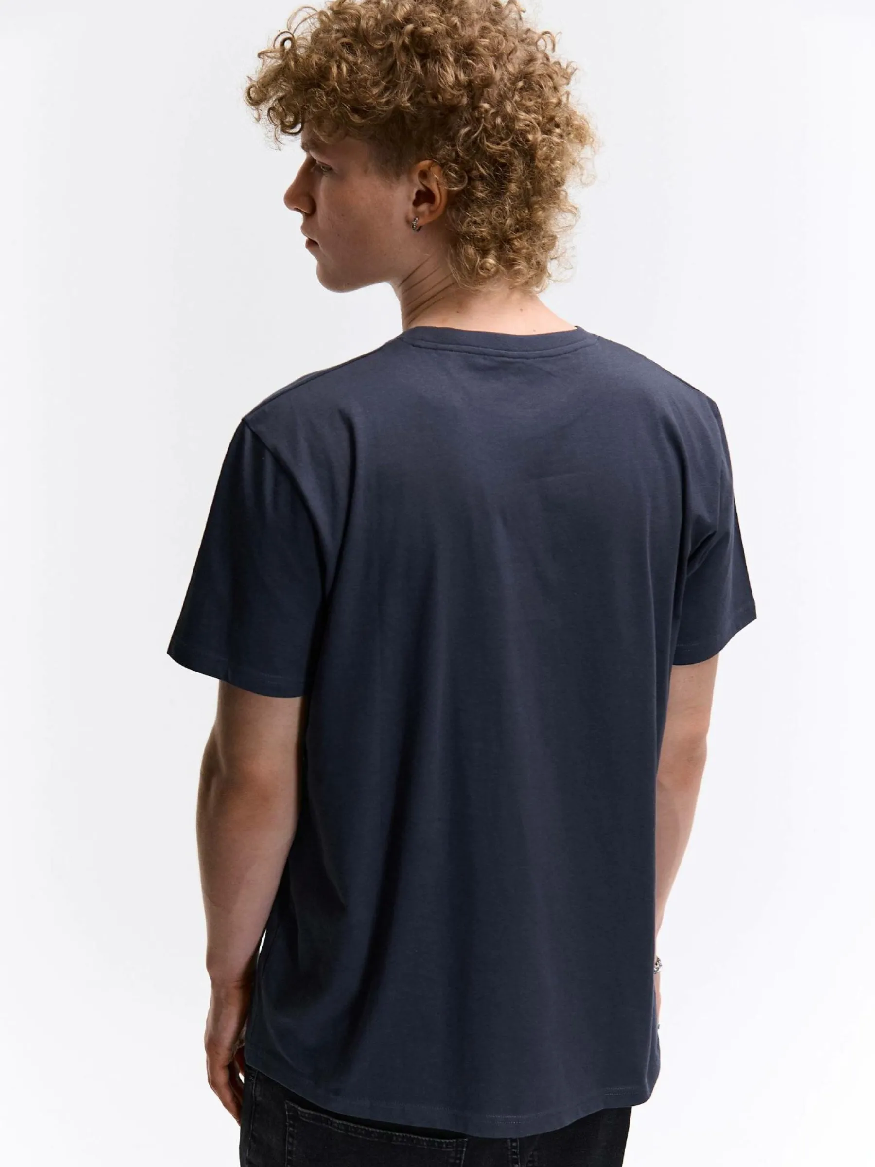 Kolor: granatowy, niebieskiKrój: regularTyp: koszulkaRekaw: krótki rękawPattern style: pojedynczy kolorDetal: nad gł…