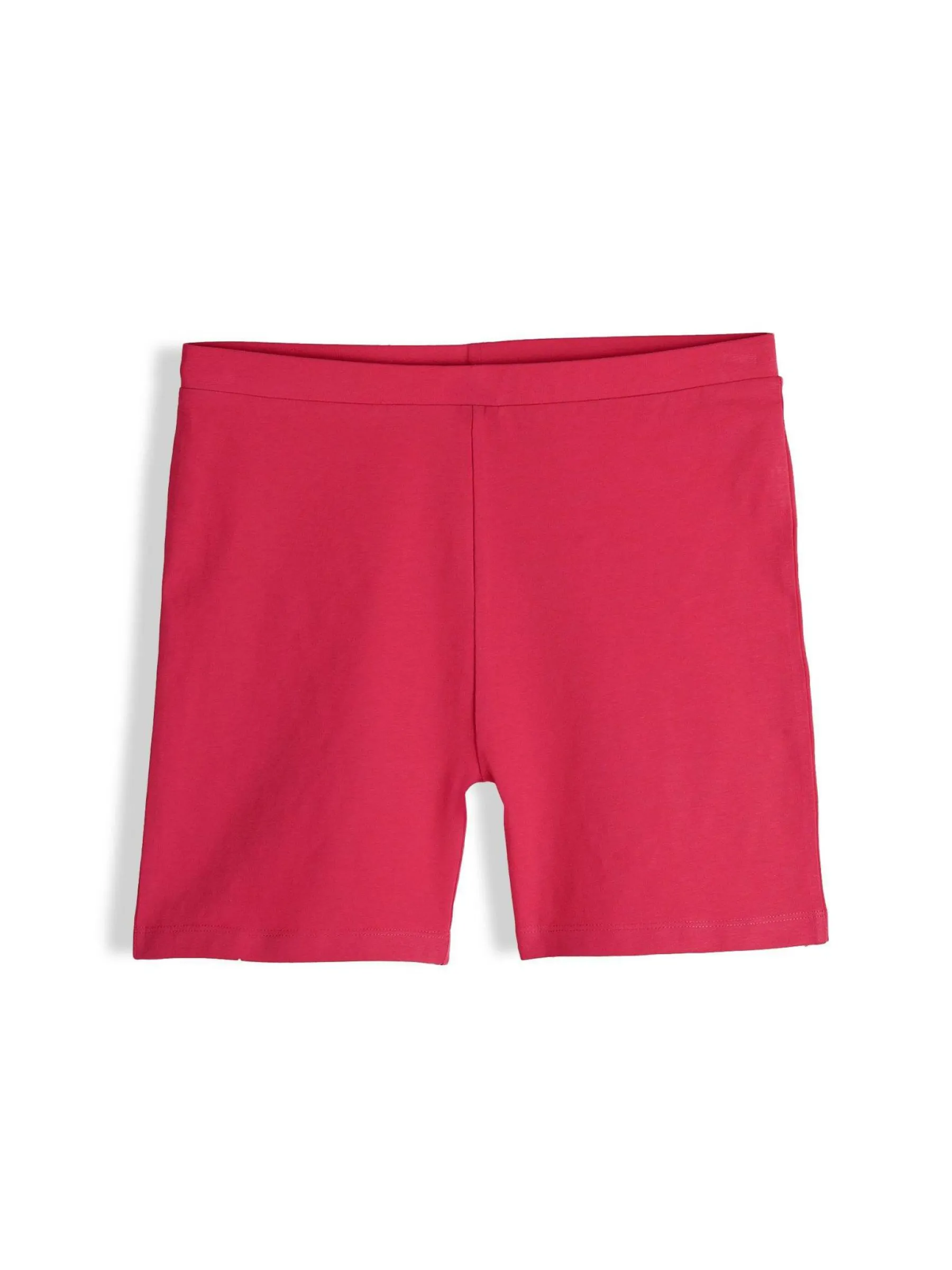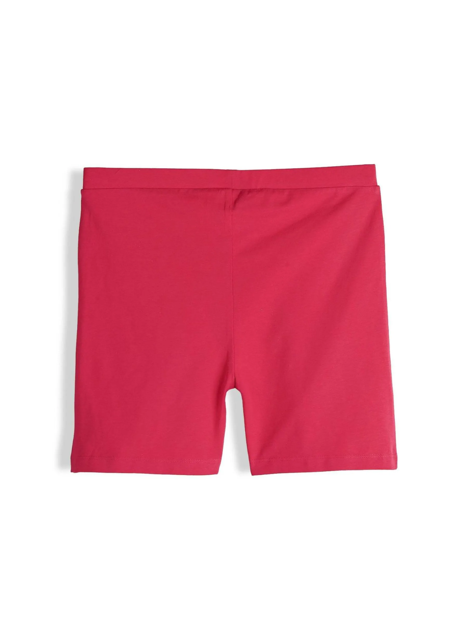 Kolor: różowyKrój: bikerTyp: spodenkiDługość: krótkiPattern style: pojedynczy kolorDetal: z elastyczną opaskąMa…