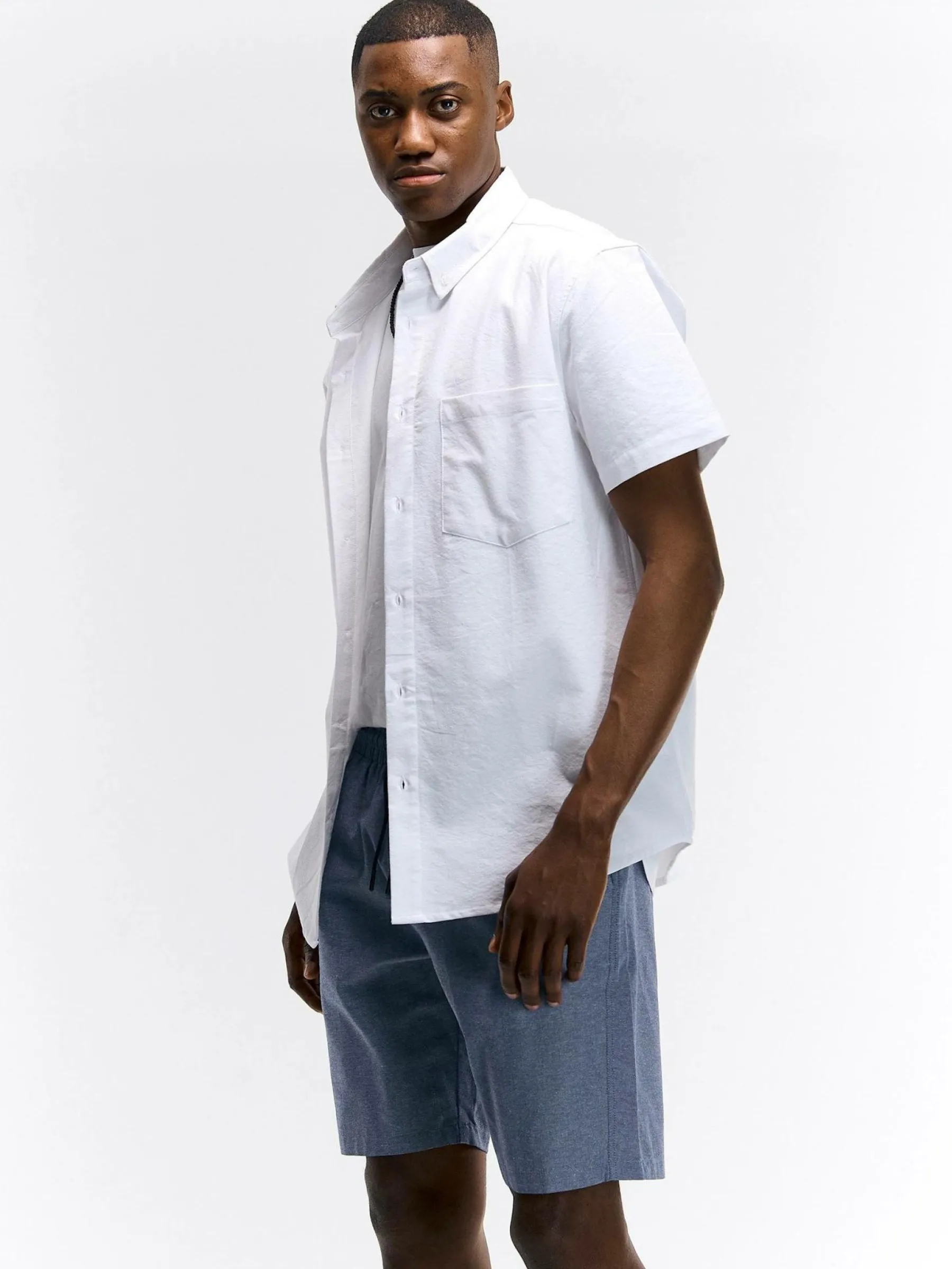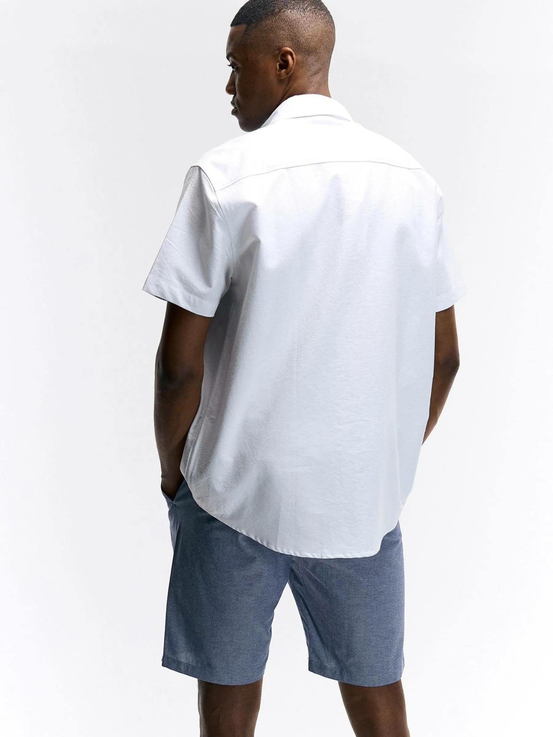 Kolor: granatowyKrój: regularTyp: spodenkiDługość: krótkiPattern style: pojedynczy kolorDetal: ze sznurowaniem, z k…