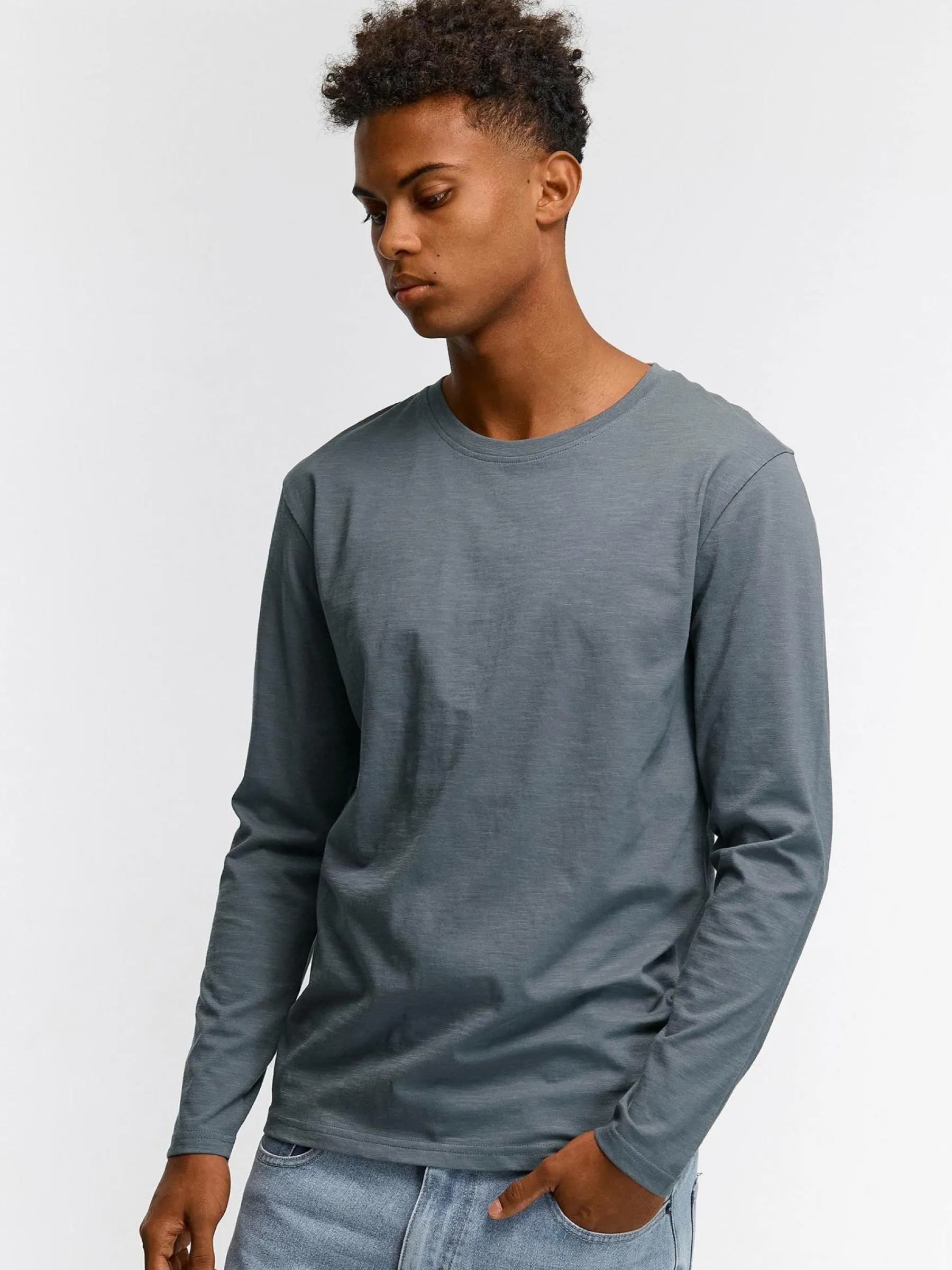Kolor: szaryKrój: regularTyp: koszulkaRekaw: długi rękawPattern style: pojedynczy kolorDetal: nad głowąMateriał: b…