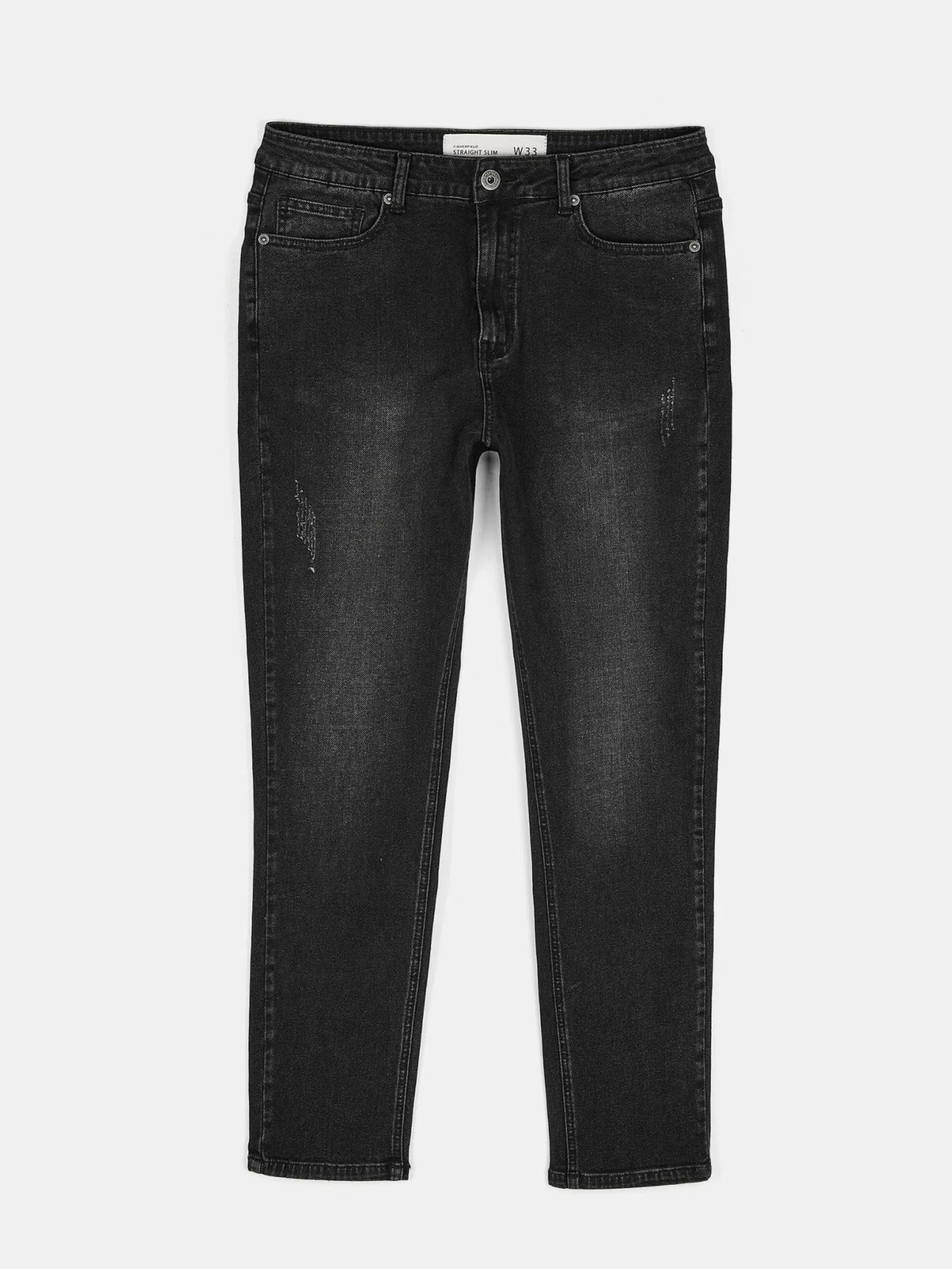 Kolor: czarnyKrój: prosty slimTyp: jeansDługość: dlugiePattern style: pojedynczy kolorDetal: na zamek, z kieszeniami…