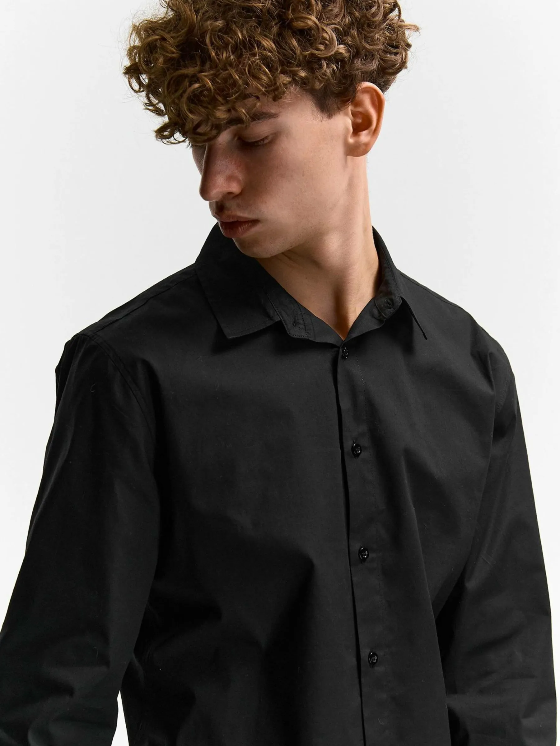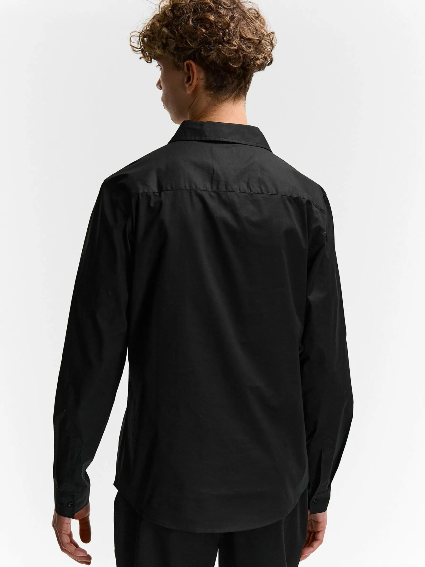 Kolor: czarnyKrój: podstawowyTyp: koszulaRekaw: długi rękawPattern style: pojedynczy kolorDetal: na guzikiMateriał: …