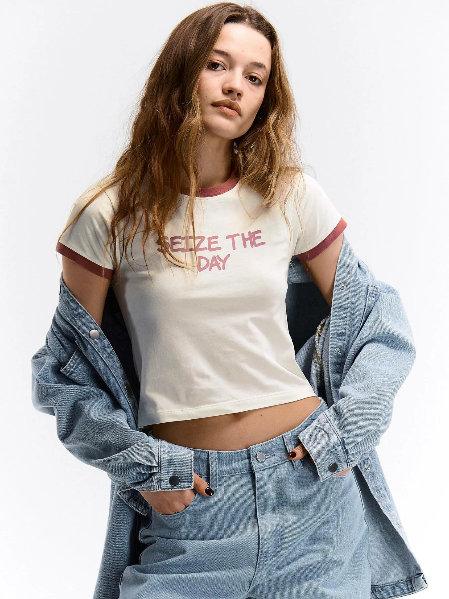Kolor: beżowyKrój: regularTyp: koszulkaRekaw: krótki rękawDługość: krótki topPattern style: z napisemDetal: nad …