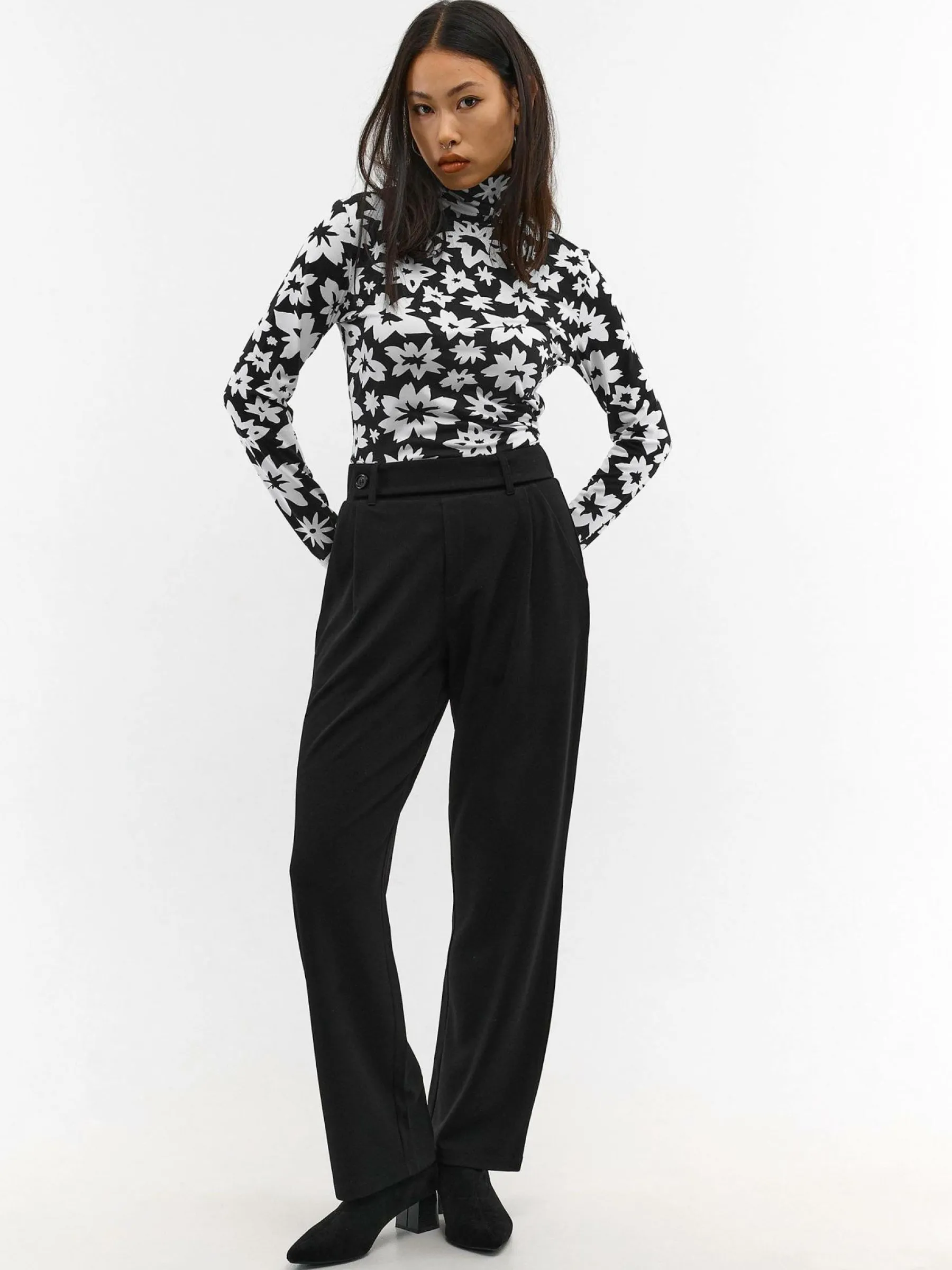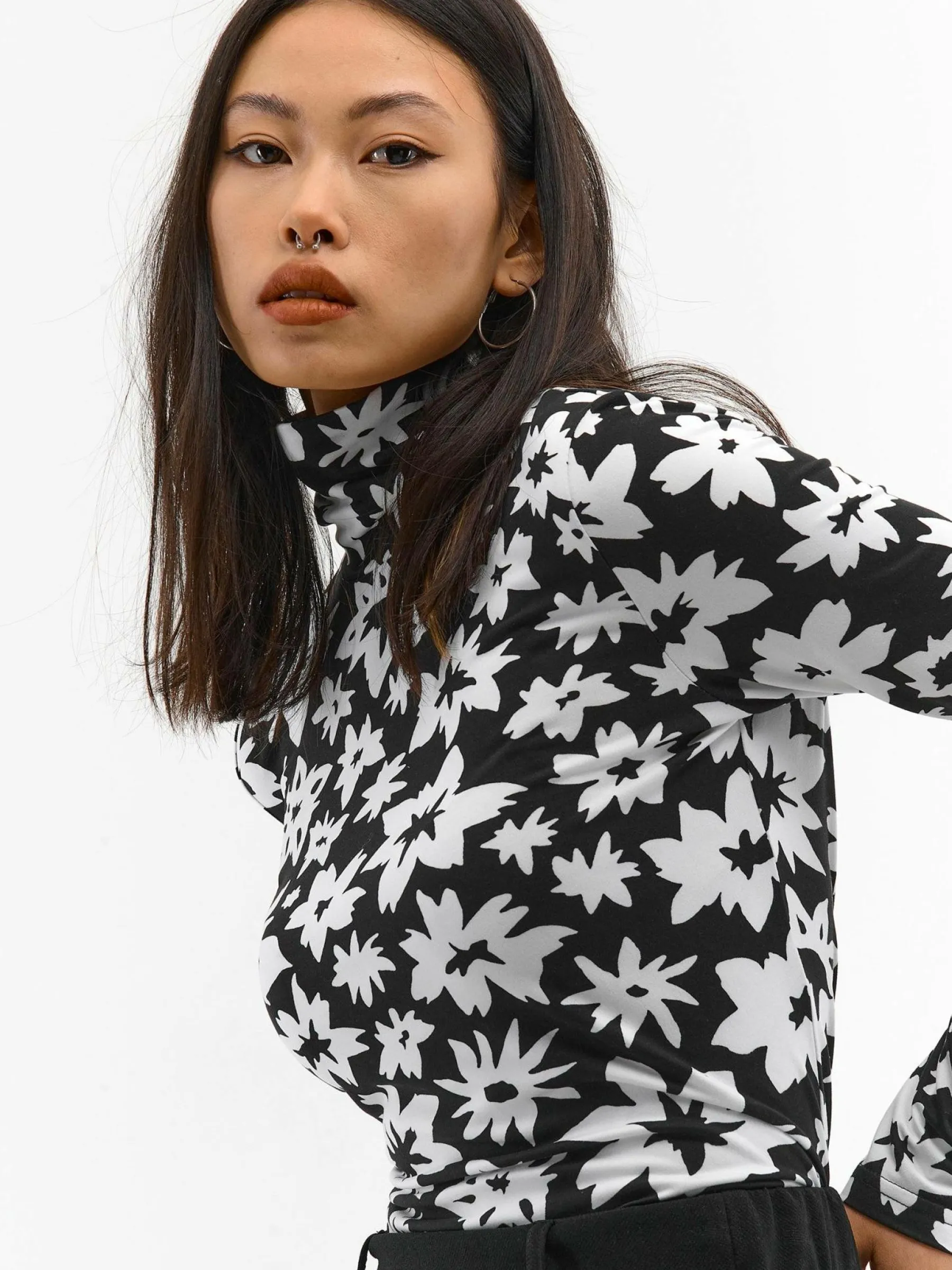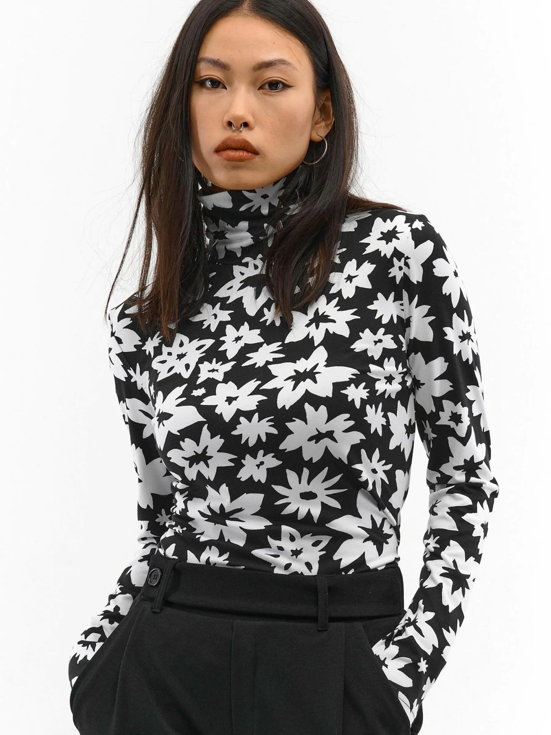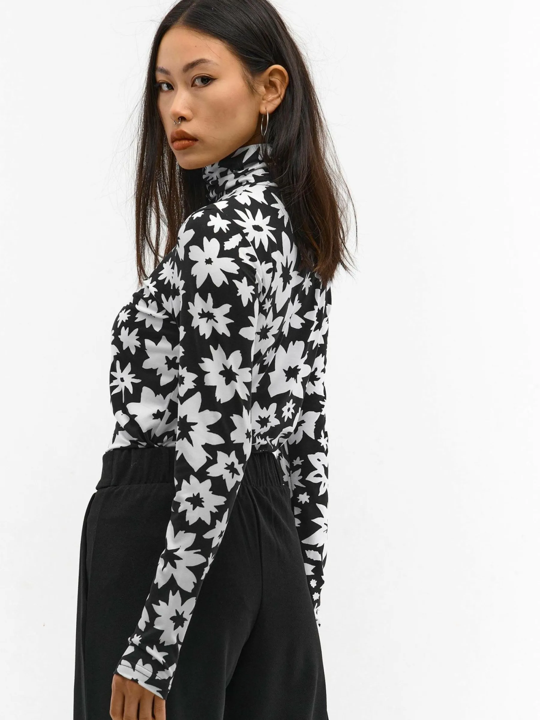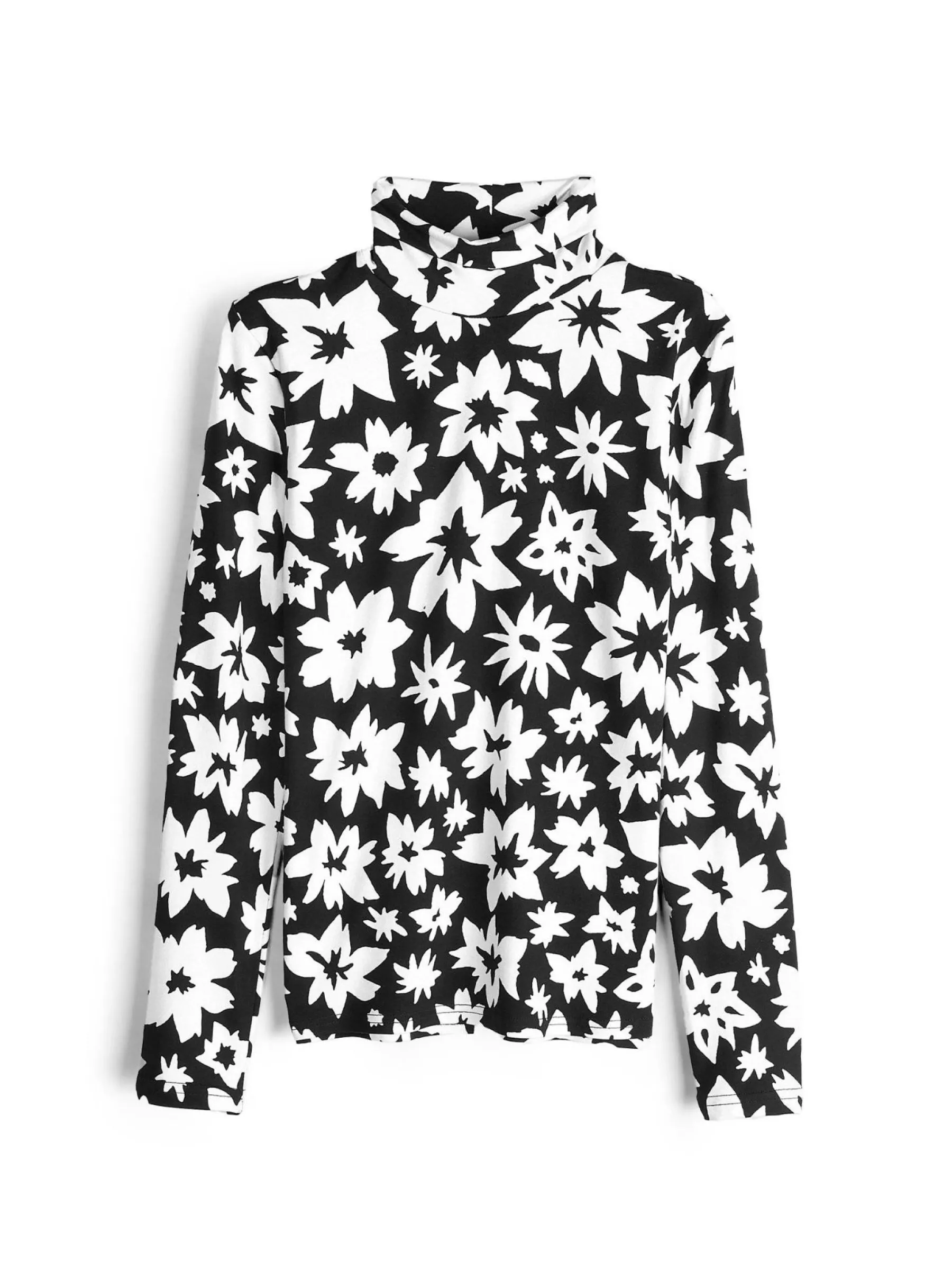 Kolor: czarnyKrój: regularTyp: golfRekaw: długi rękawDługość: krótkiPattern style: z nadrukiem, kwiatoweDetal: na…