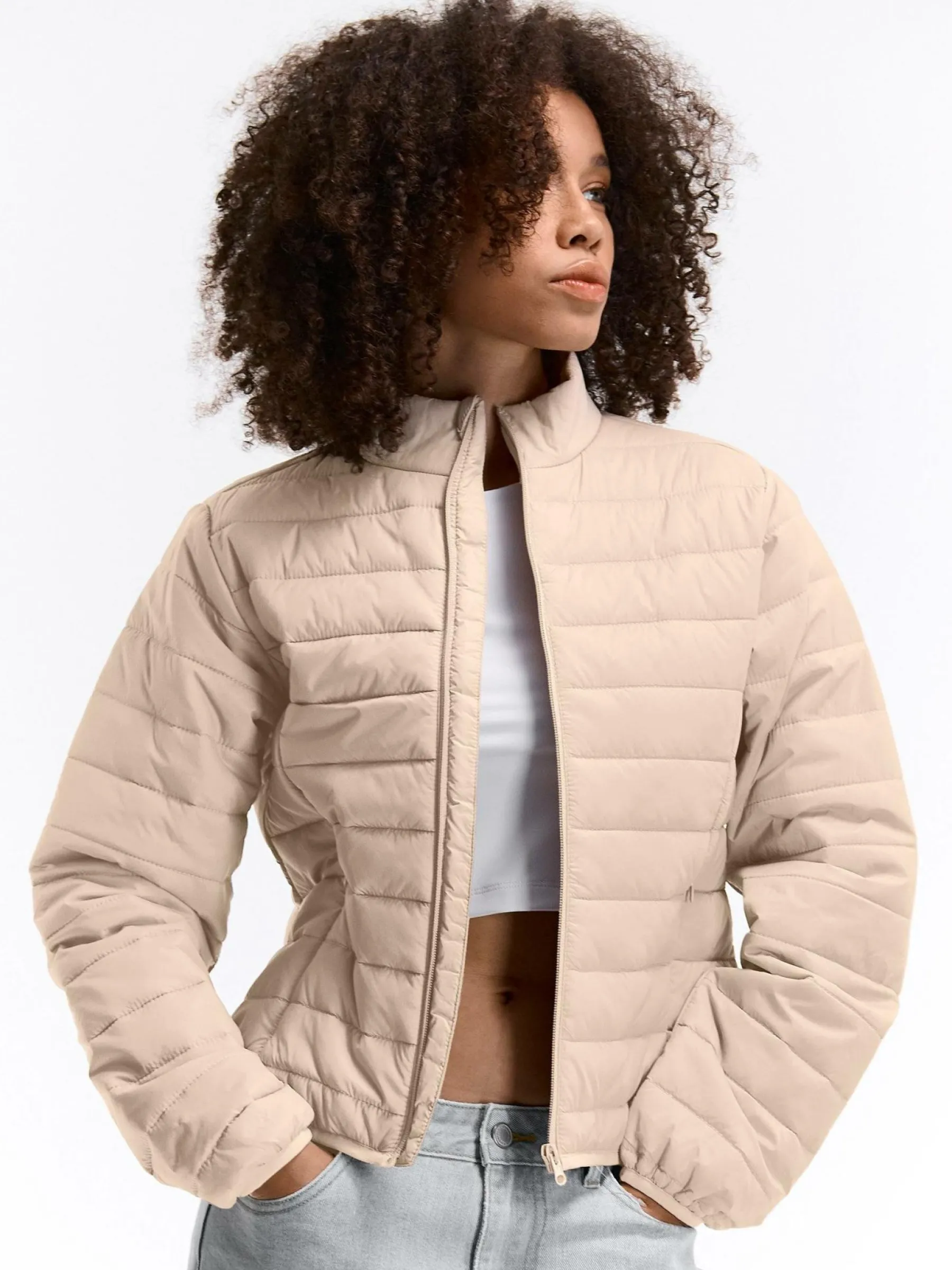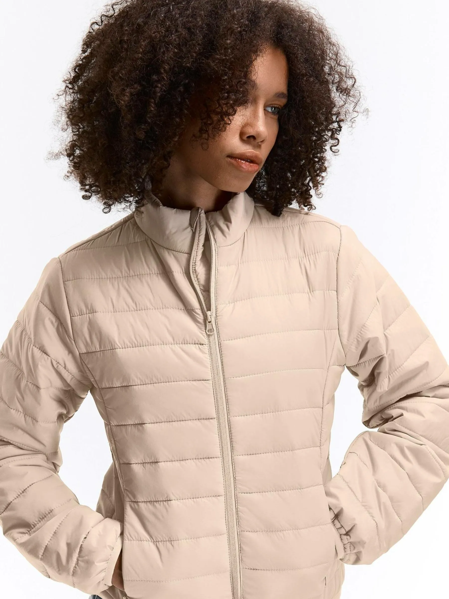 Zdjęcia z modelką mogą nie odpowiadać rzeczywistemu kolorowi produktu.Kolor: beżowyKrój: pikowaneTyp: kurtka przej…