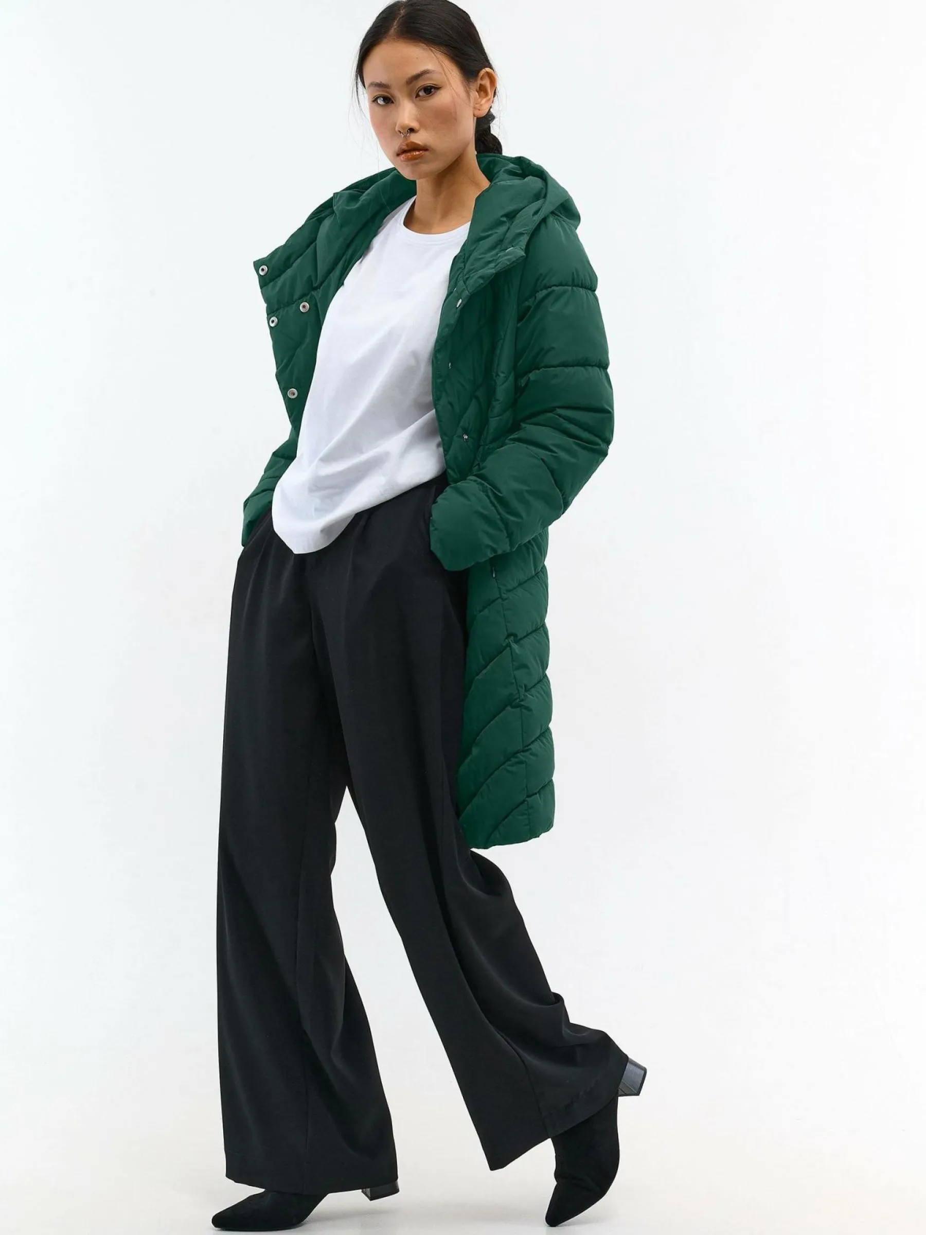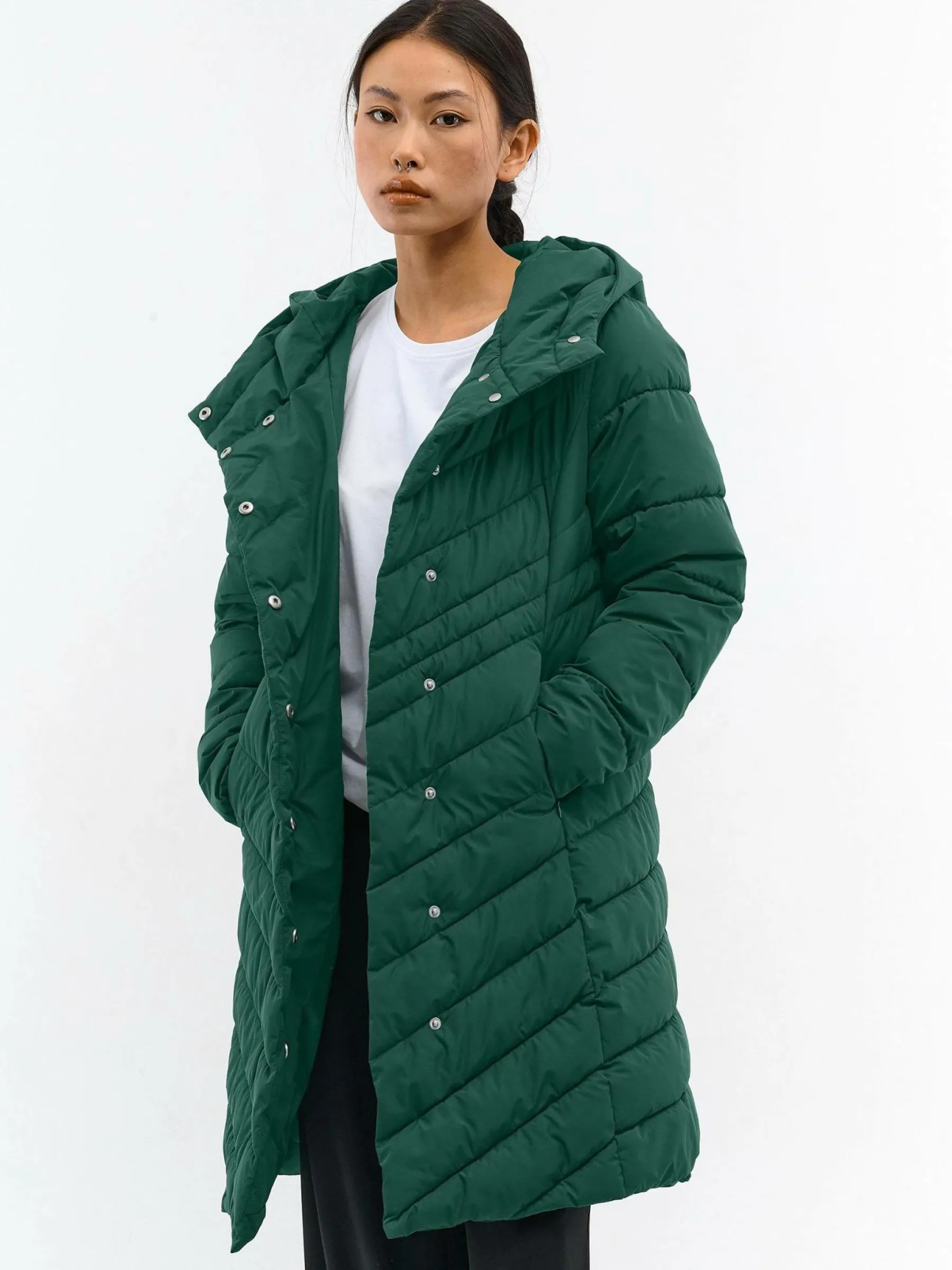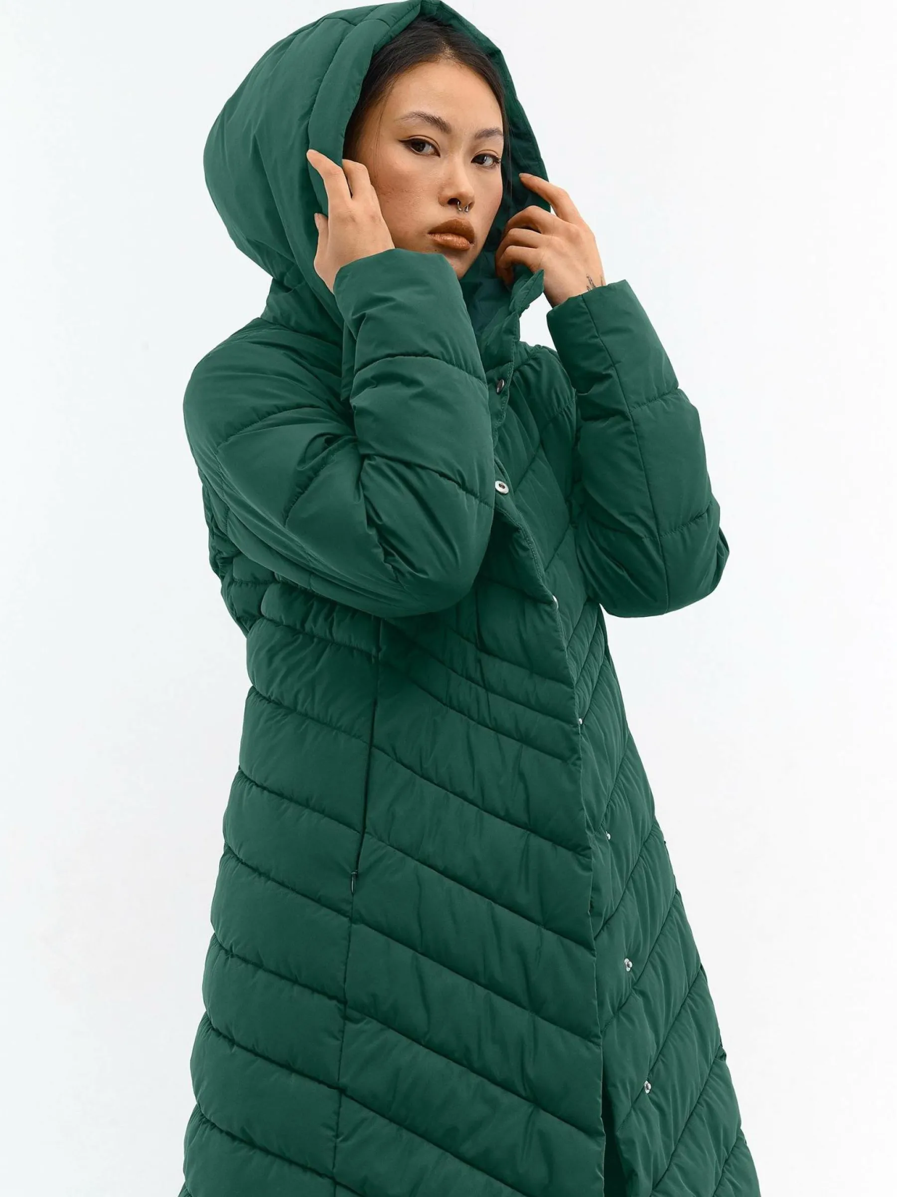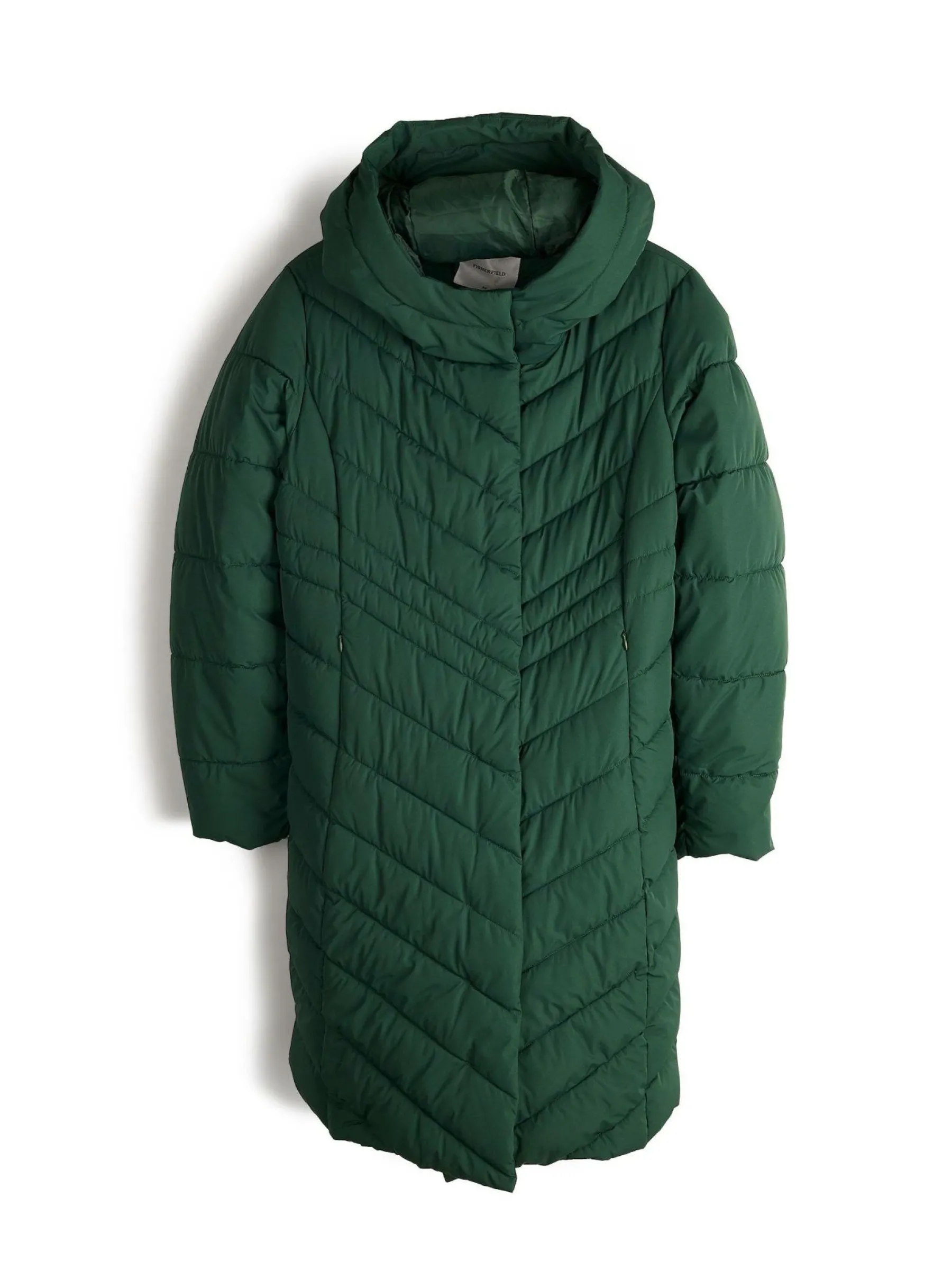 Kolor: zielonyKrój: pikowaneTyp: kurtka zimowaRekaw: długi rękawDługość: dlugiePattern style: pojedynczy kolorDeta…
