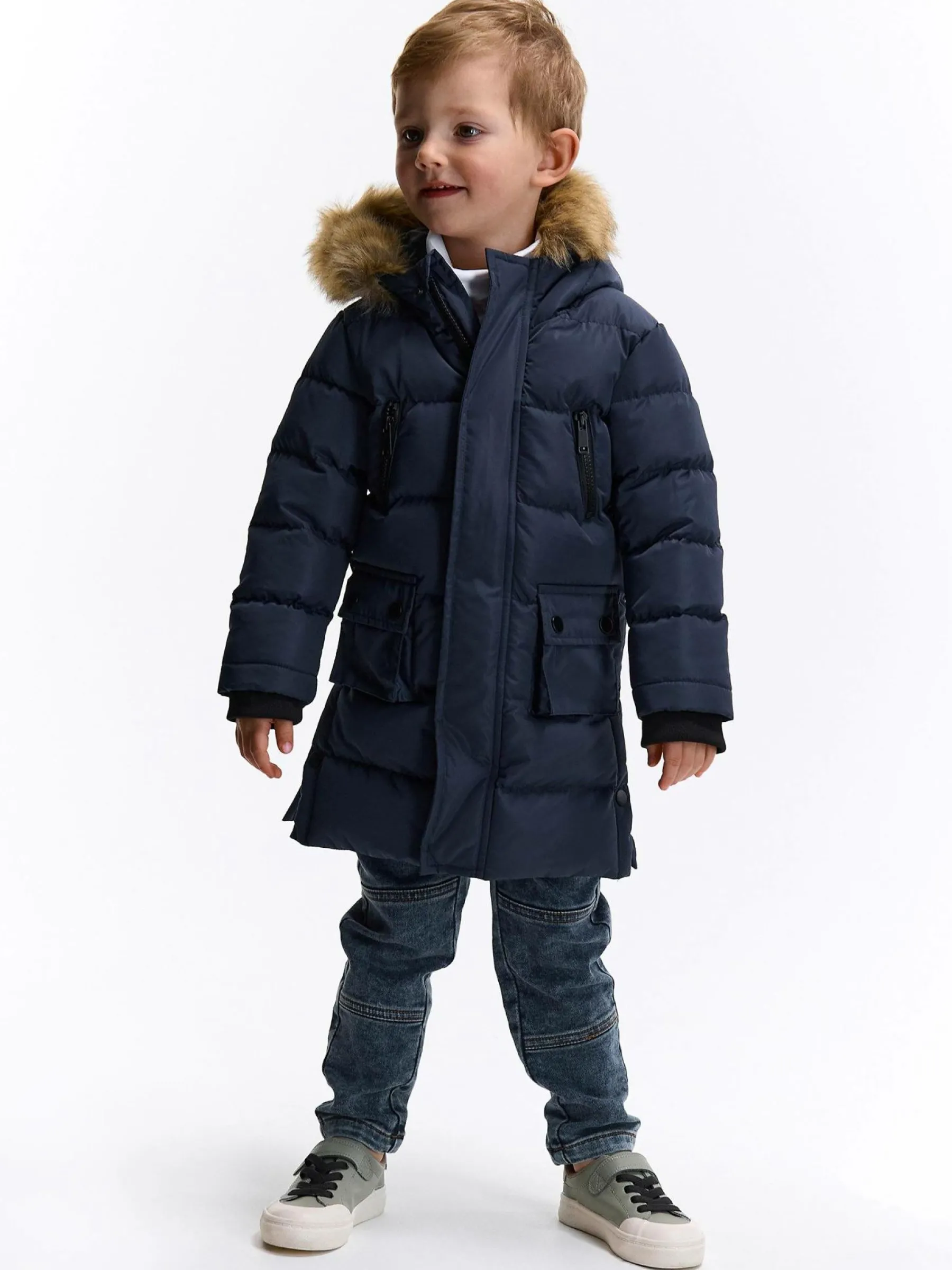 Zdjęcia z modelem mogą nie odpowiadać rzeczywistemu kolorowi produktu.Kolor: granatowyKrój: pikowaneTyp: kurtka zimo…
