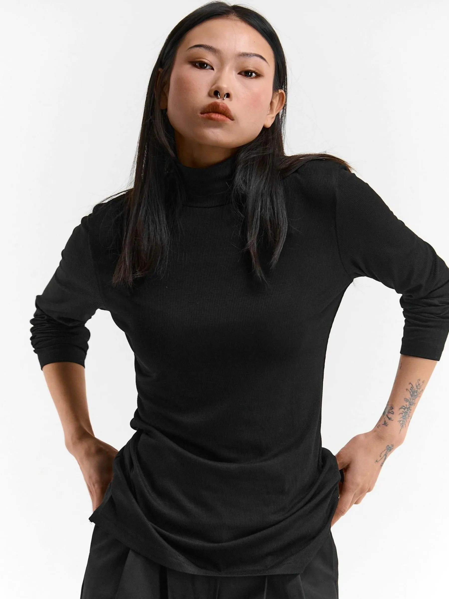 Kolor: czarnyKrój: regularTyp: golfRekaw: długi rękawDługość: dlugiePattern style: pojedynczy kolor, żebrowanyDet…