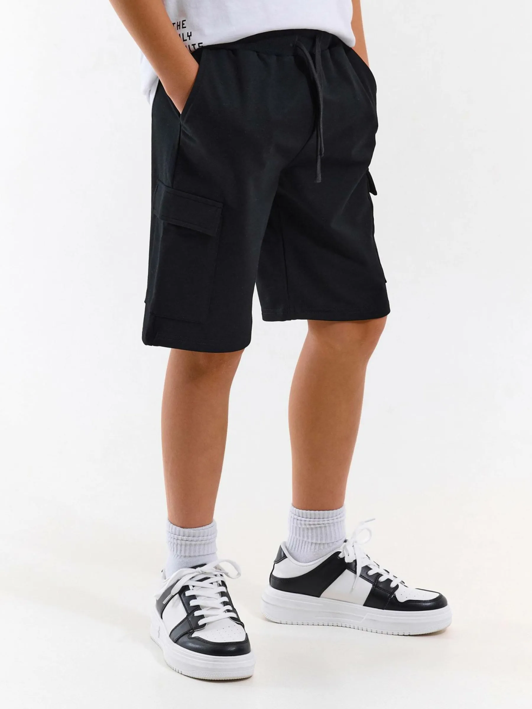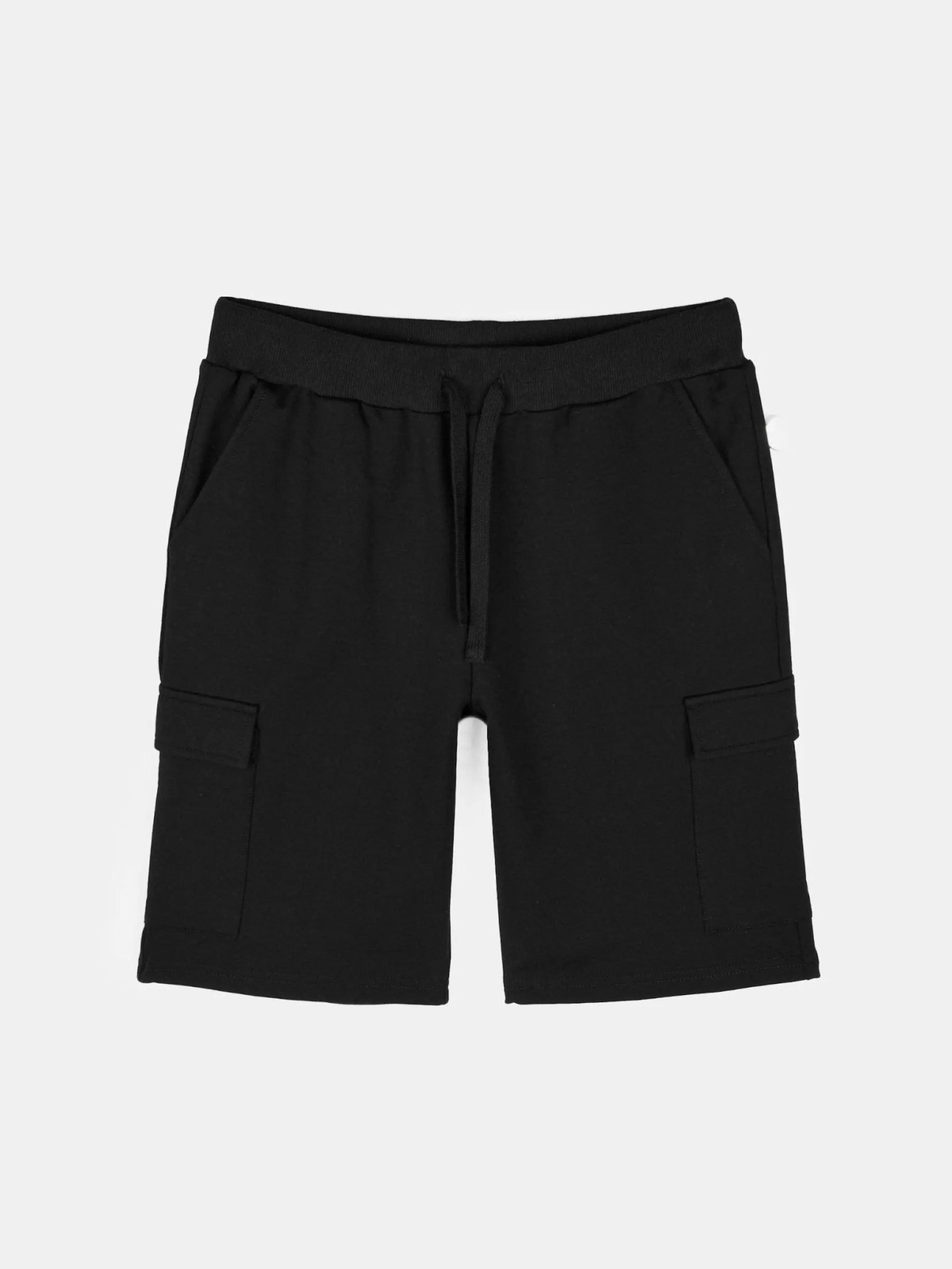 Kolor: czarnyKrój: cargoTyp: spodenkiDługość: krótkiPattern style: pojedynczy kolorDetal: ze sznurowaniemMateriał:…