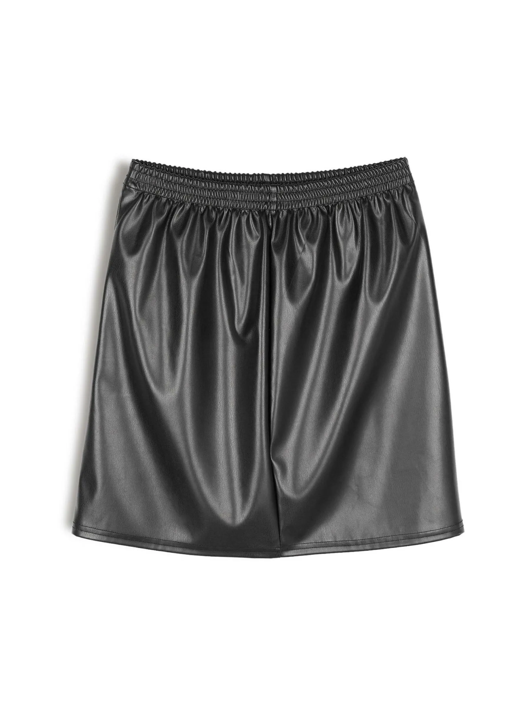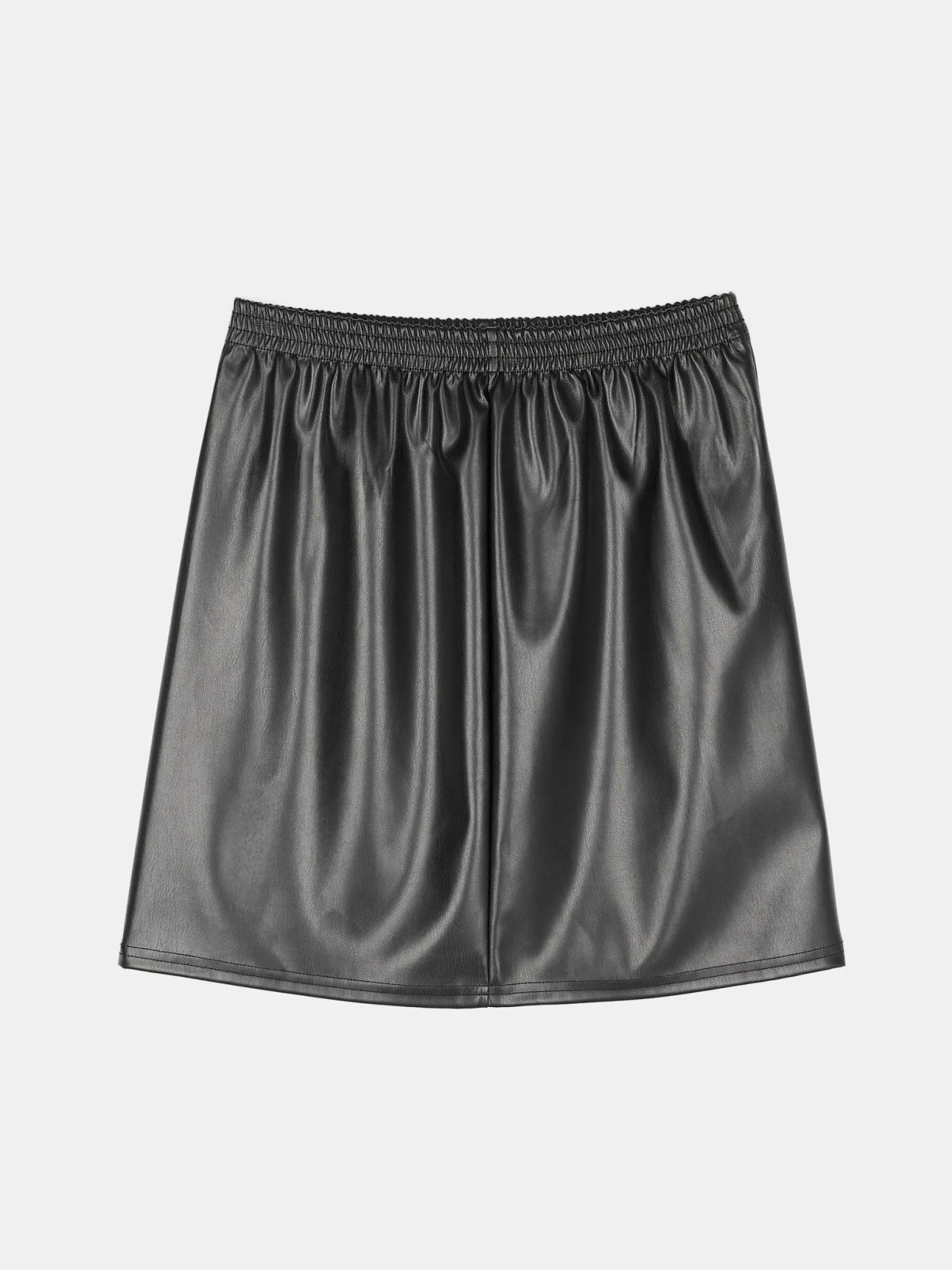 Kolor: czarnyKrój: z marszczeniemTyp: spódnicaDługość: miniPattern style: pojedynczy kolorDetal: z elastyczną opas…