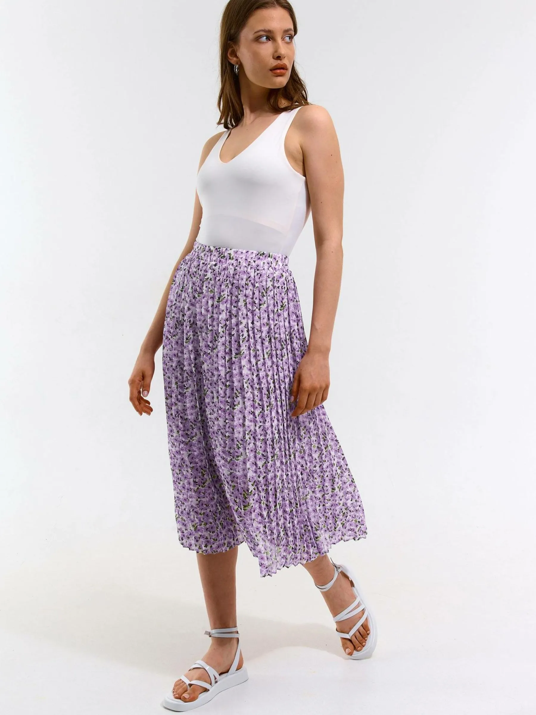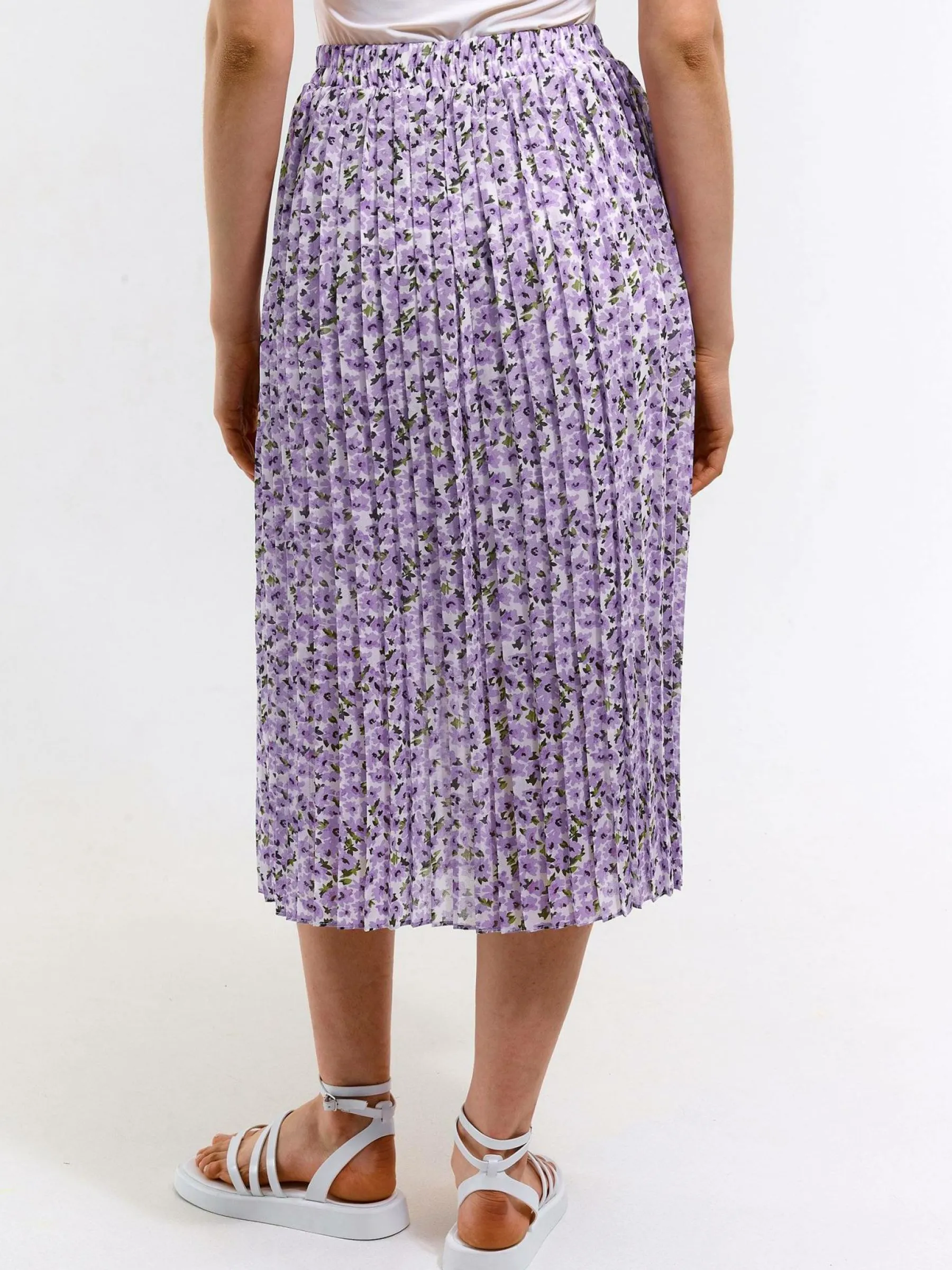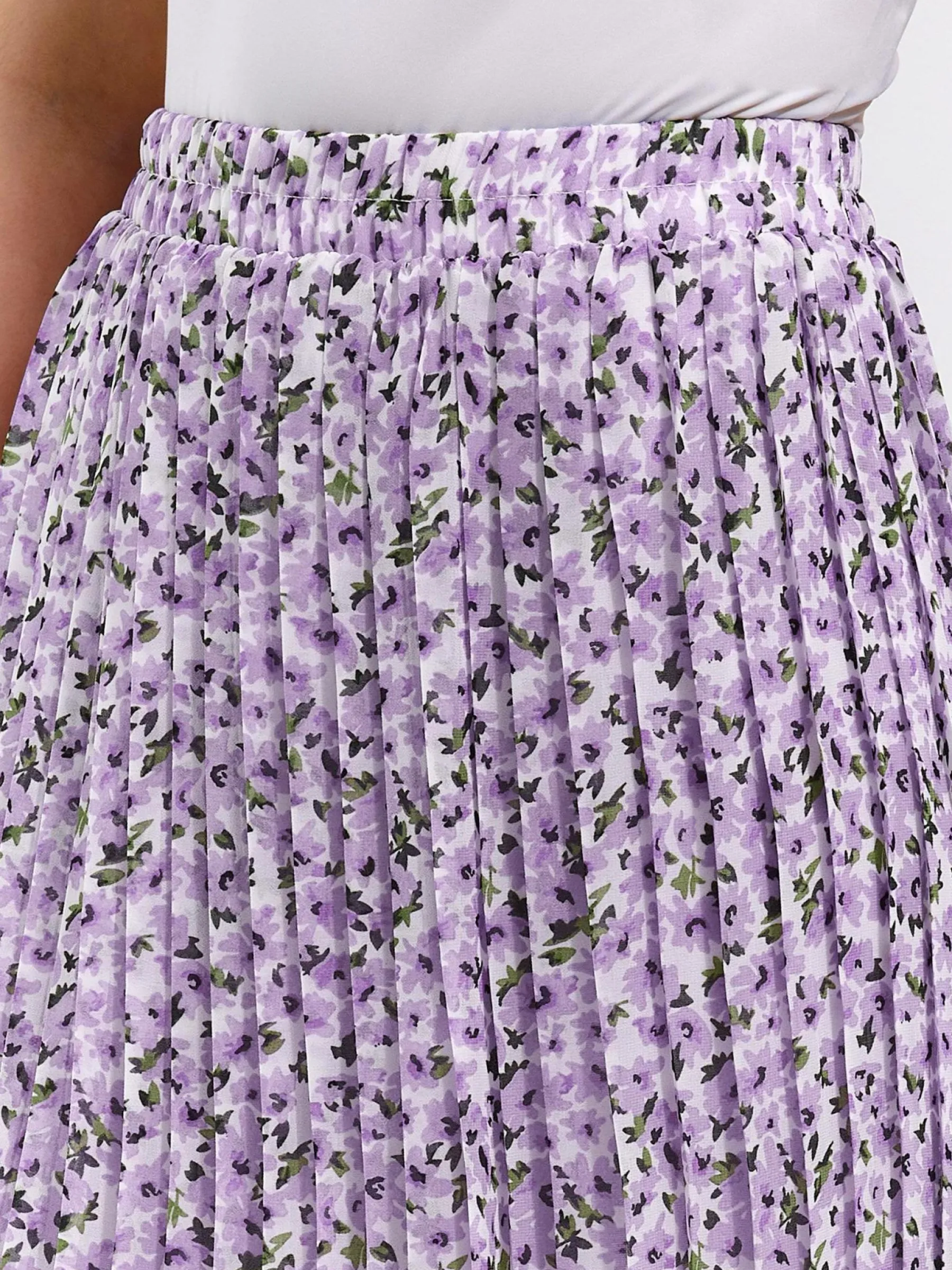 Kolor: purpurowyKrój: plisowaneTyp: spódnicaDługość: midiPattern style: kwiatoweDetal: z elastyczną opaskąMateria…