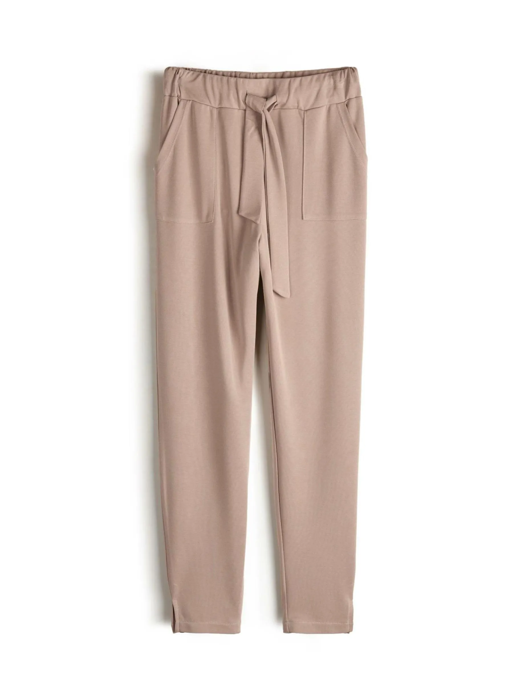 Kolor: beżowyKrój: straightTyp: spodnieDługość: dlugiePattern style: pojedynczy kolorDetal: z paskiem, z kieszeniam…