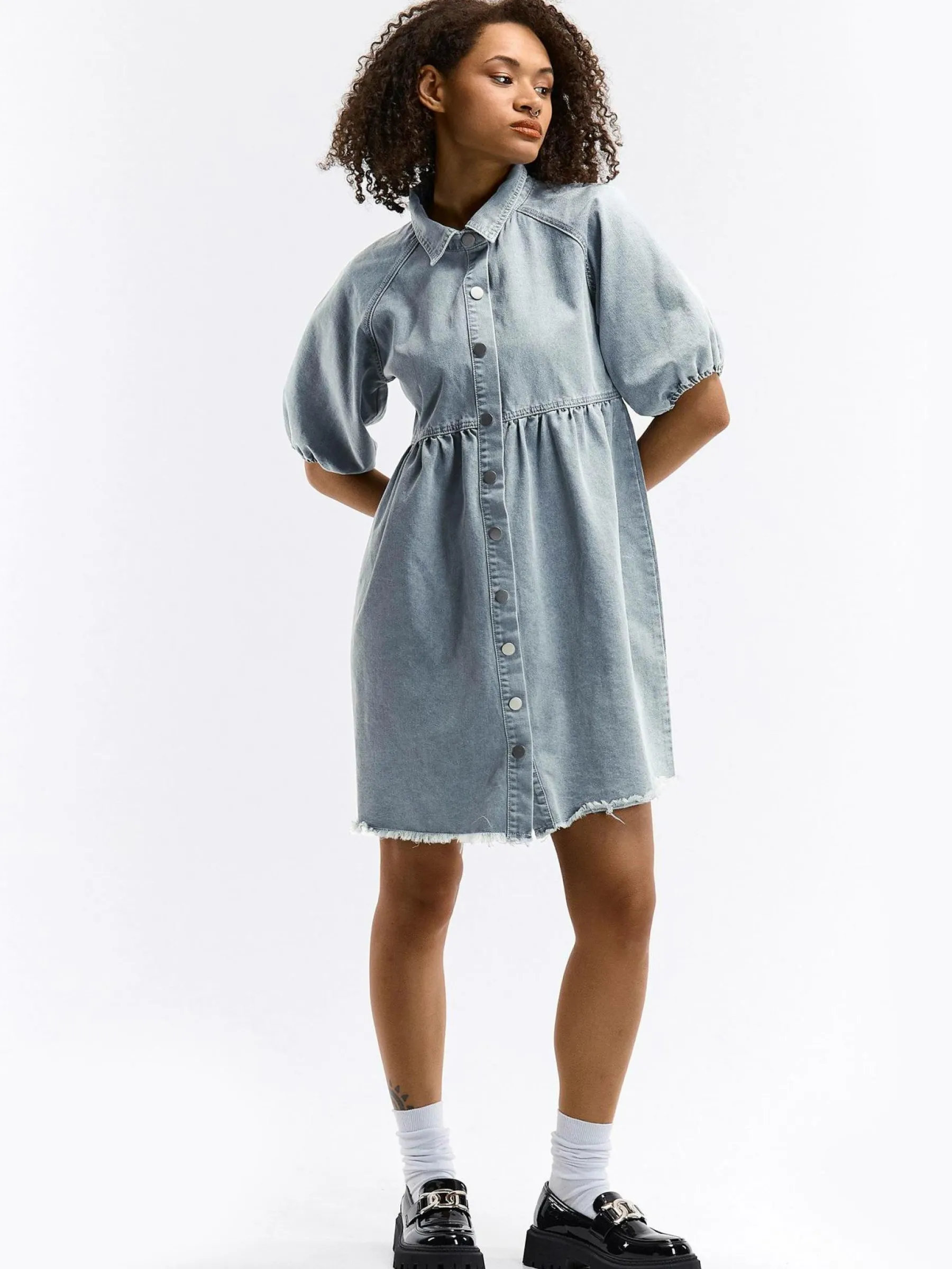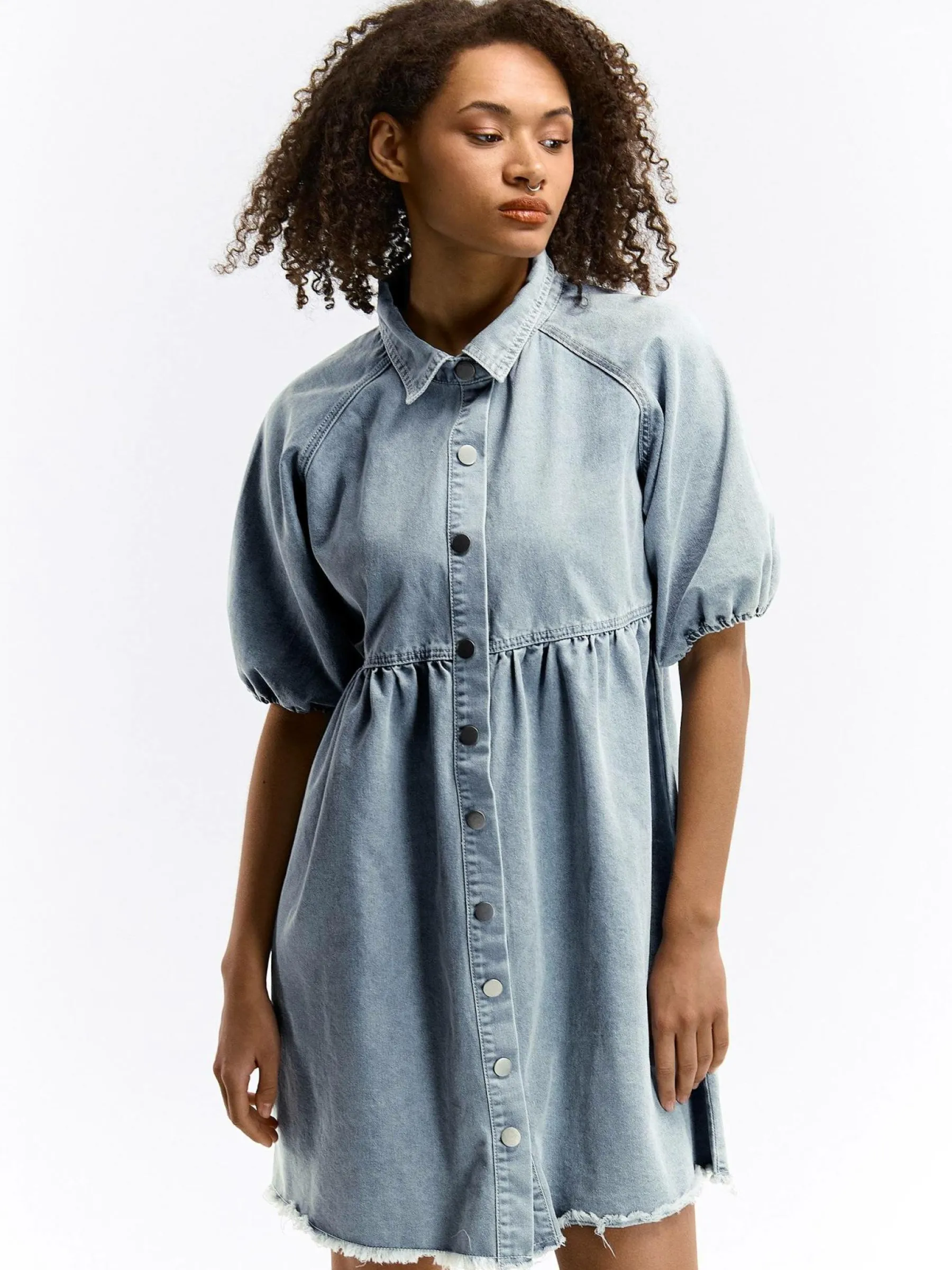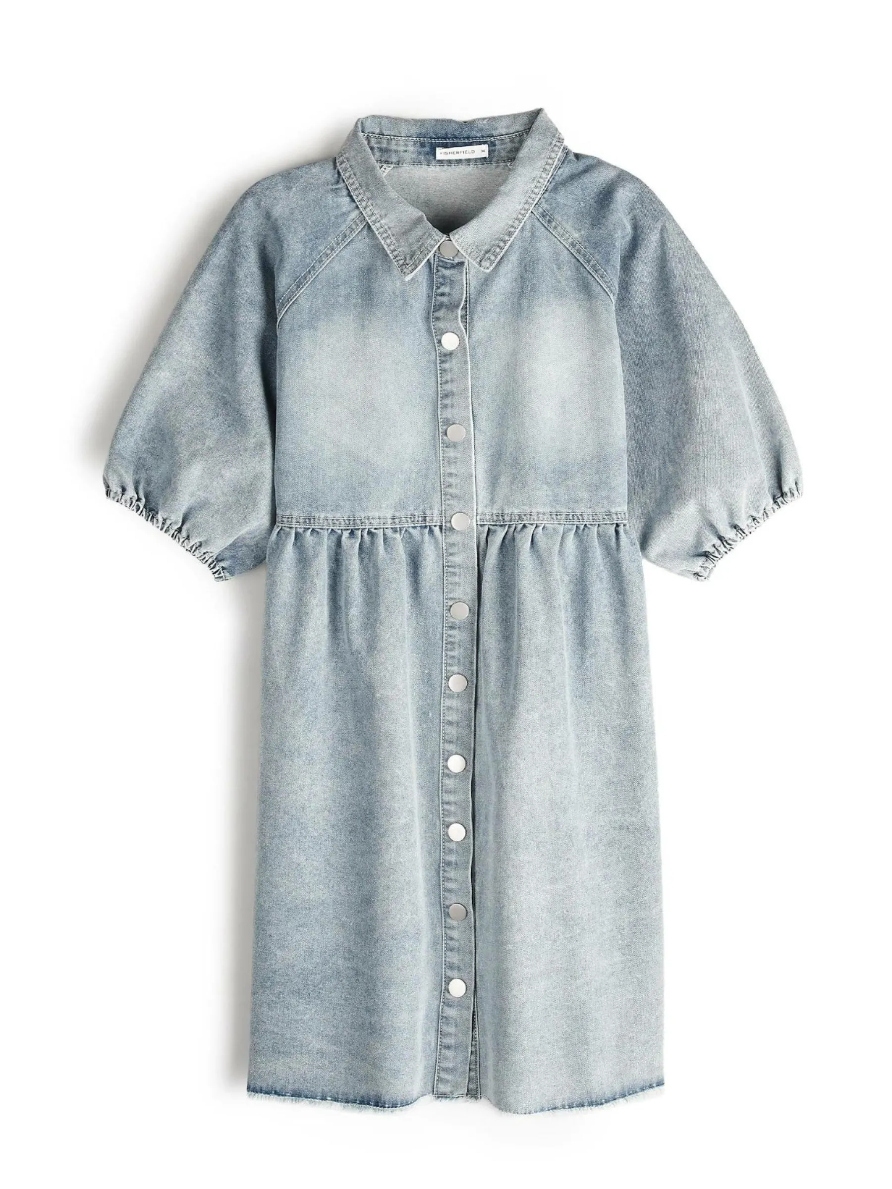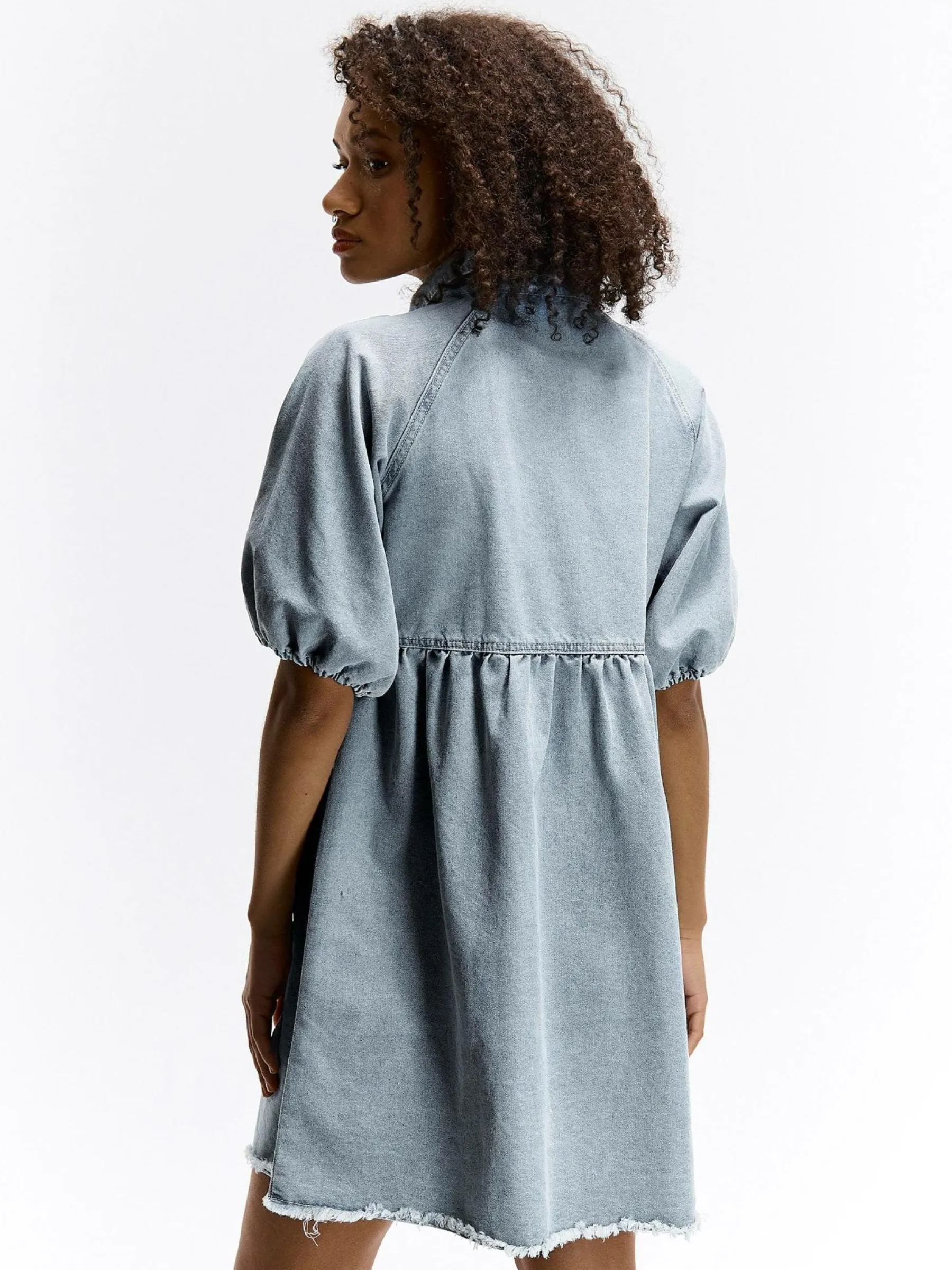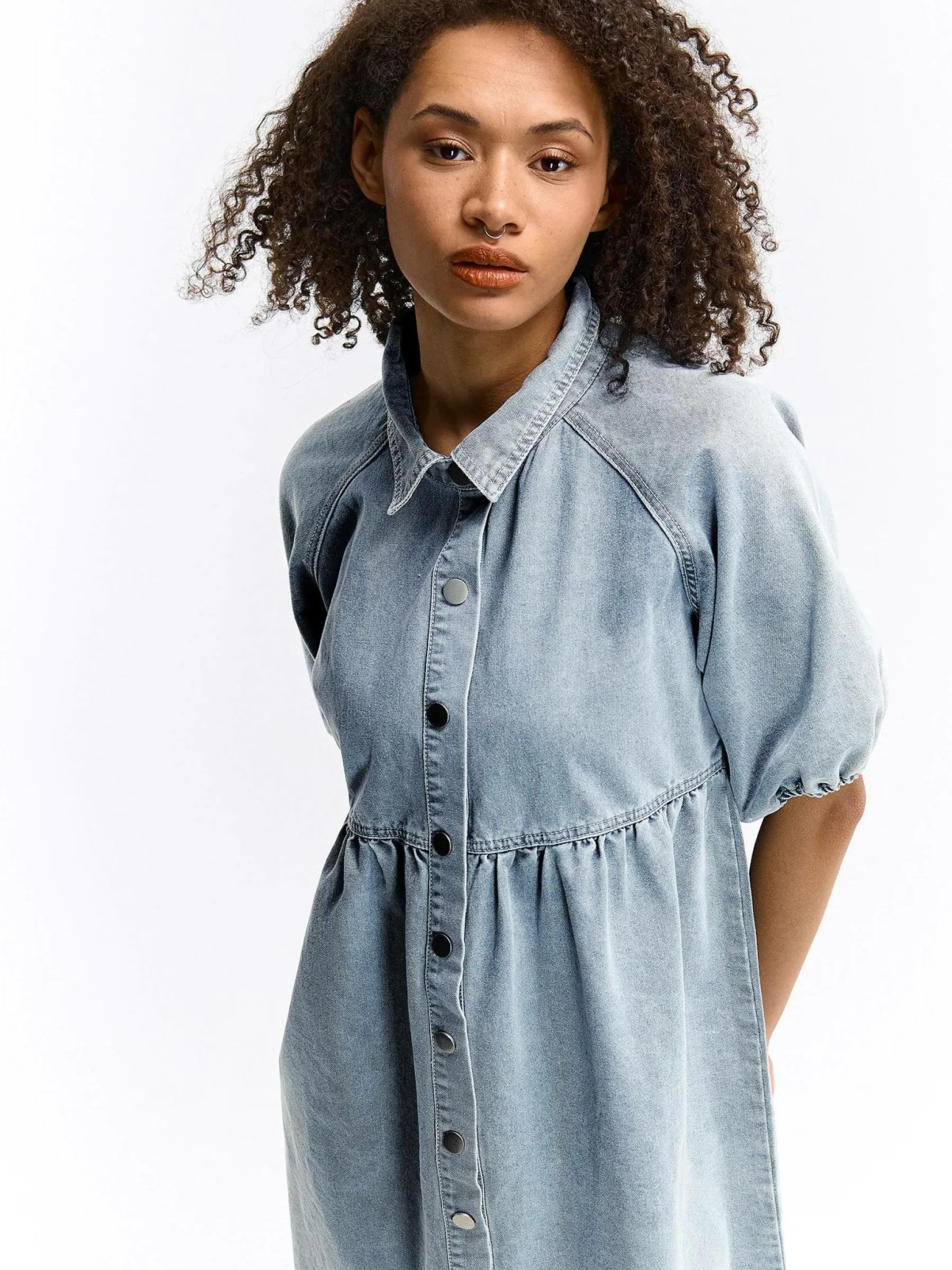 Kolor: niebieskiKrój: asy, koszuloweTyp: sukienkaRekaw: krótki rękawDługość: miniPattern style: pojedynczy kolorDe…