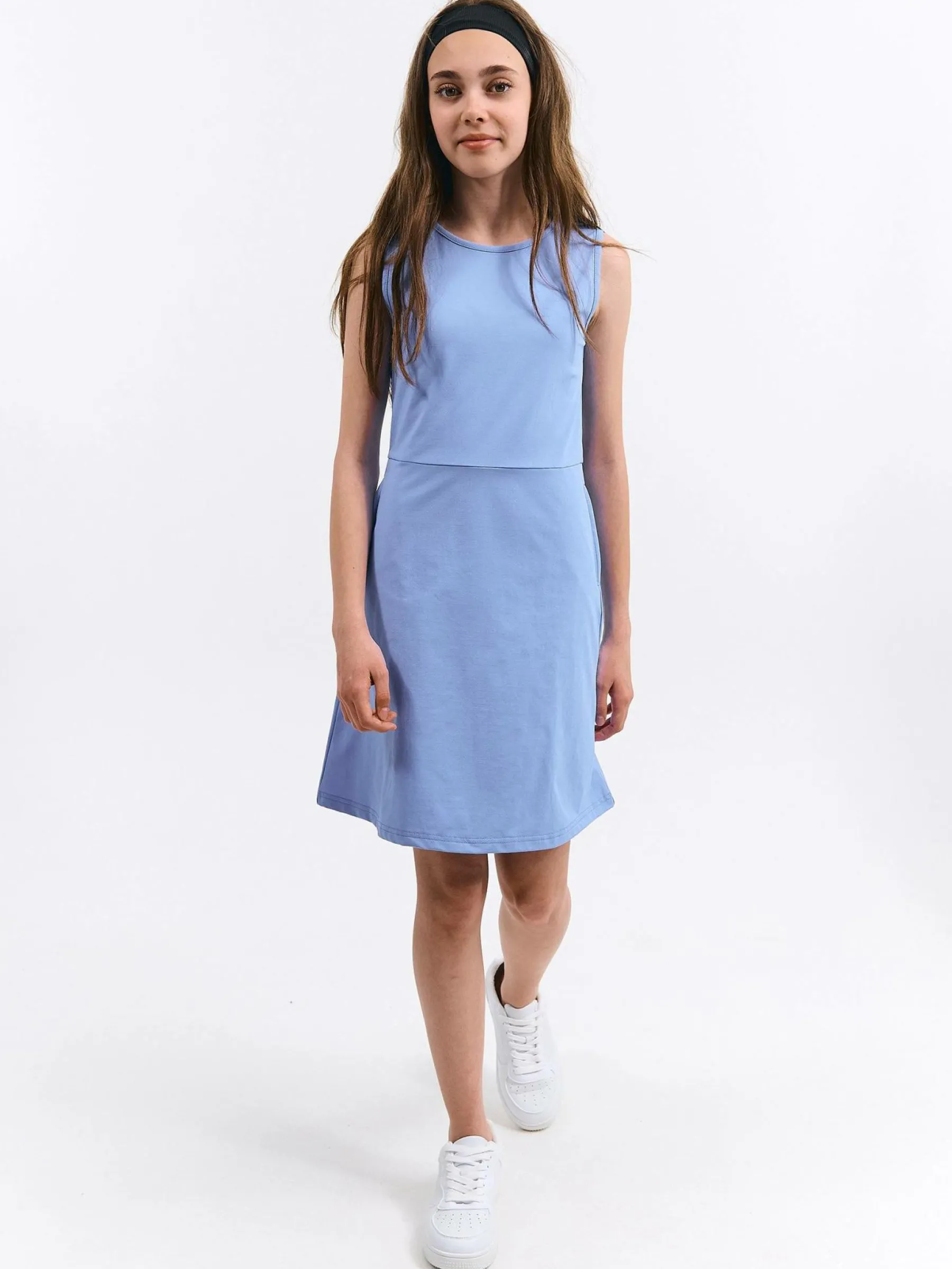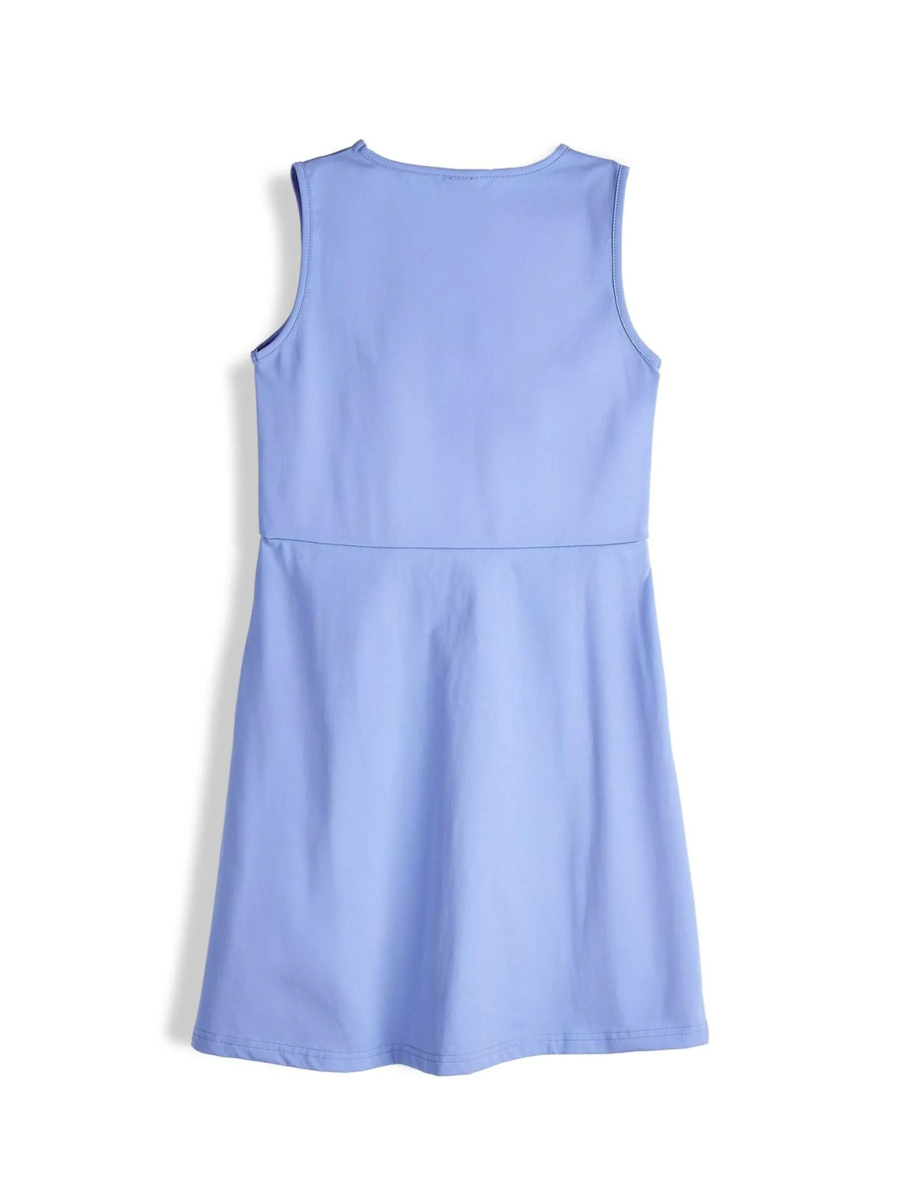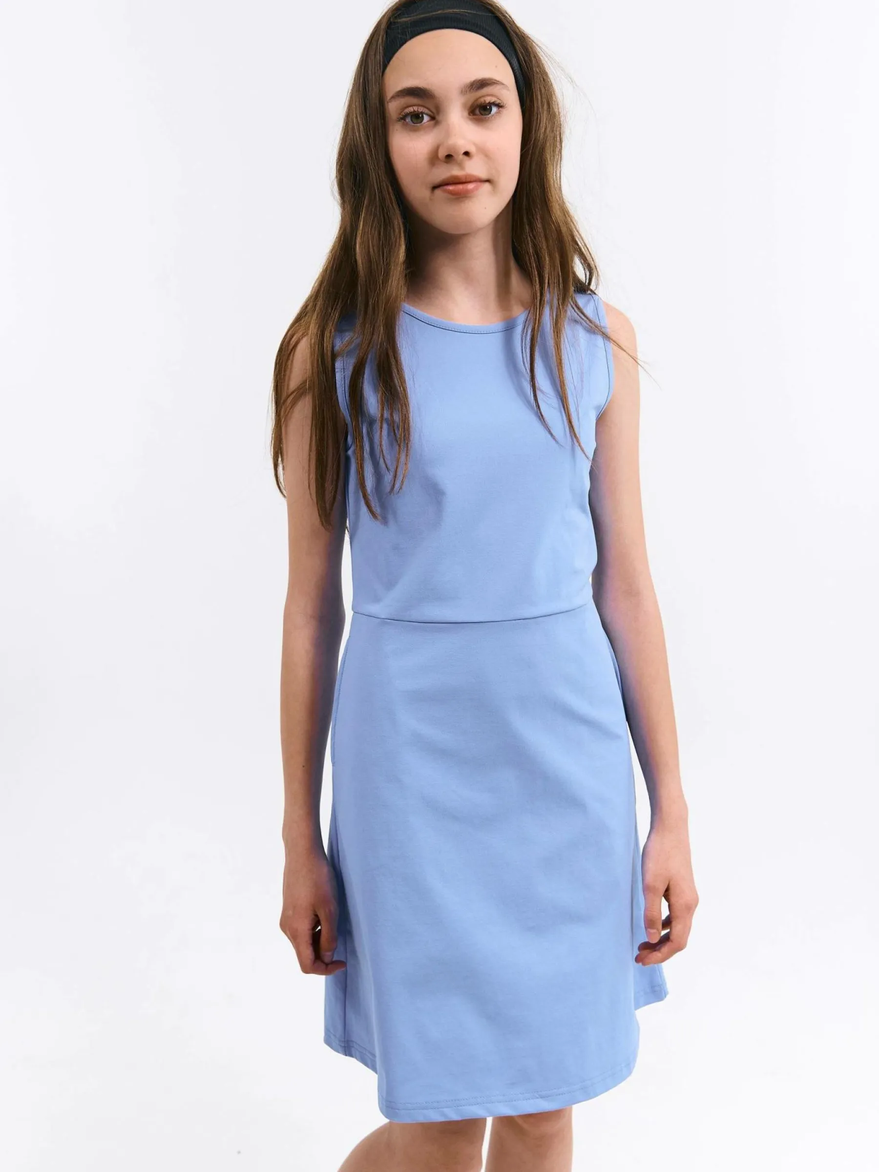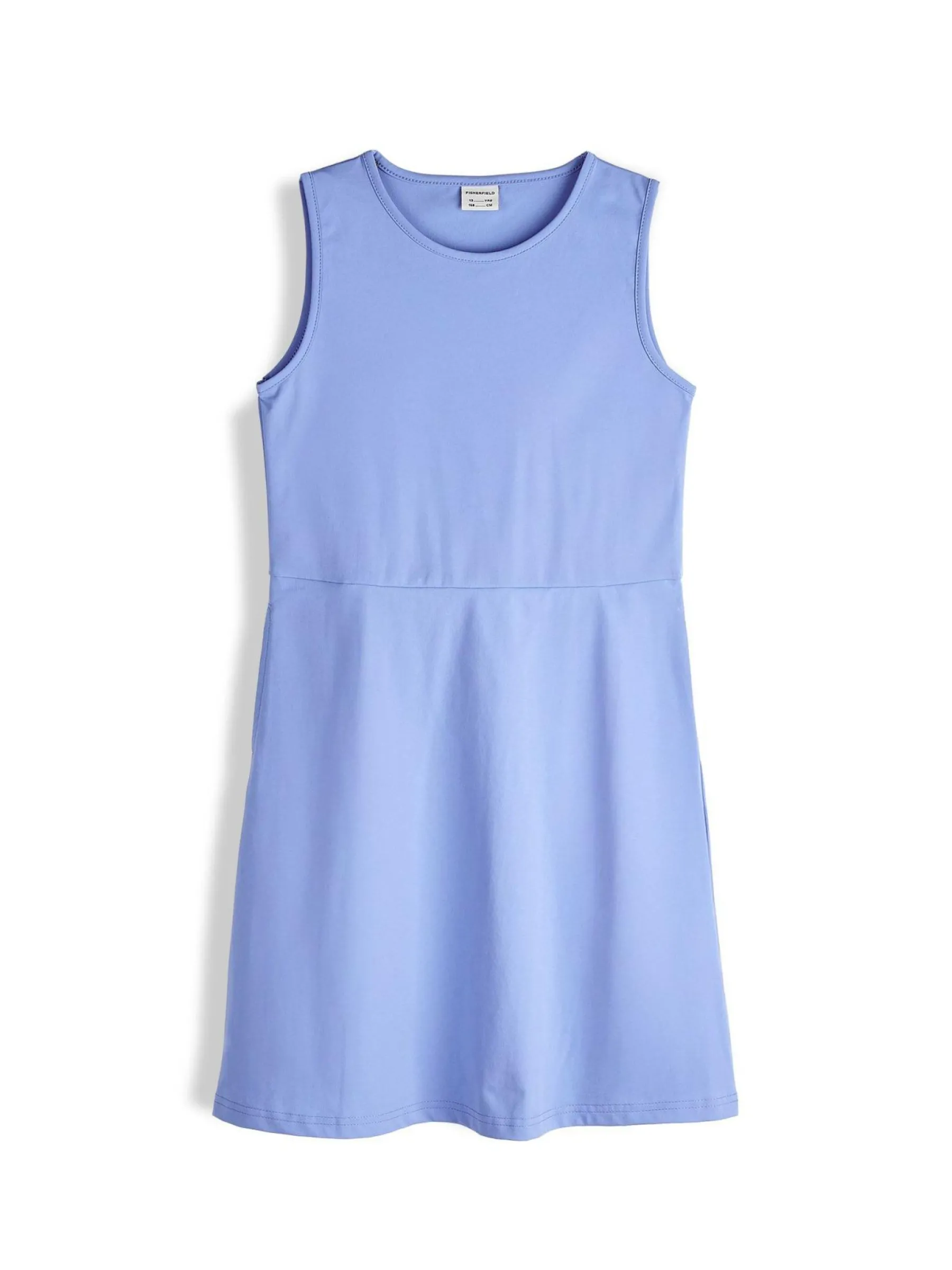 Kolor: niebieskiKrój: asyTyp: sukienkaRekaw: bez rękawówDługość: miniPattern style: pojedynczy kolorDetal: nad gł…