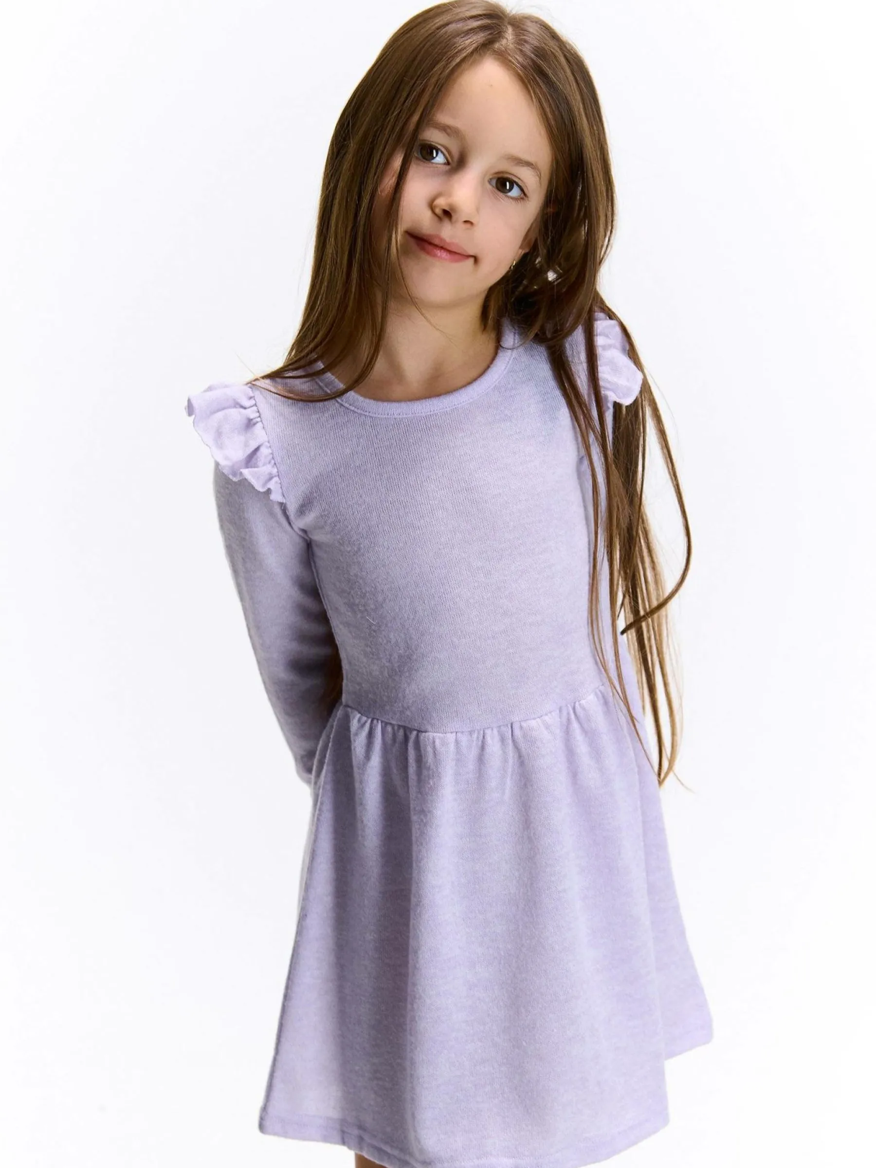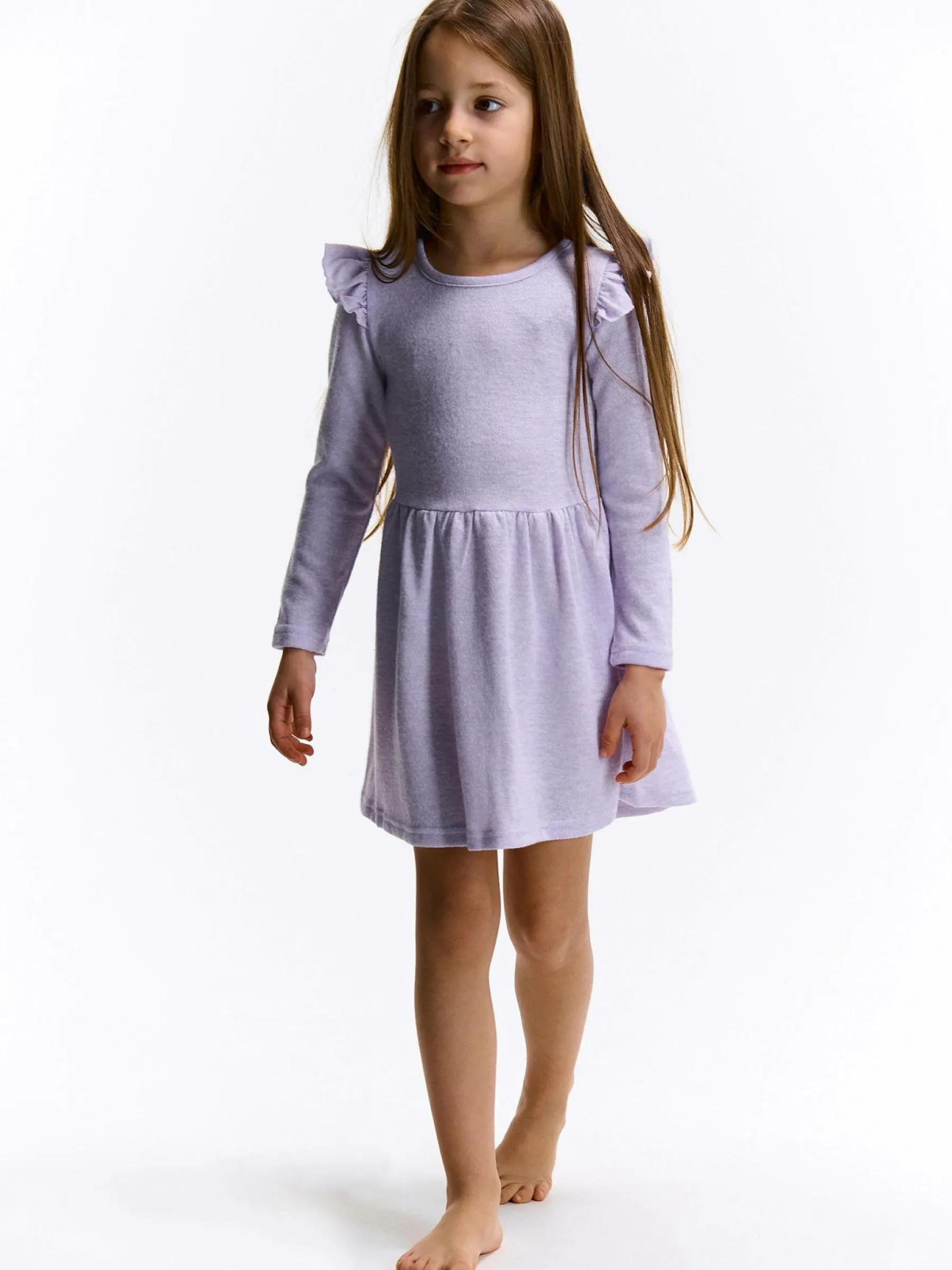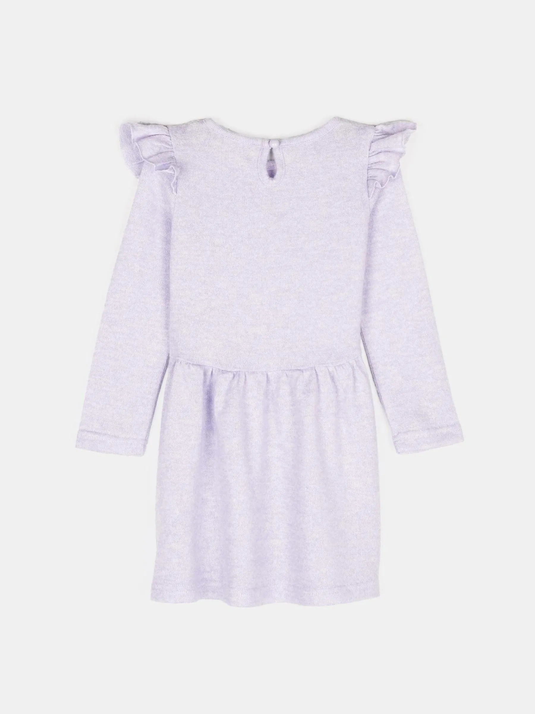 Kolor: purpurowyKrój: z falbanąTyp: sukienkaRekaw: długi rękawDługość: miniPattern style: podświetlonyDetal: nad…