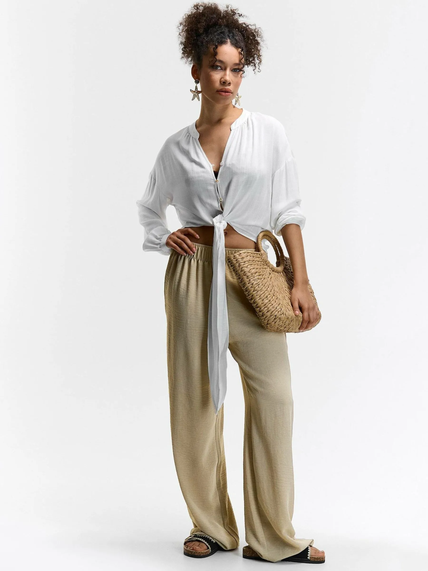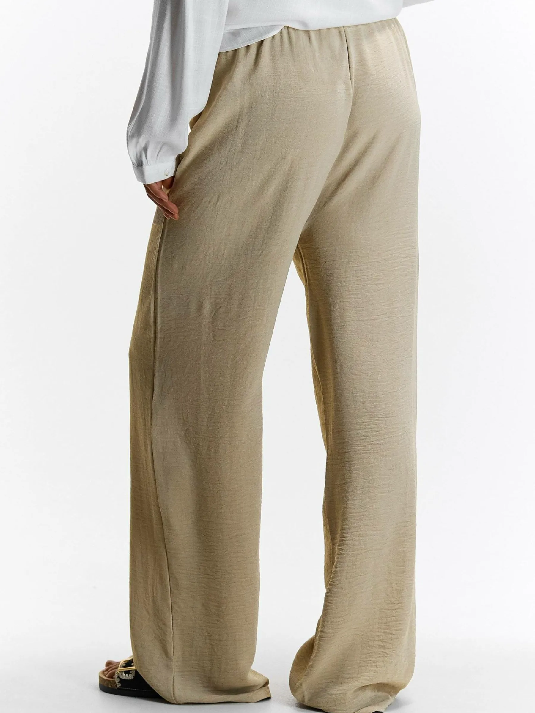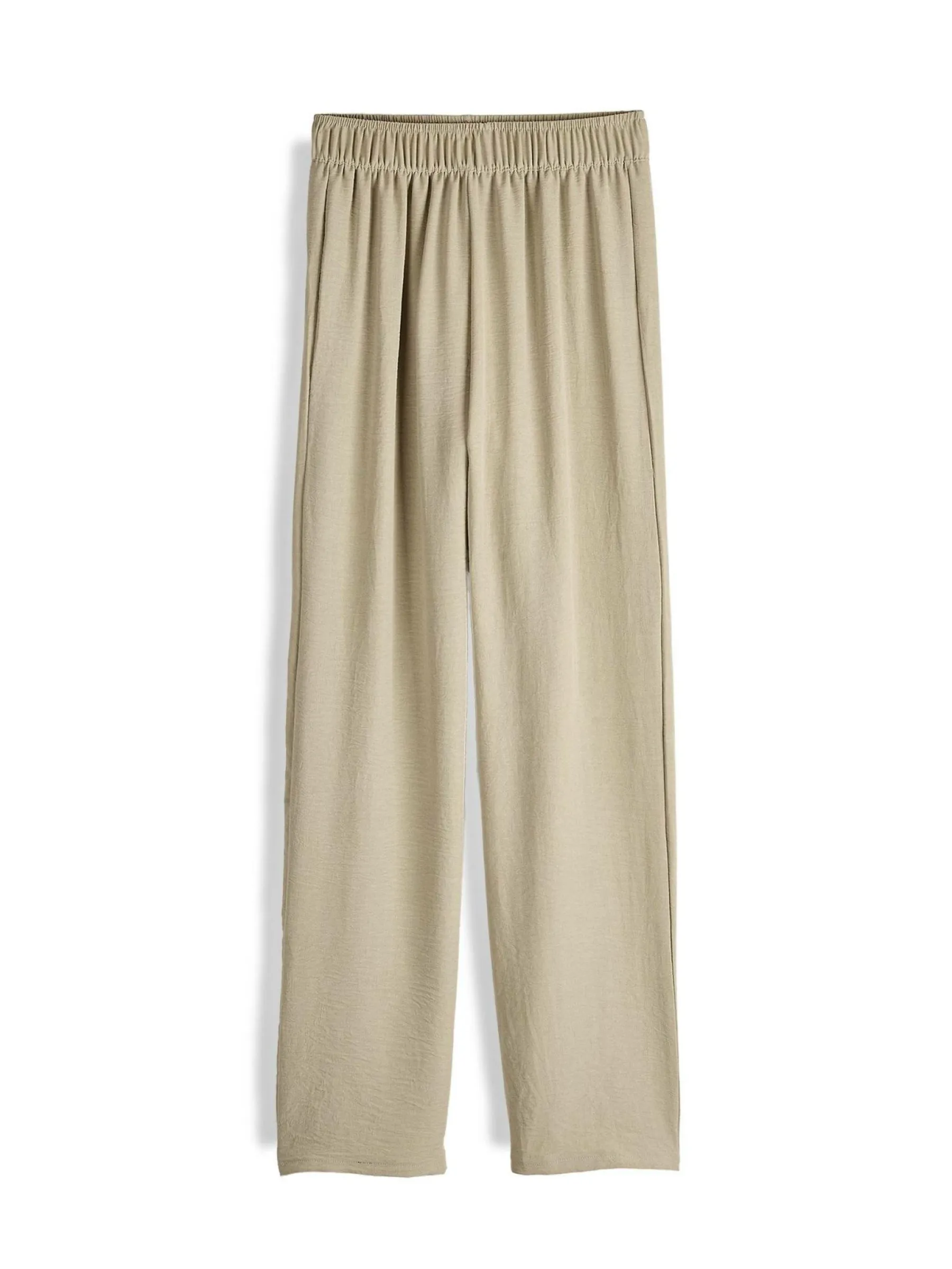 Kolor: beżowyKrój: szerokieTyp: spodnieDługość: dlugiePattern style: pojedynczy kolorDetal: z elastyczną opaskąMa…