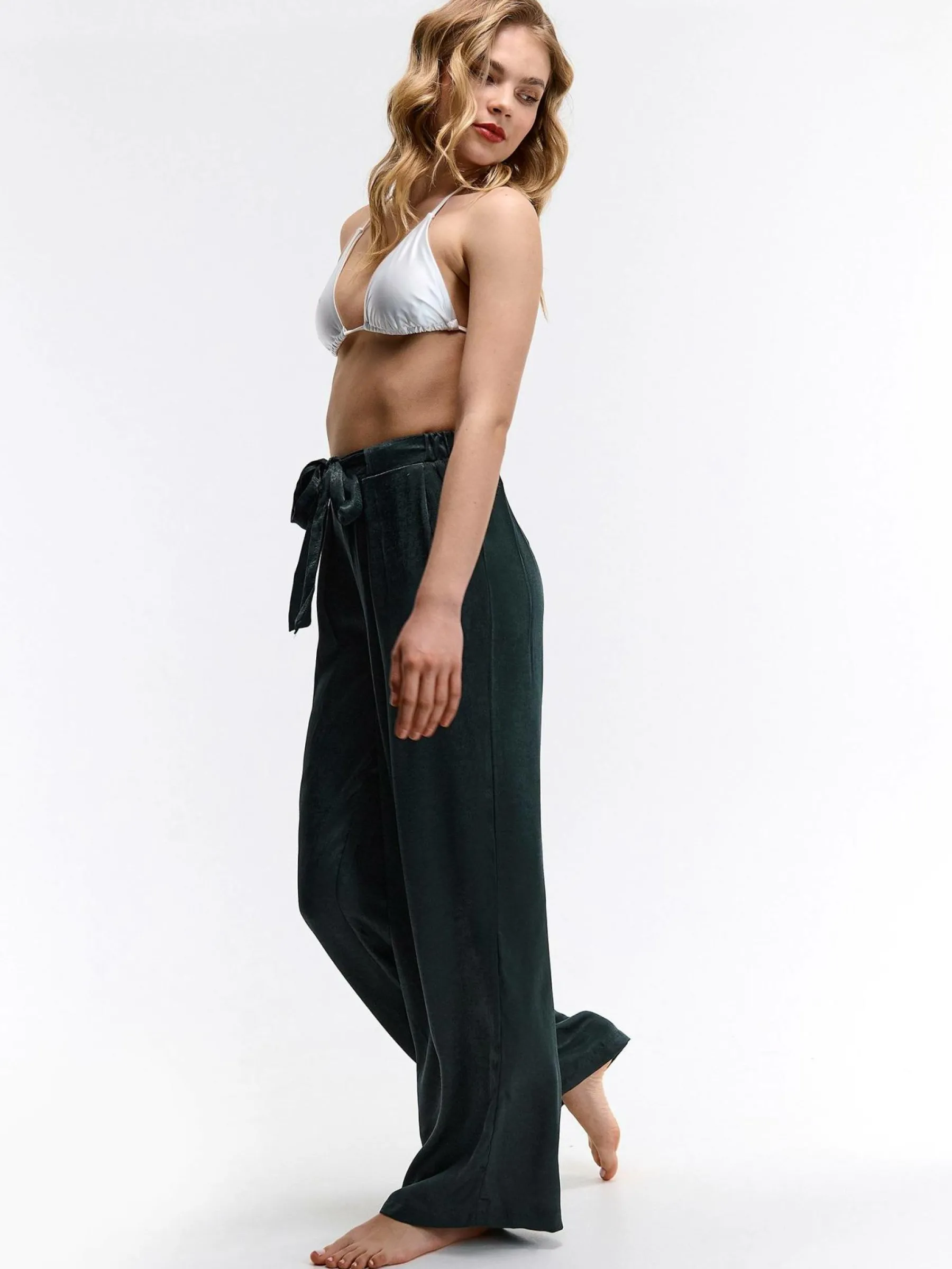 Kolor: szaryKrój: szerokie, z wysokim stanemTyp: spodnieDługość: dlugiePattern style: pojedynczy kolorDetal: z paski…