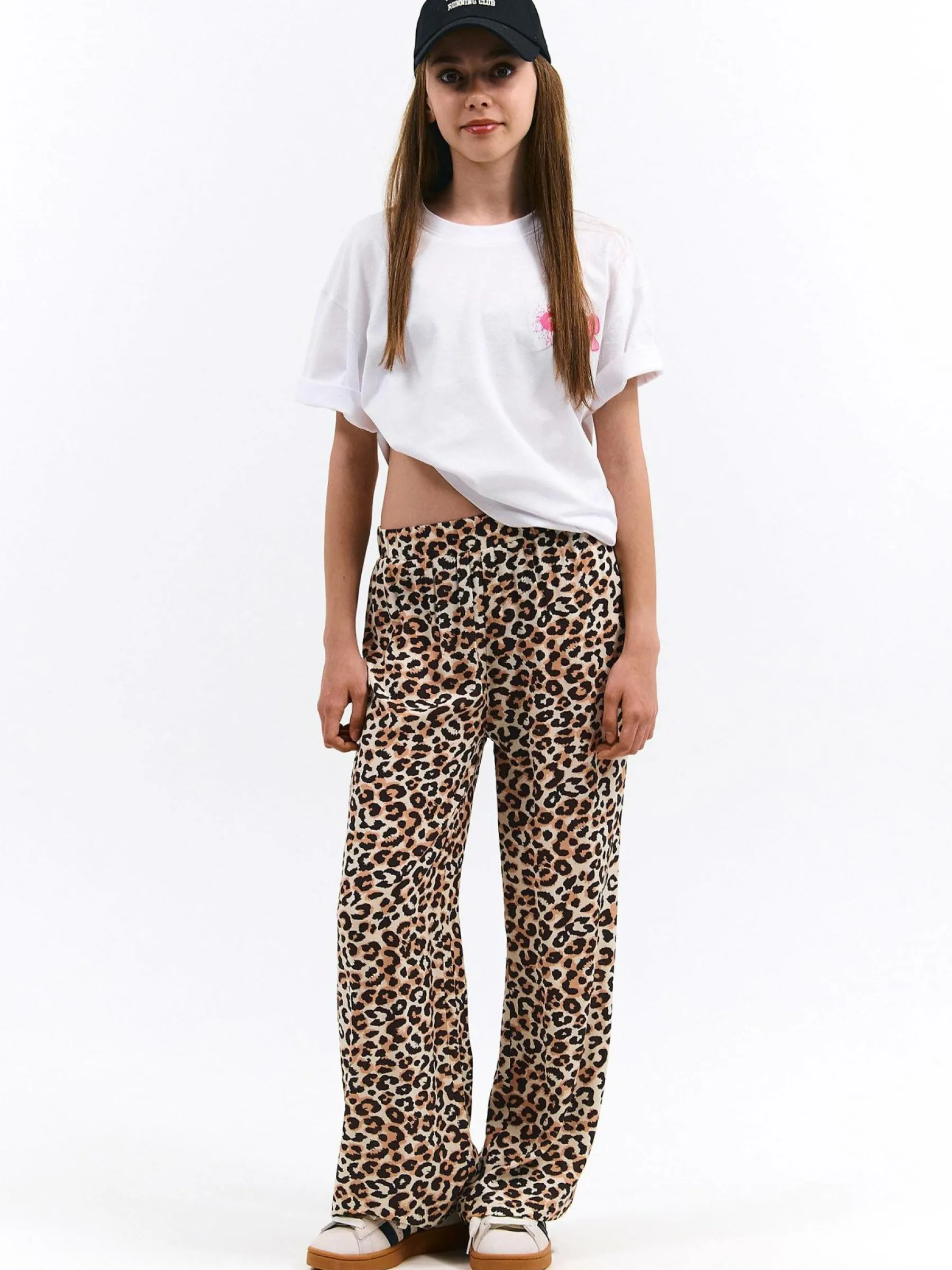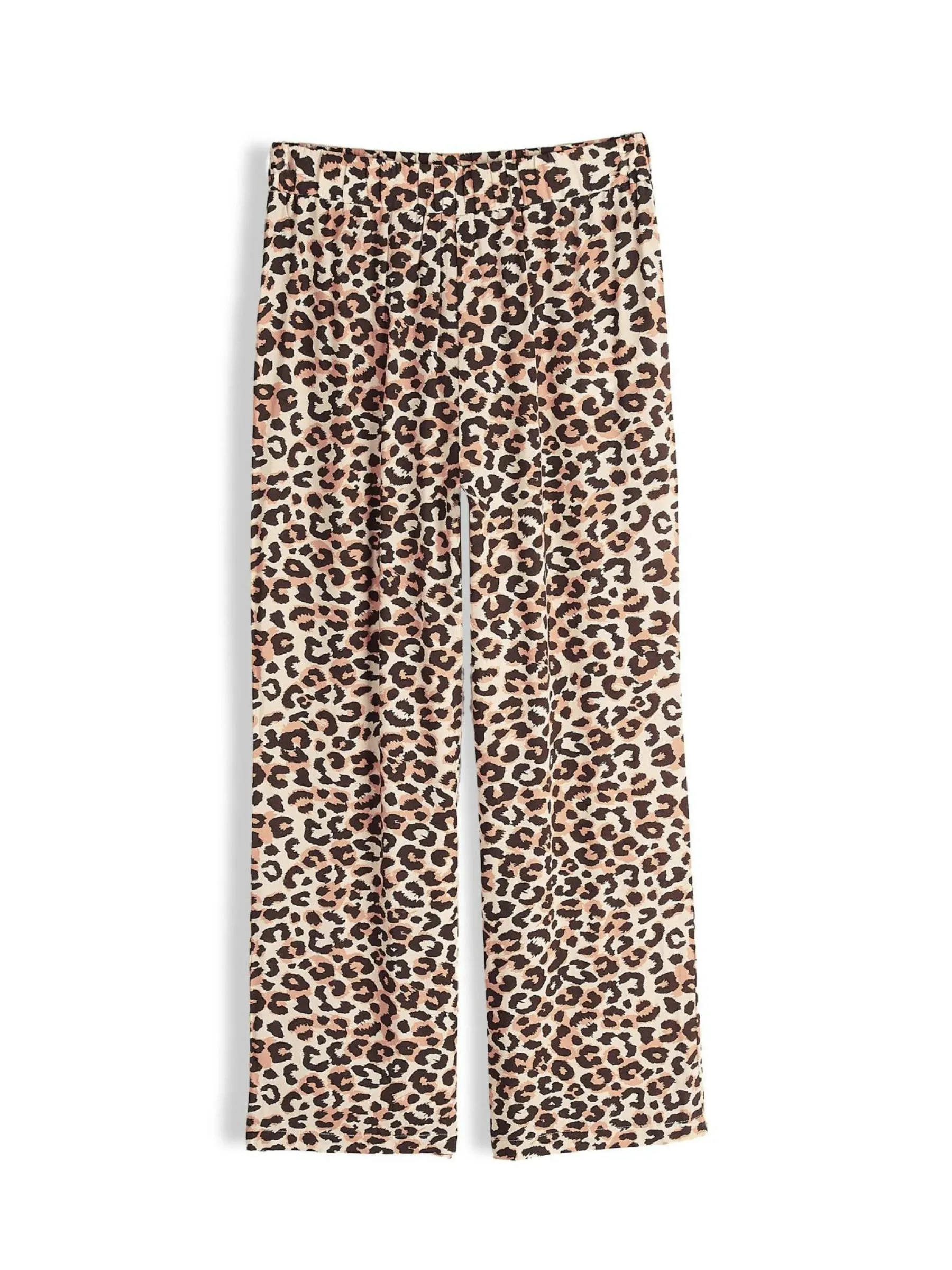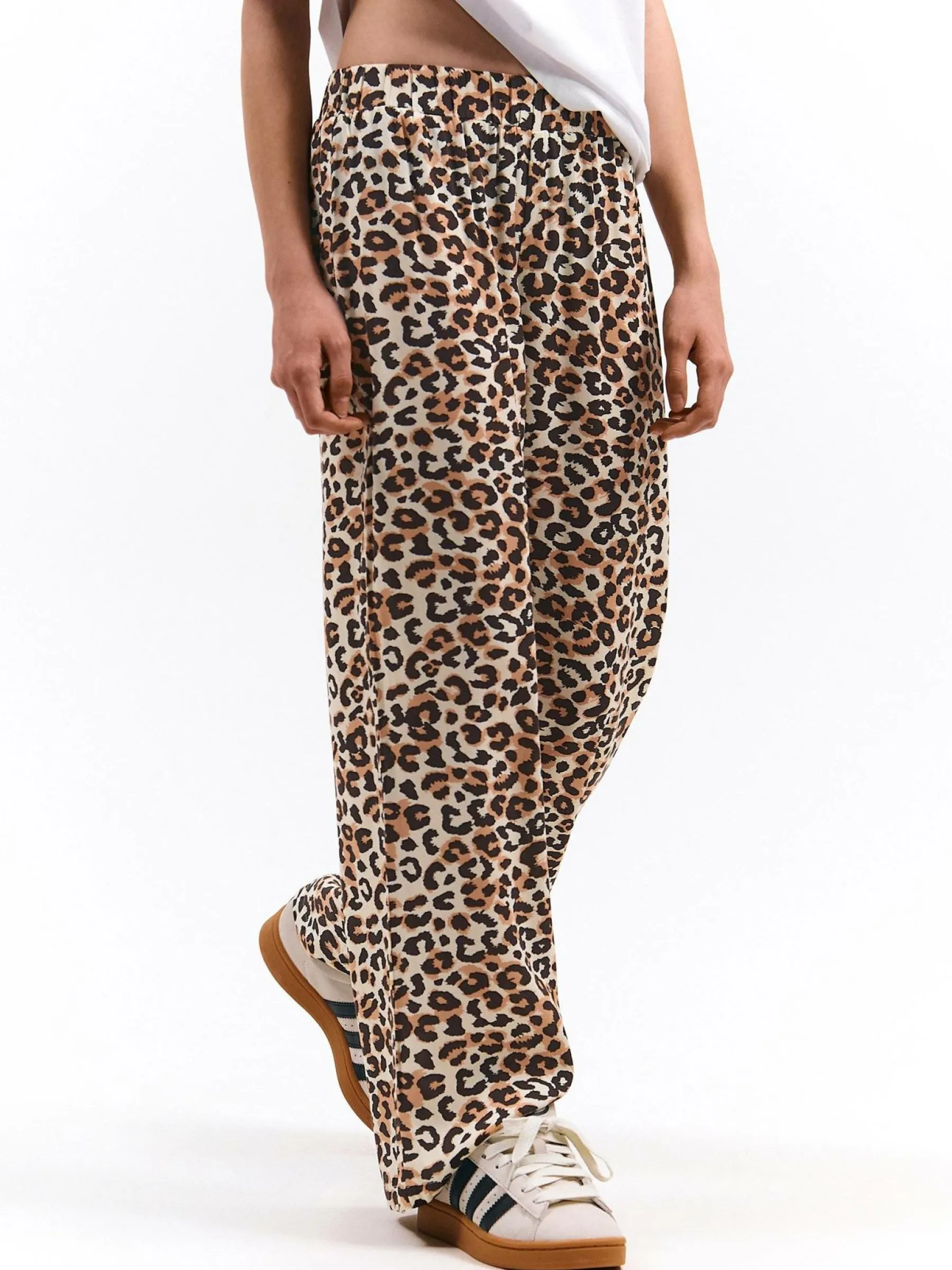 Kolor: beżowyKrój: szerokieTyp: spodnieDługość: dlugiePattern style: zwierzecyDetal: z elastyczną opaskąMateriał…