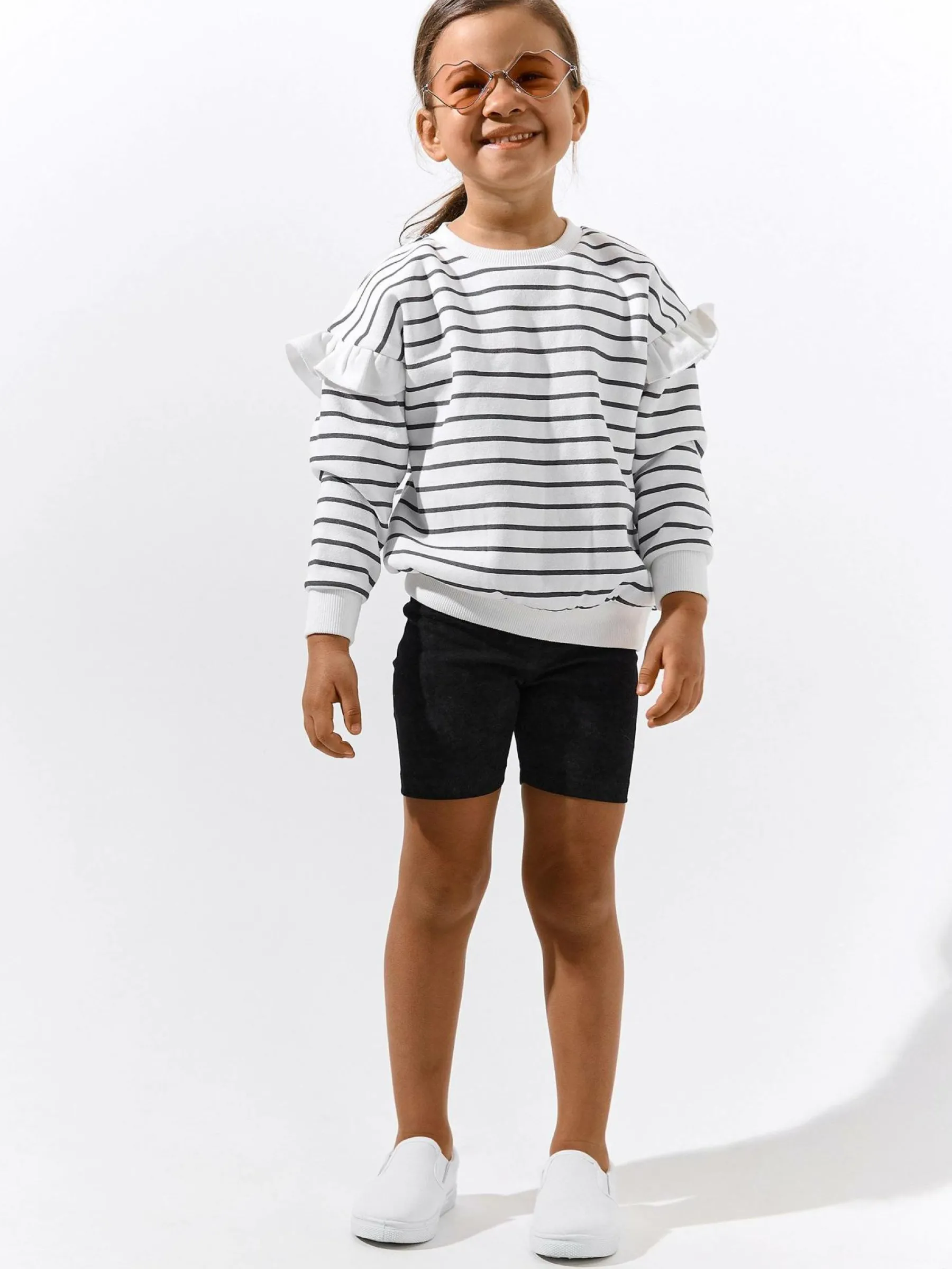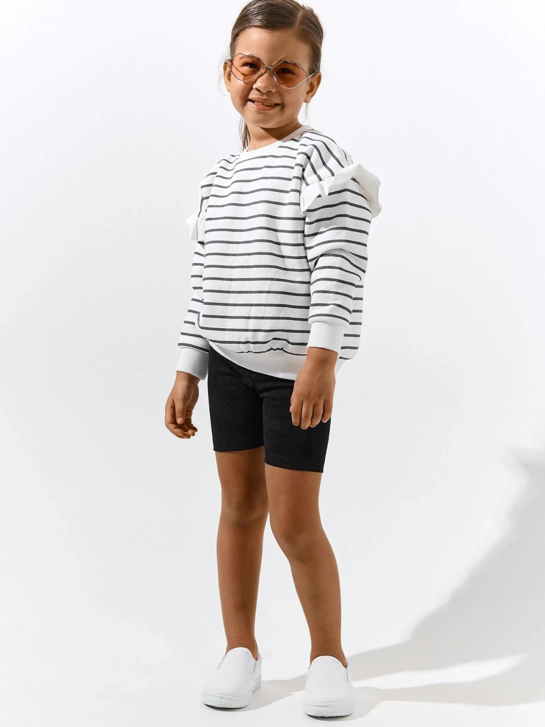 Kolor: czarnyKrój: bikerTyp: spodenkiDługość: krótkiPattern style: pojedynczy kolorDetal: z elastyczną opaskąMate…
