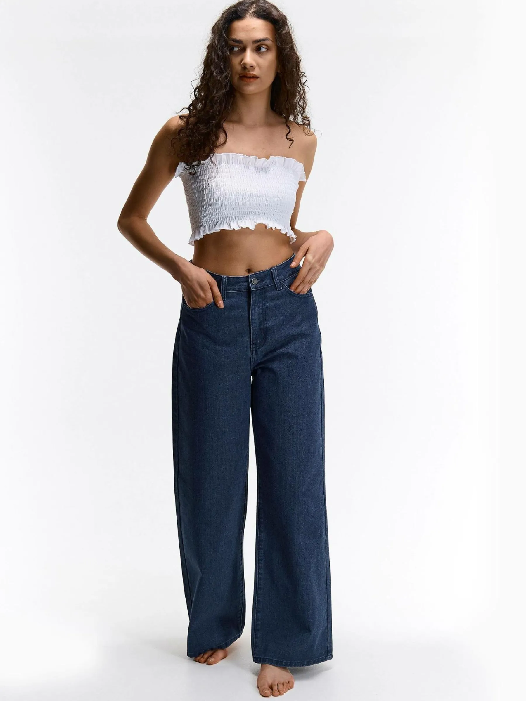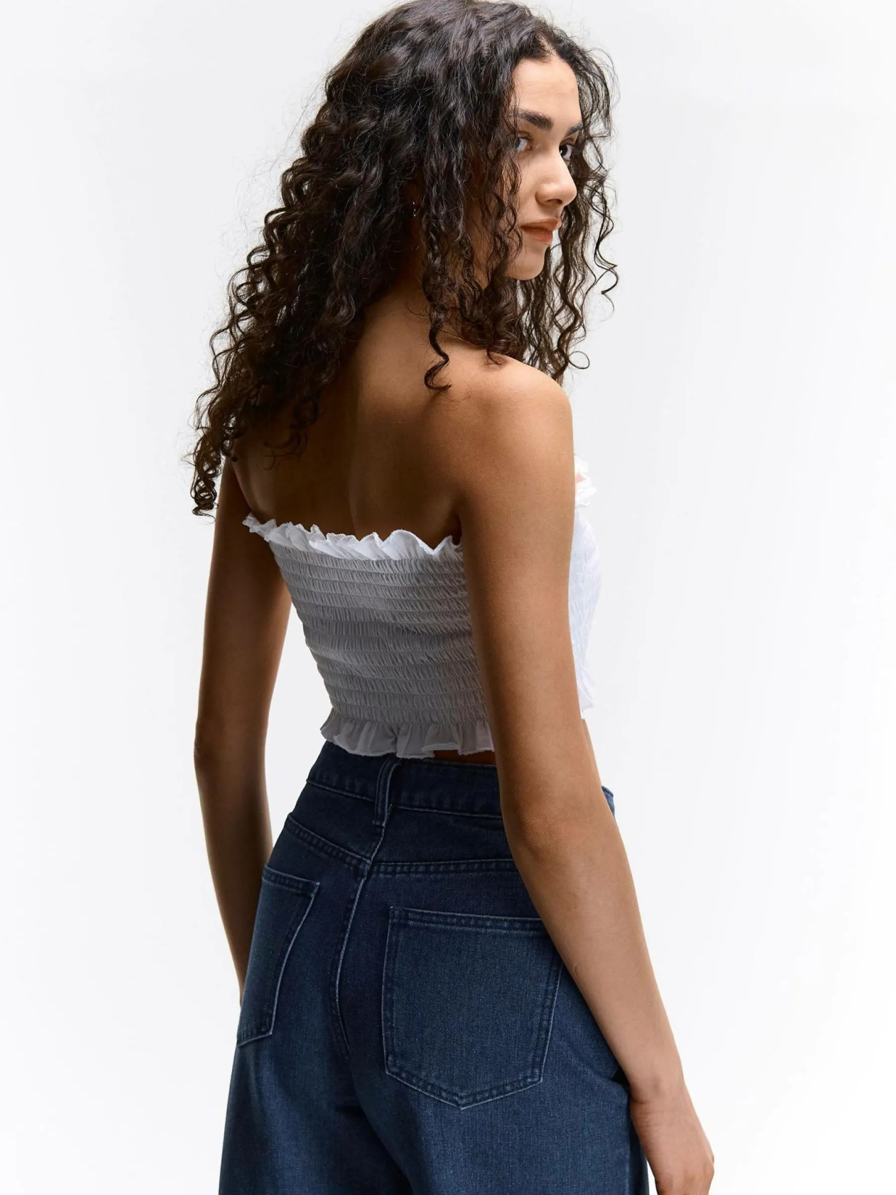Kolor: białyKrój: z marszczeniemTyp: top, podkoszulekRekaw: bez rękawówDługość: krótki topPattern style: pojedyn…