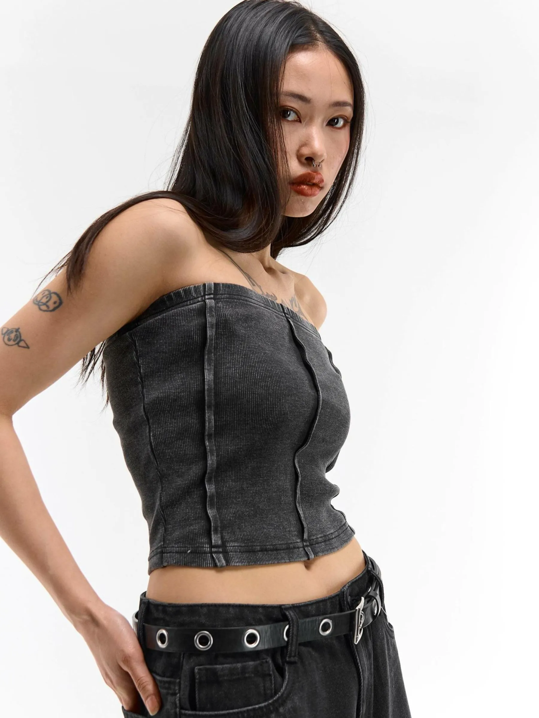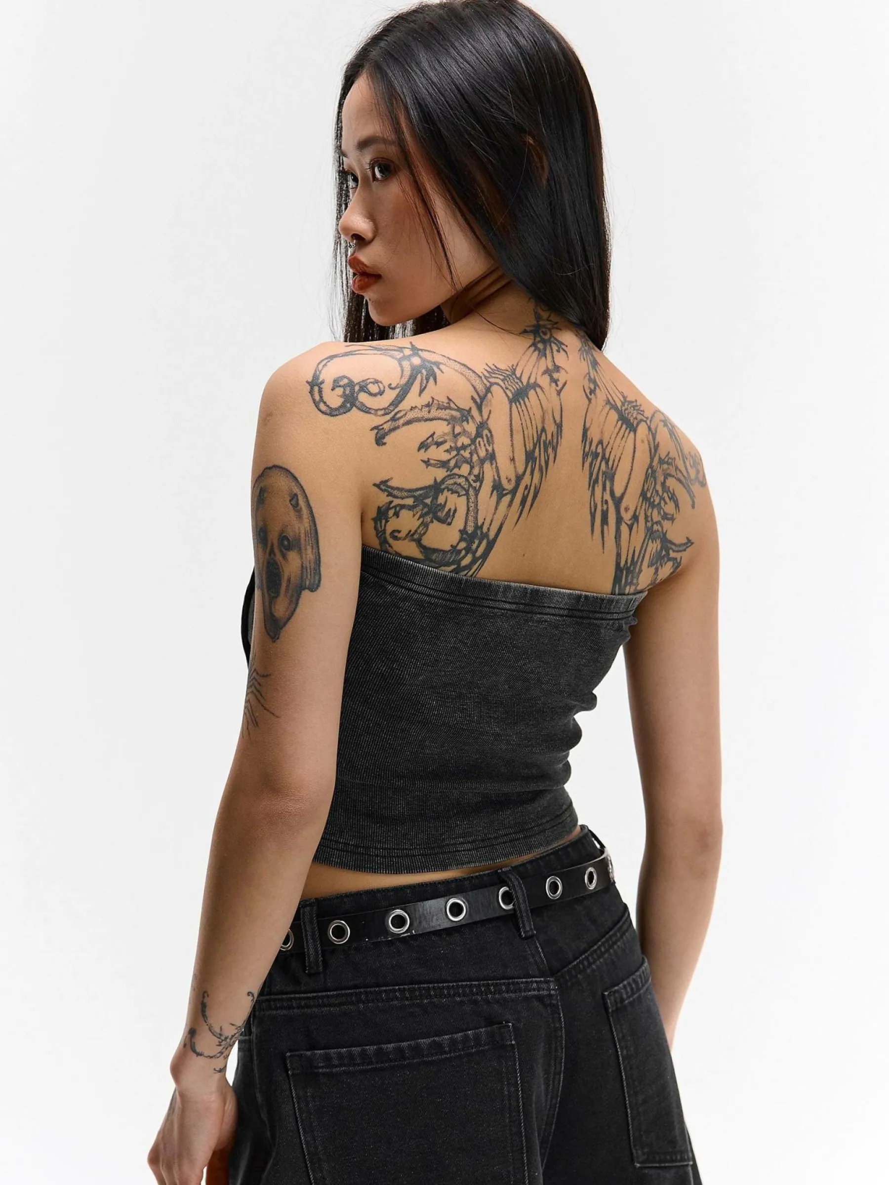 Kolor: szaryKrój: regular, z odkrytymi ramionamiTyp: topRekaw: bez rękawówDługość: krótki topPattern style: pojed…