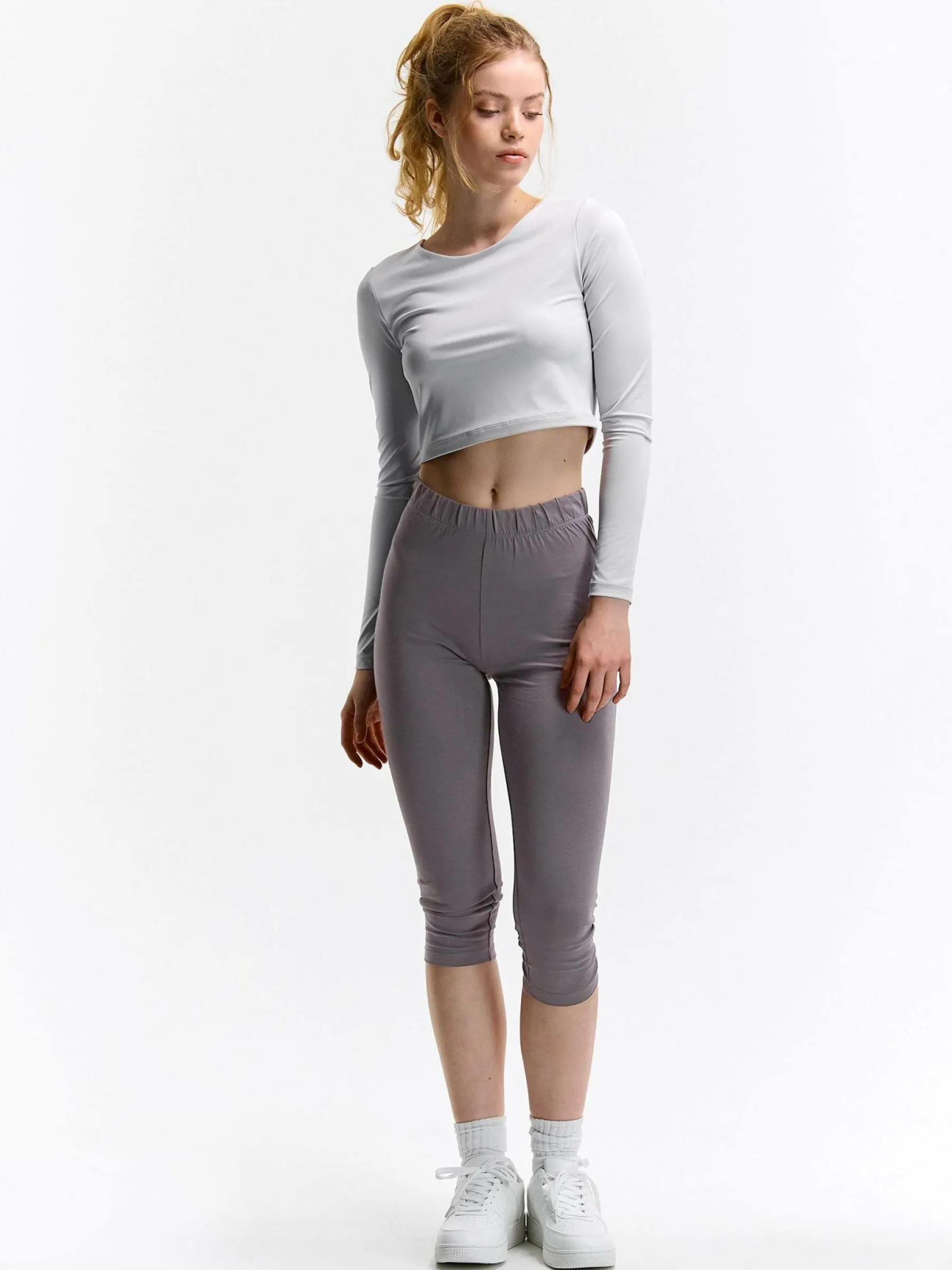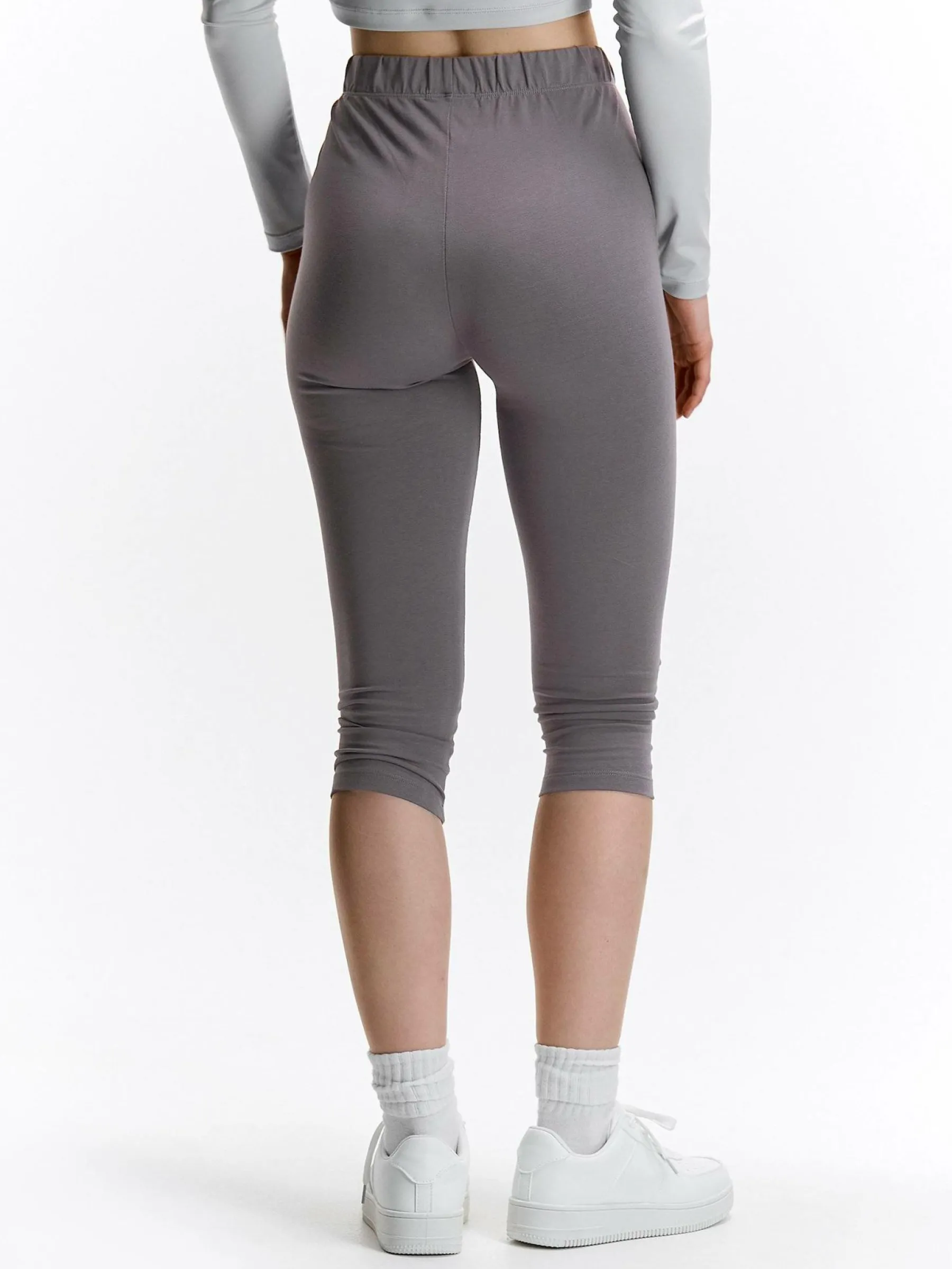 Kolor: szaryKrój: slim, z wysokim stanemTyp: legginsyDługość: trzy czwartePattern style: pojedynczy kolorDetal: z el…