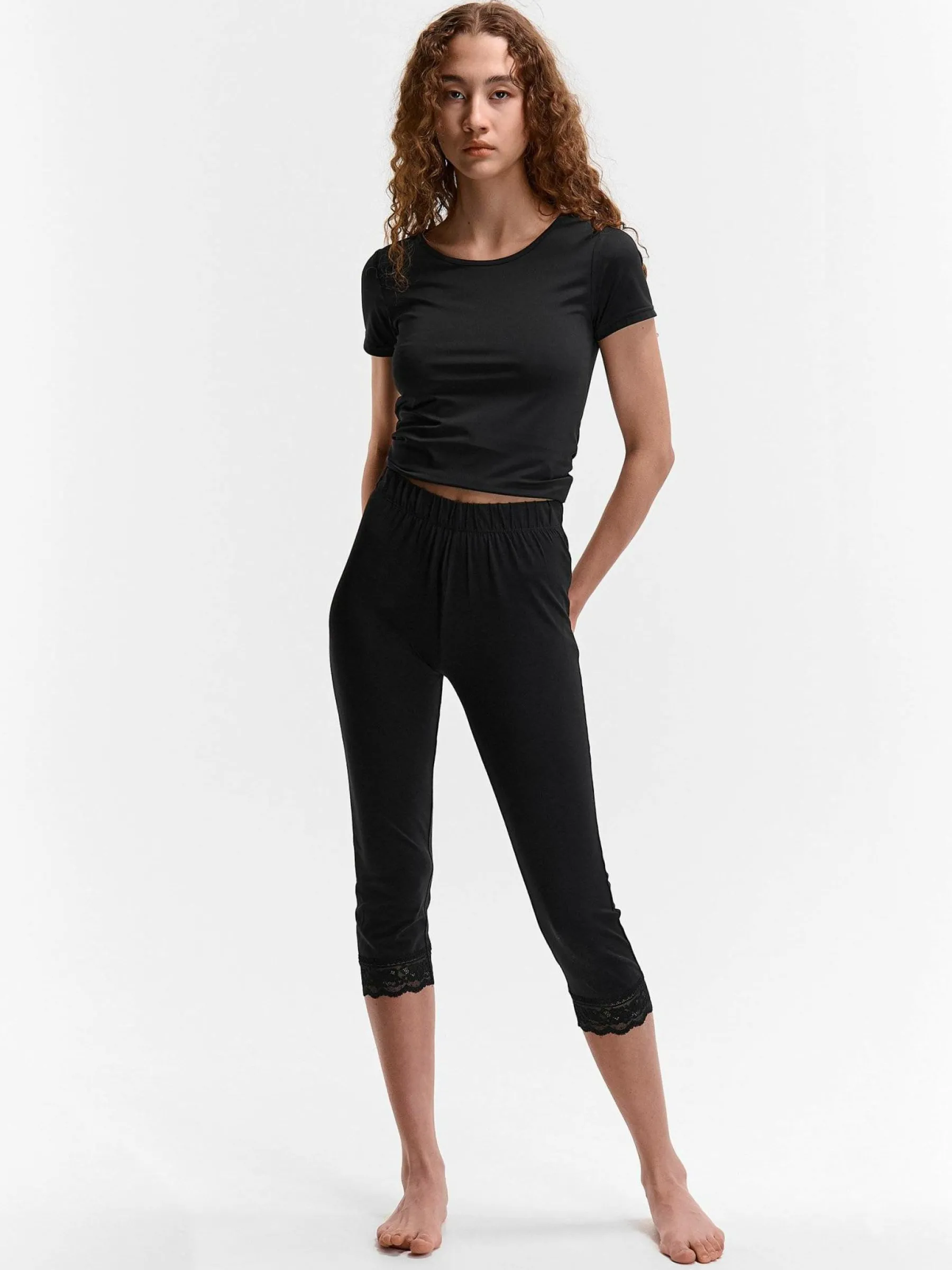 Kolor: czarnyKrój: slimTyp: legginsyDługość: trzy czwartePattern style: pojedynczy kolorDetal: z elastyczną opaską…