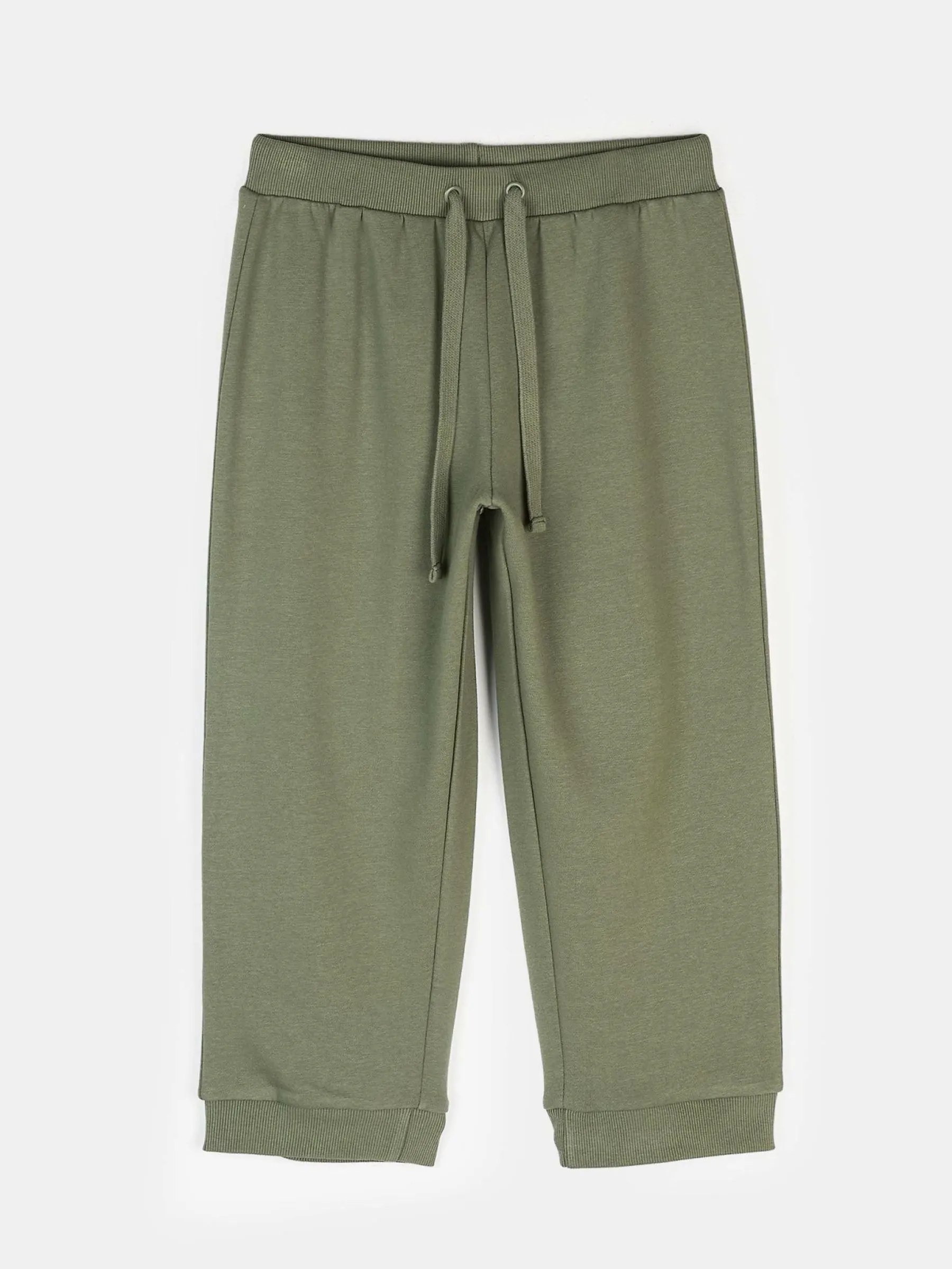 Kolor: khakiKrój: podstawowyTyp: spodnie dresoweDługość: trzy czwartePattern style: pojedynczy kolorDetal: ze znakie…