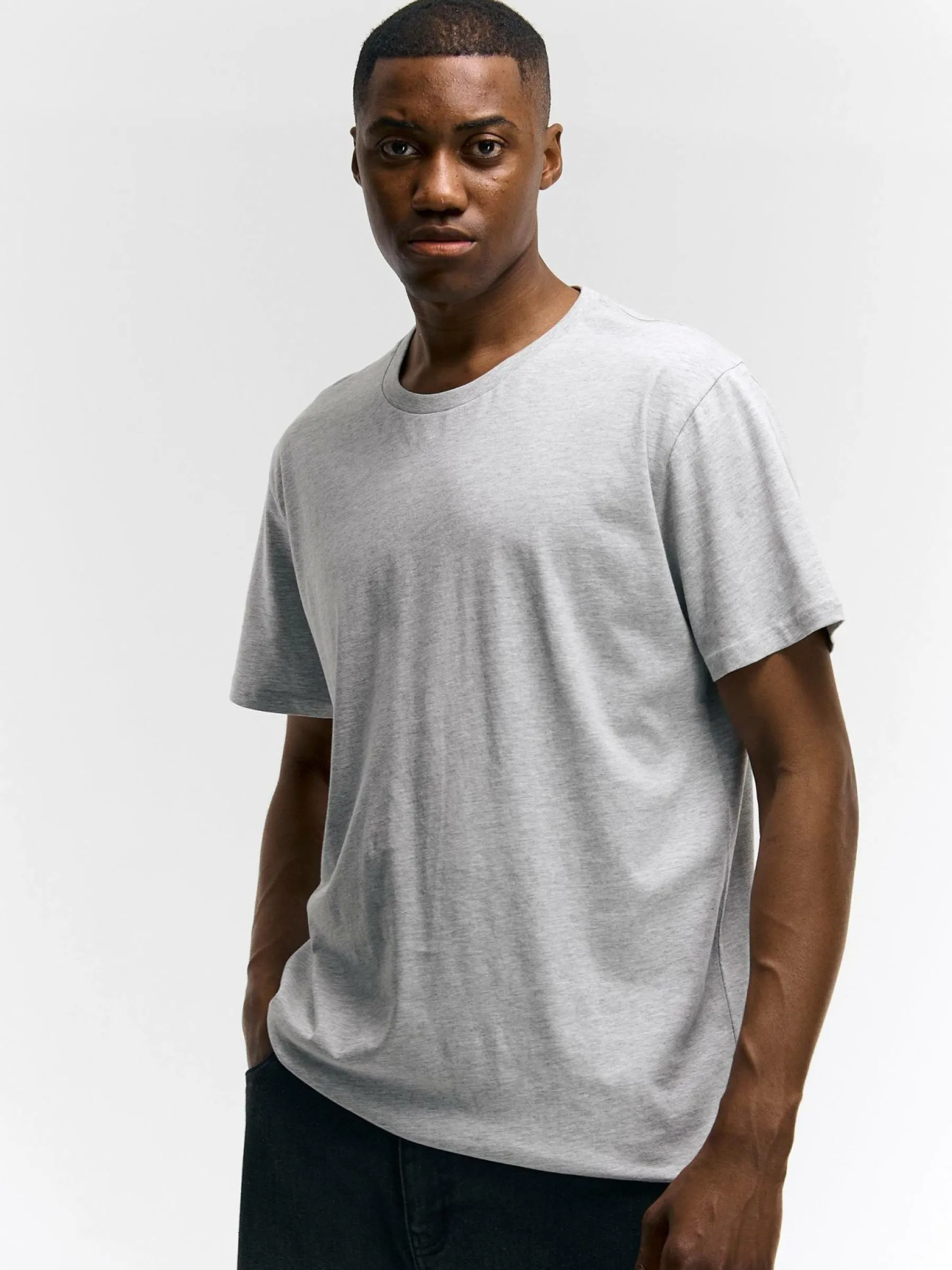 Kolor: szaryKrój: regularTyp: koszulkaRekaw: krótki rękawPattern style: pojedynczy kolorDetal: nad głowąMateriał: …