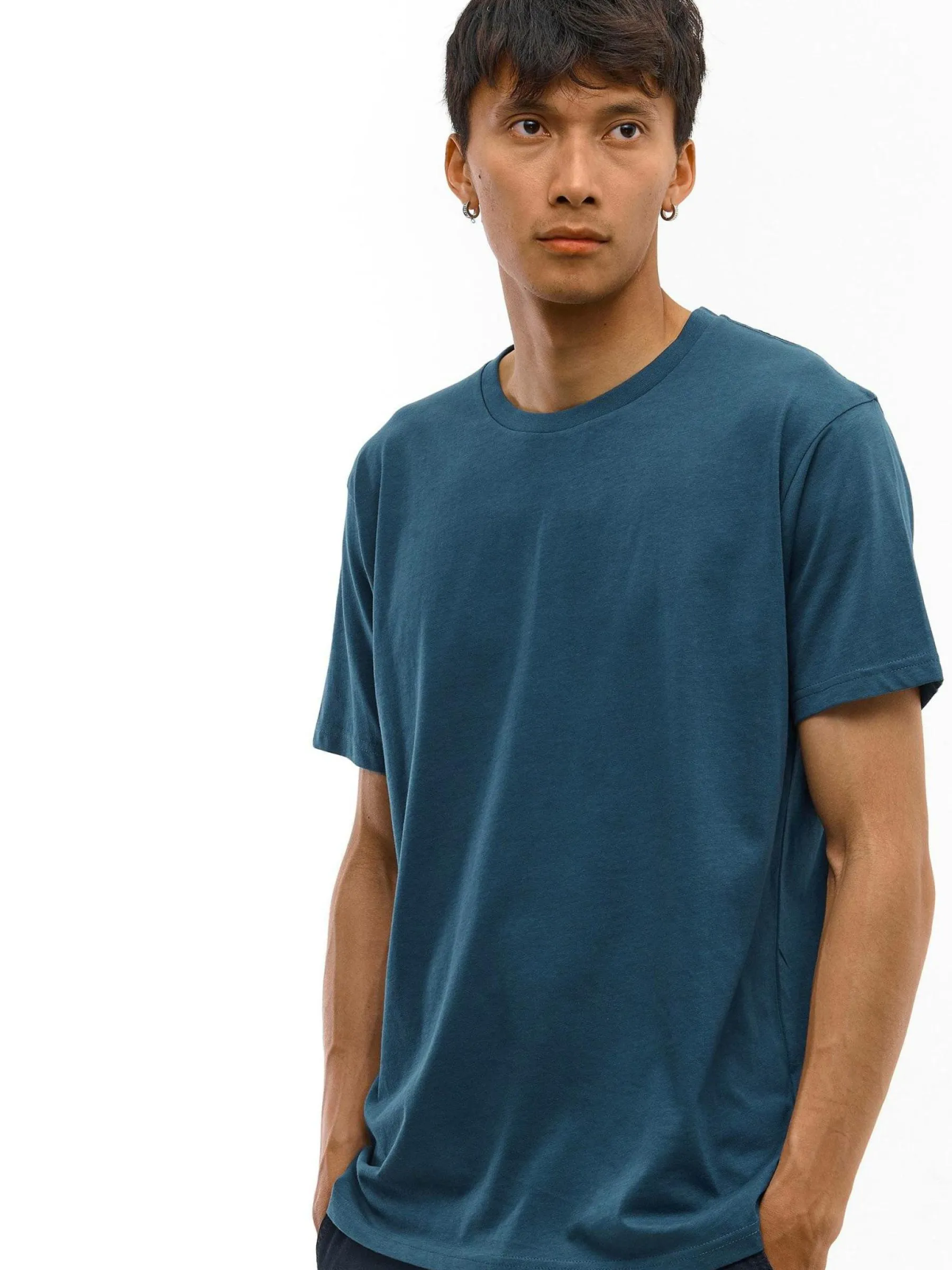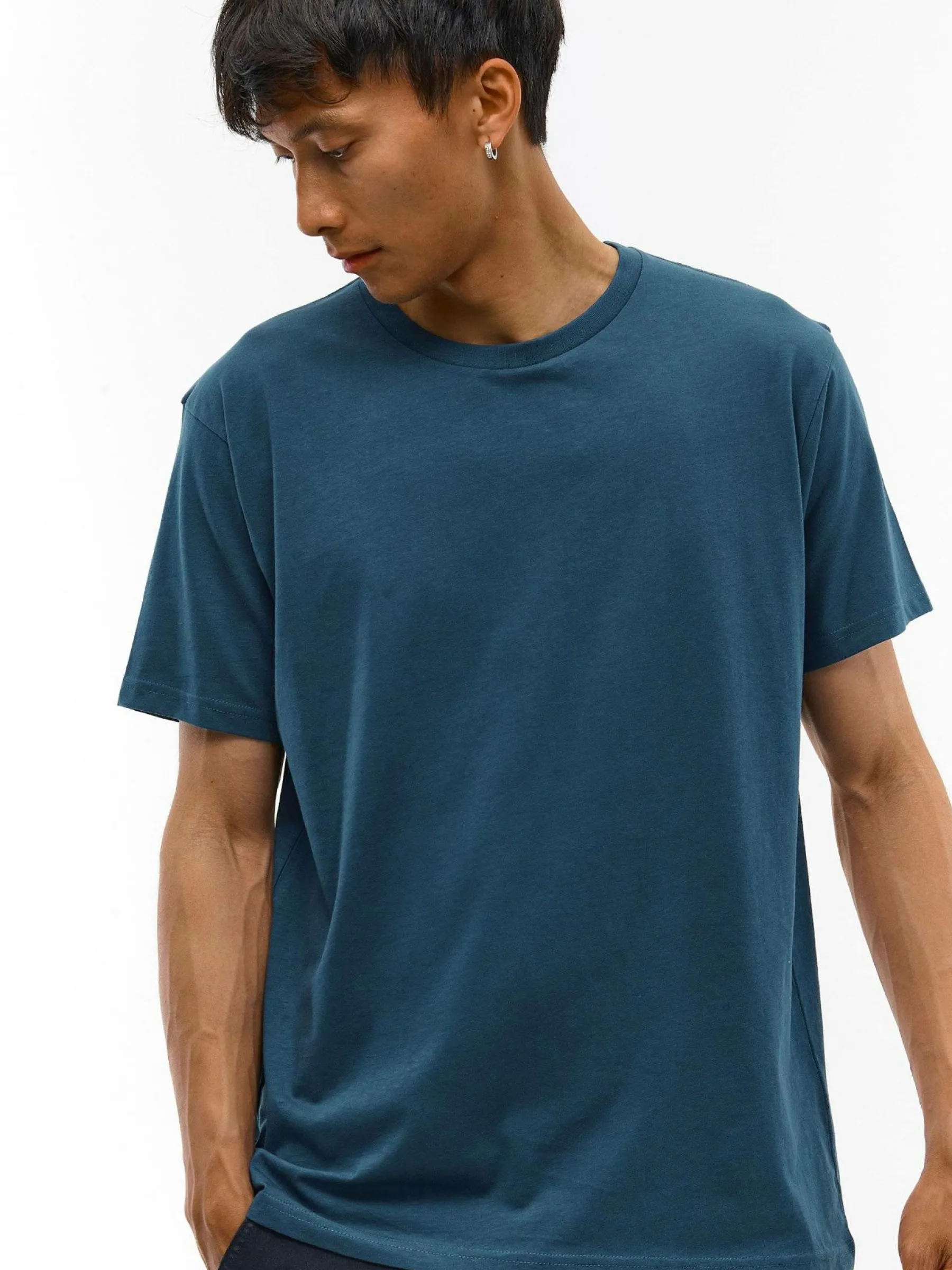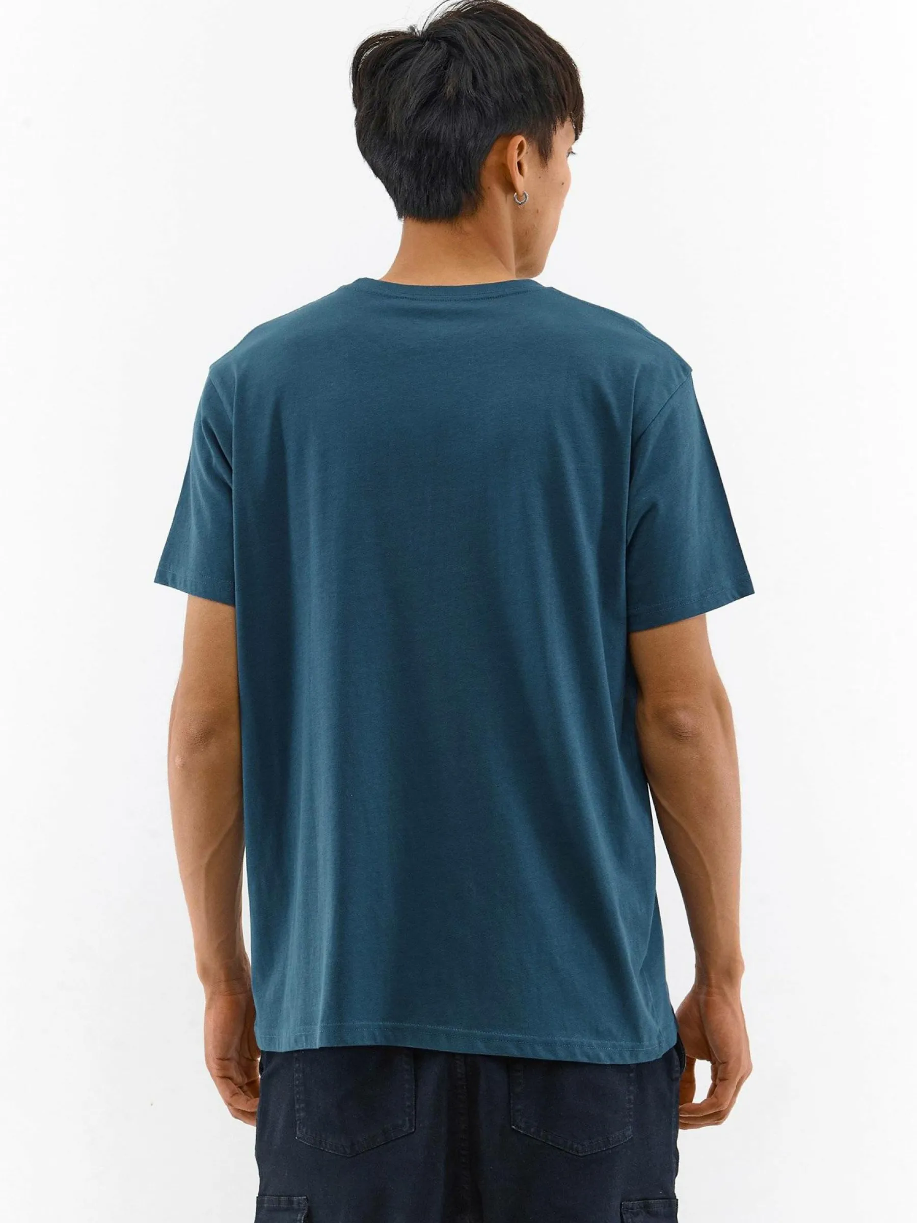 Kolor: granatowy, niebieskiKrój: regularTyp: koszulkaRekaw: krótki rękawPattern style: pojedynczy kolorDetal: nad gł…