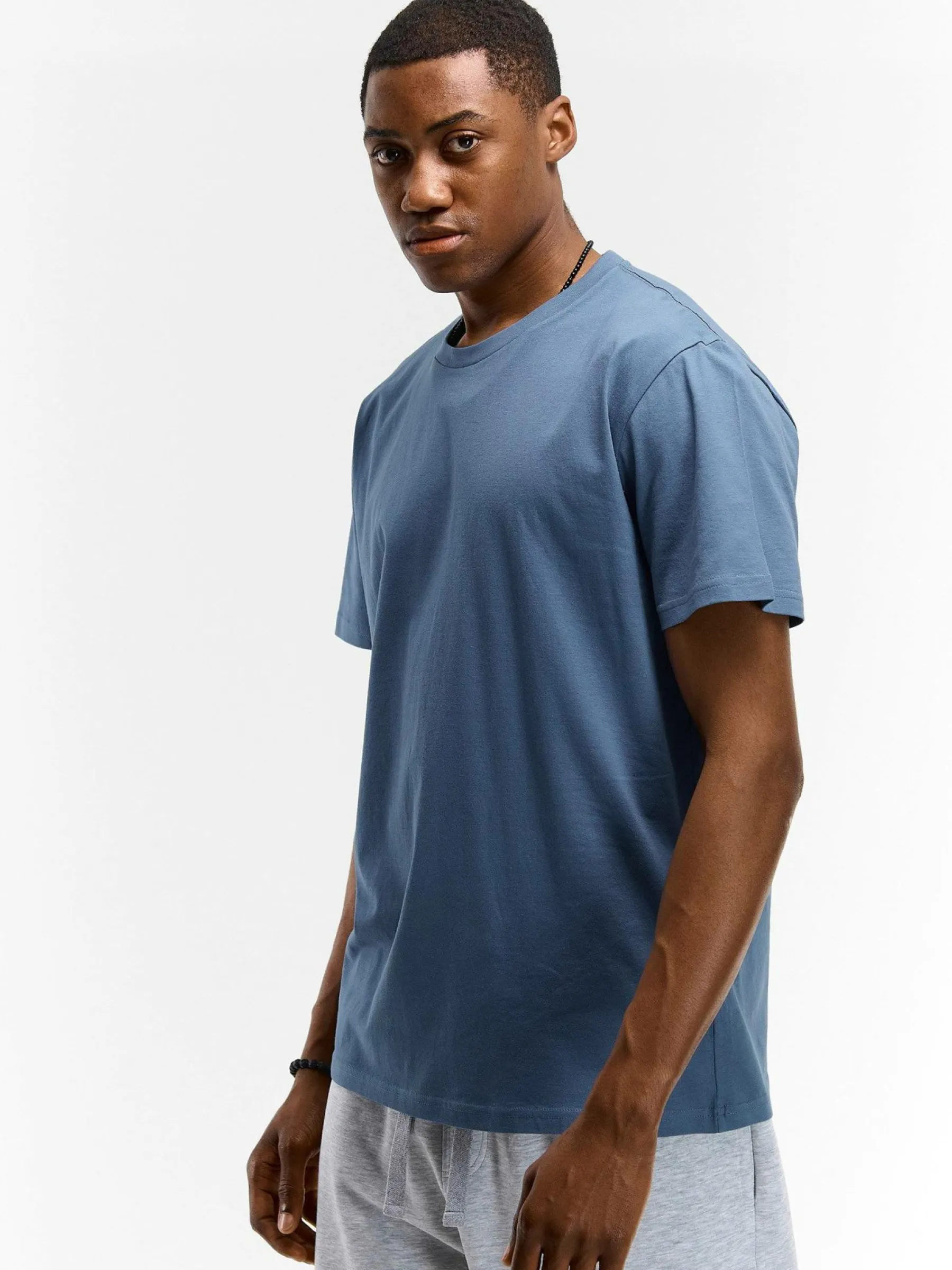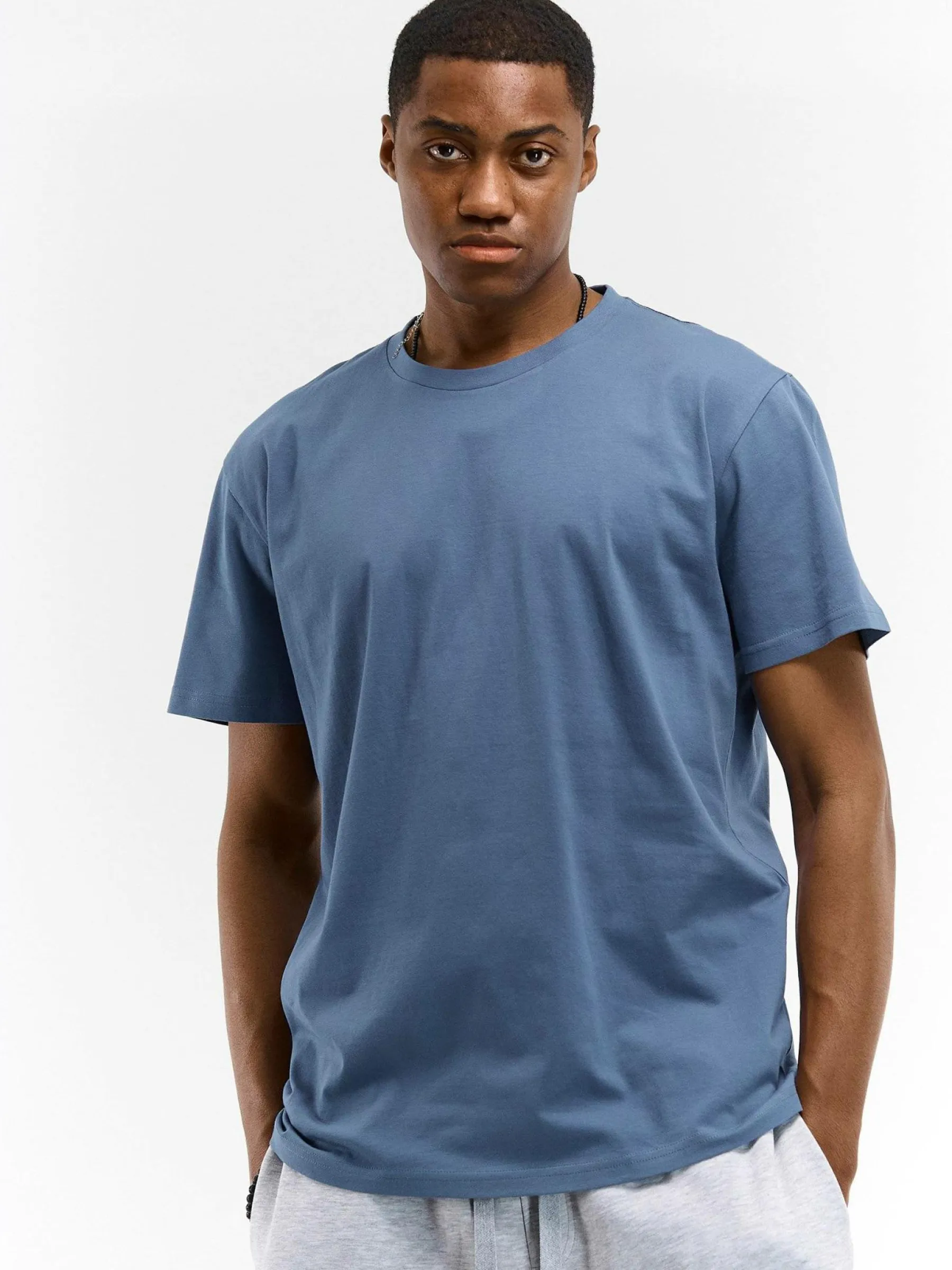 Kolor: niebieskiKrój: regularTyp: koszulkaRekaw: krótki rękawPattern style: pojedynczy kolorDetal: nad głowąMateria…