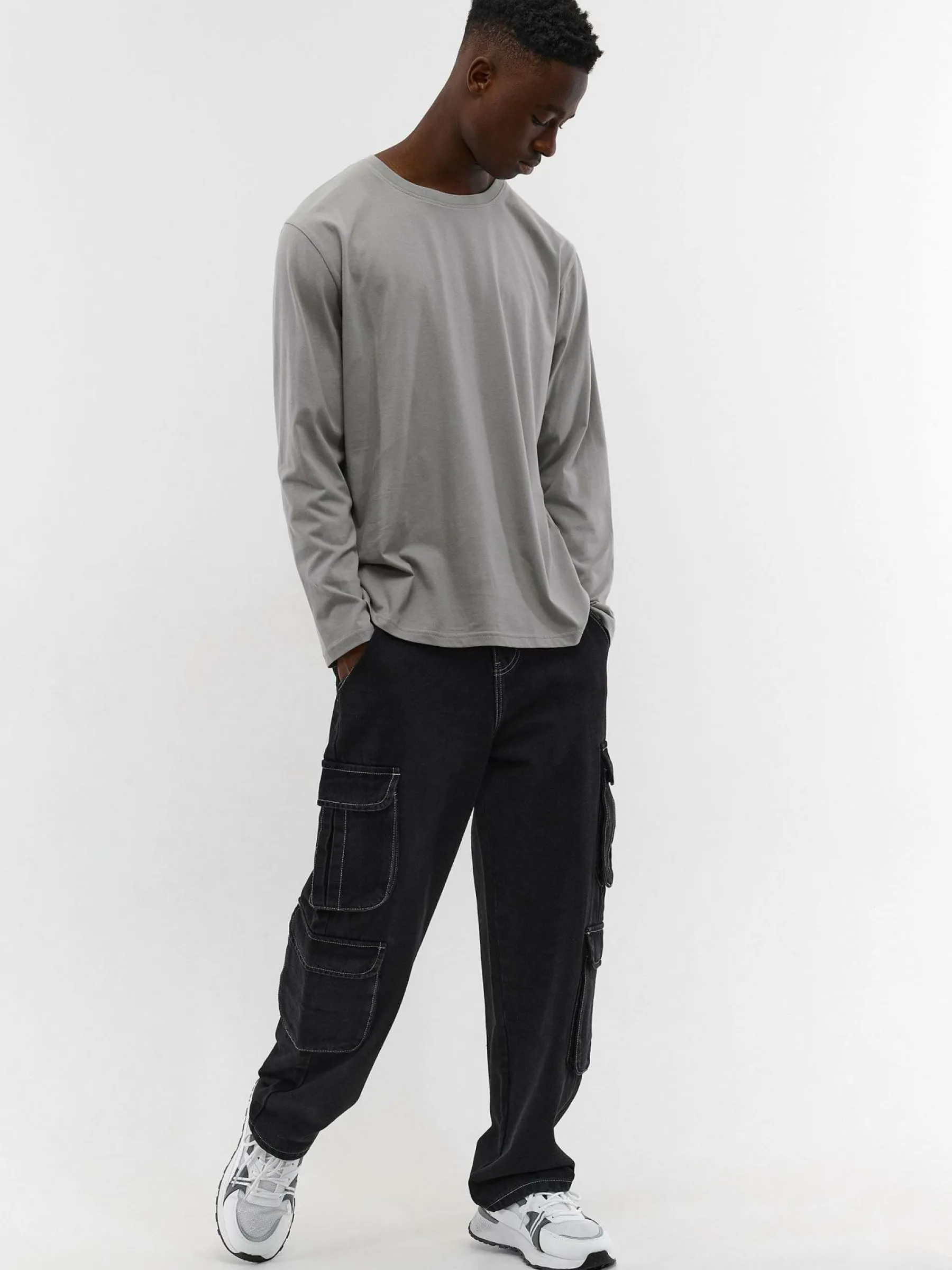 Kolor: szaryKrój: regularTyp: koszulkaRekaw: długi rękawPattern style: pojedynczy kolorDetal: nad głowąMateriał: b…