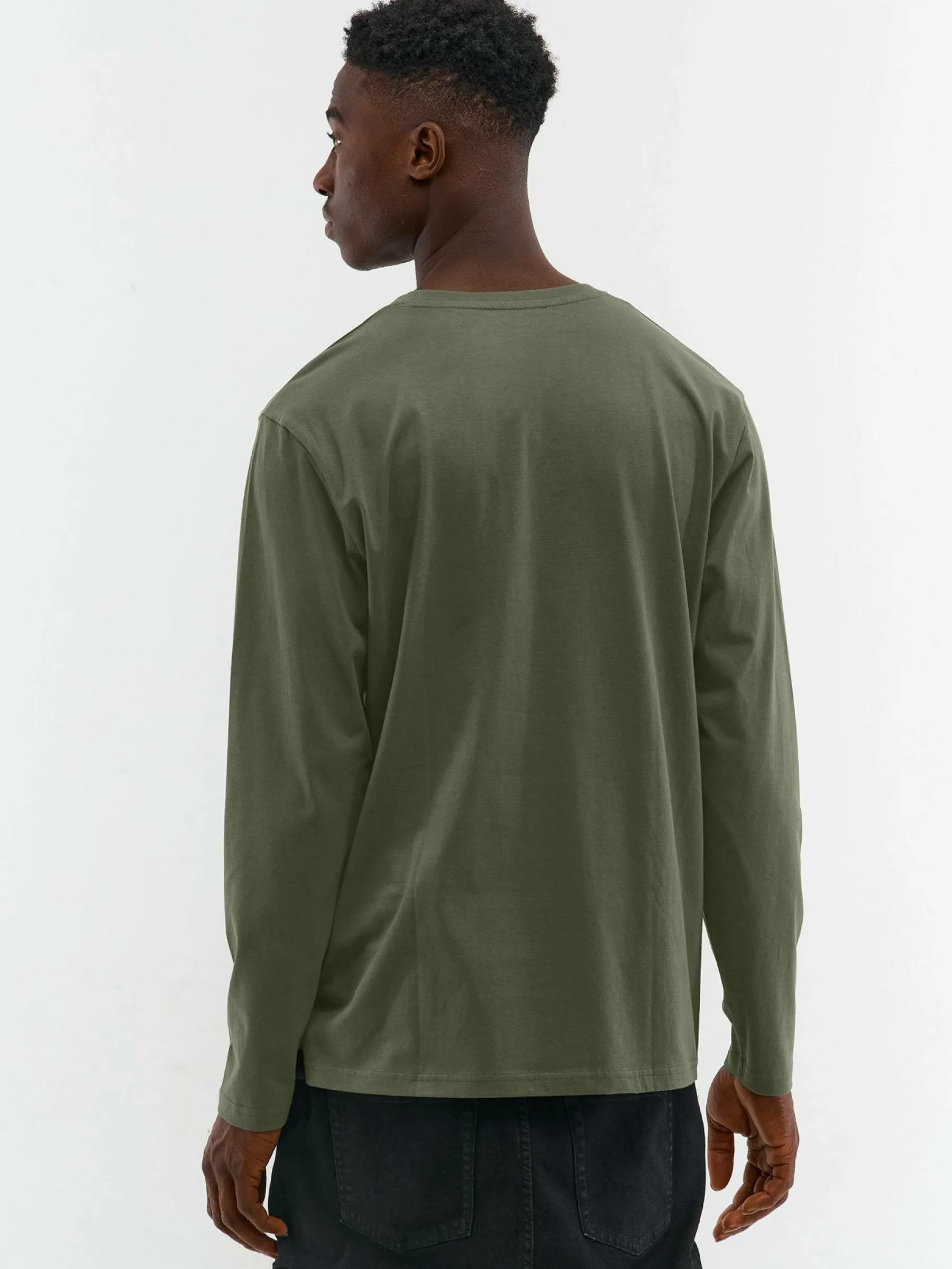 Kolor: khaki, zielonyKrój: regularTyp: koszulkaRekaw: długi rękawPattern style: pojedynczy kolorDetal: nad głowąMat…