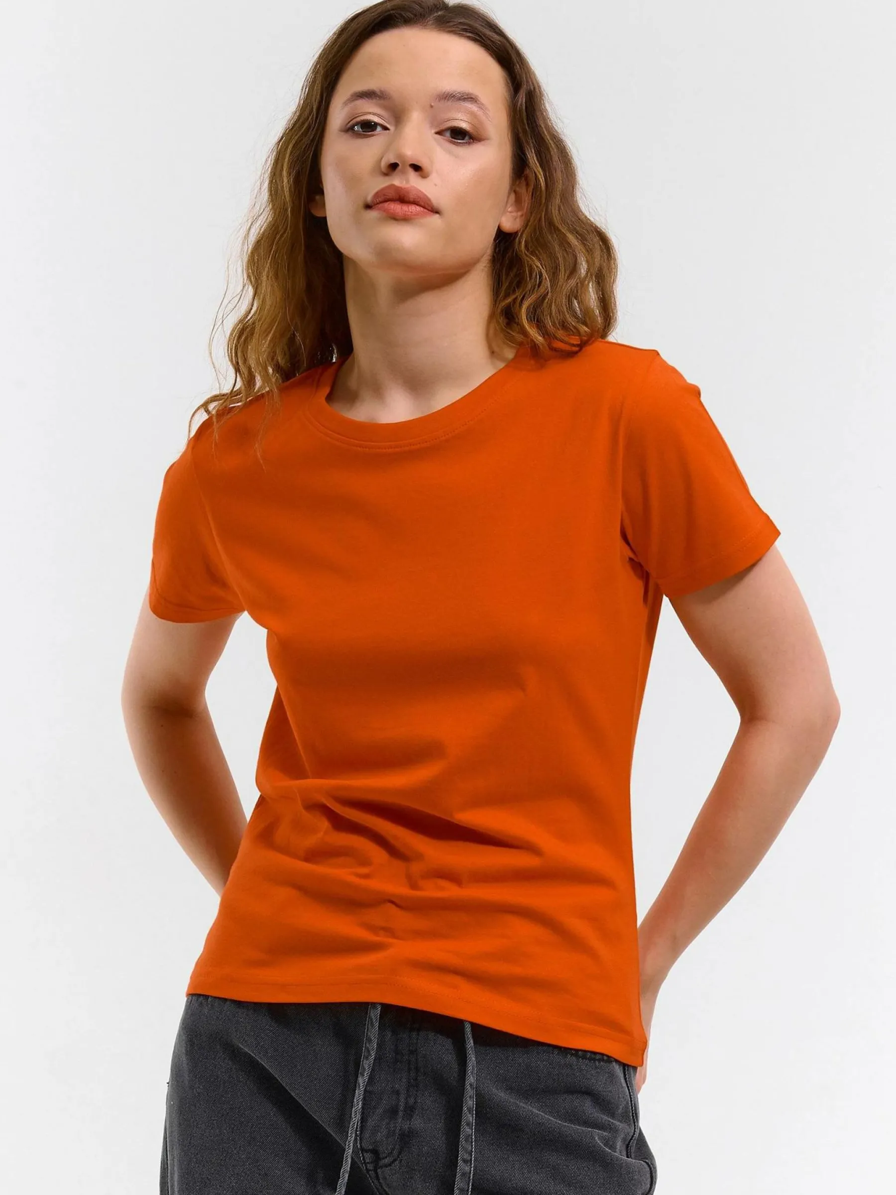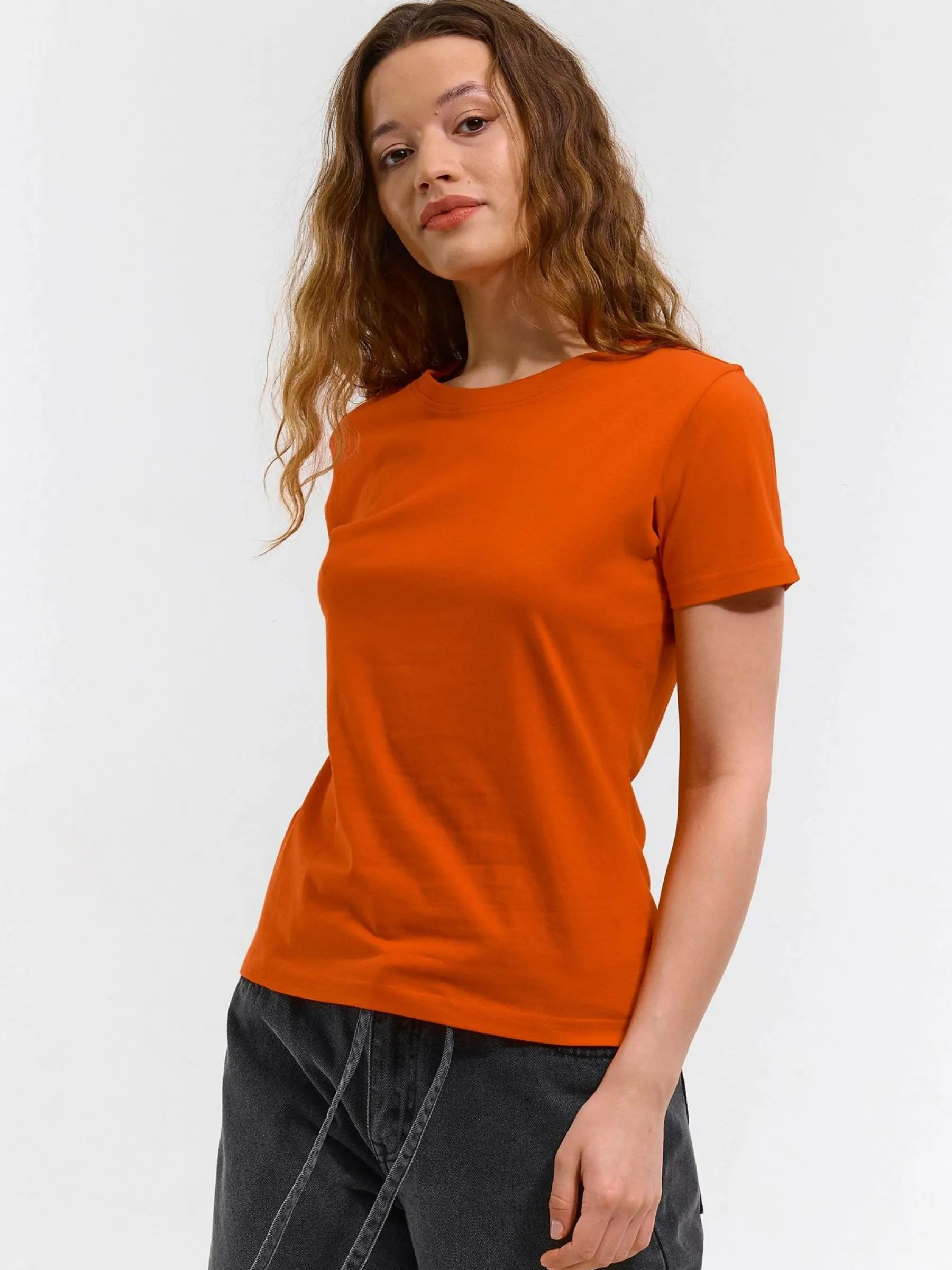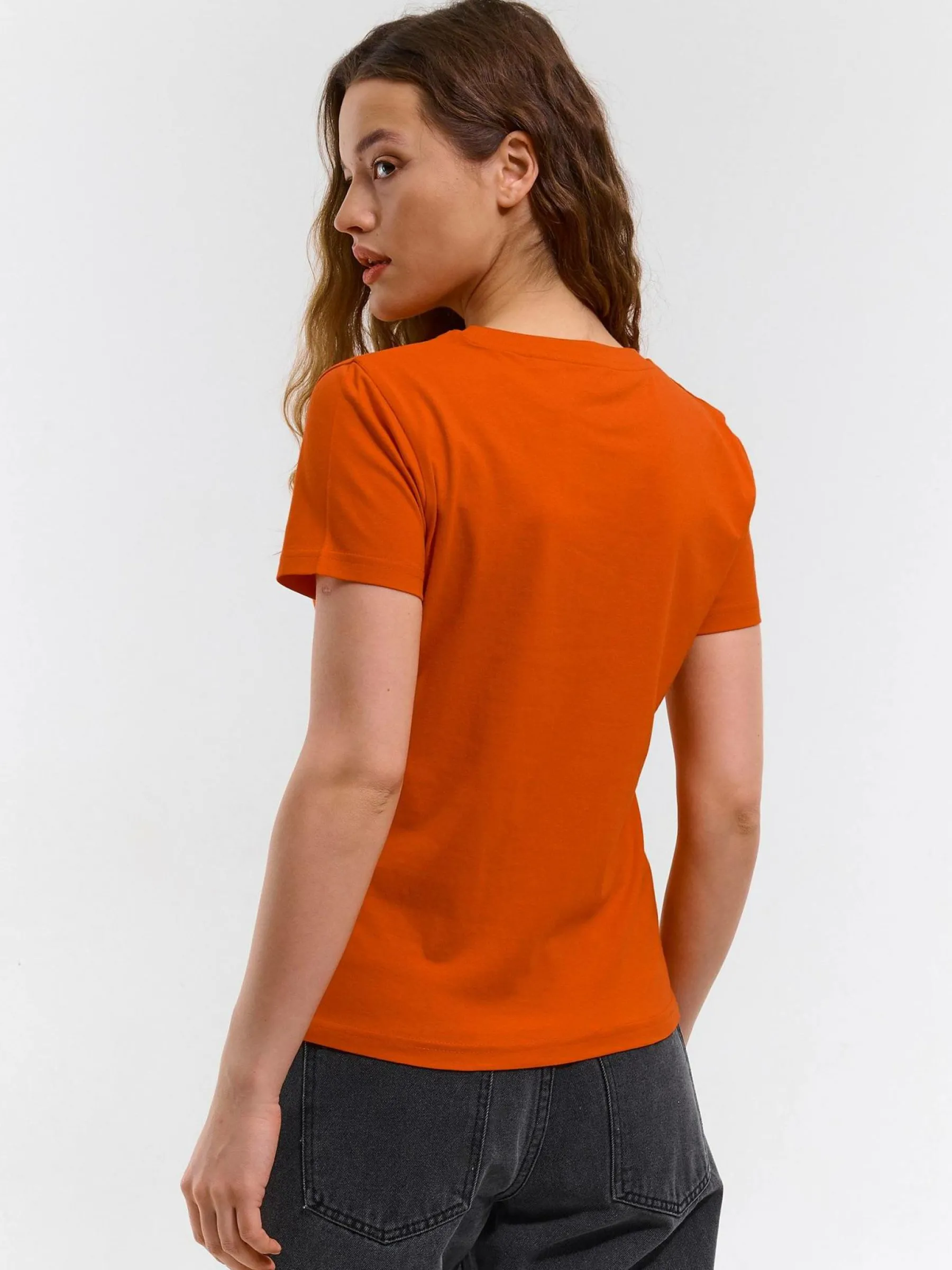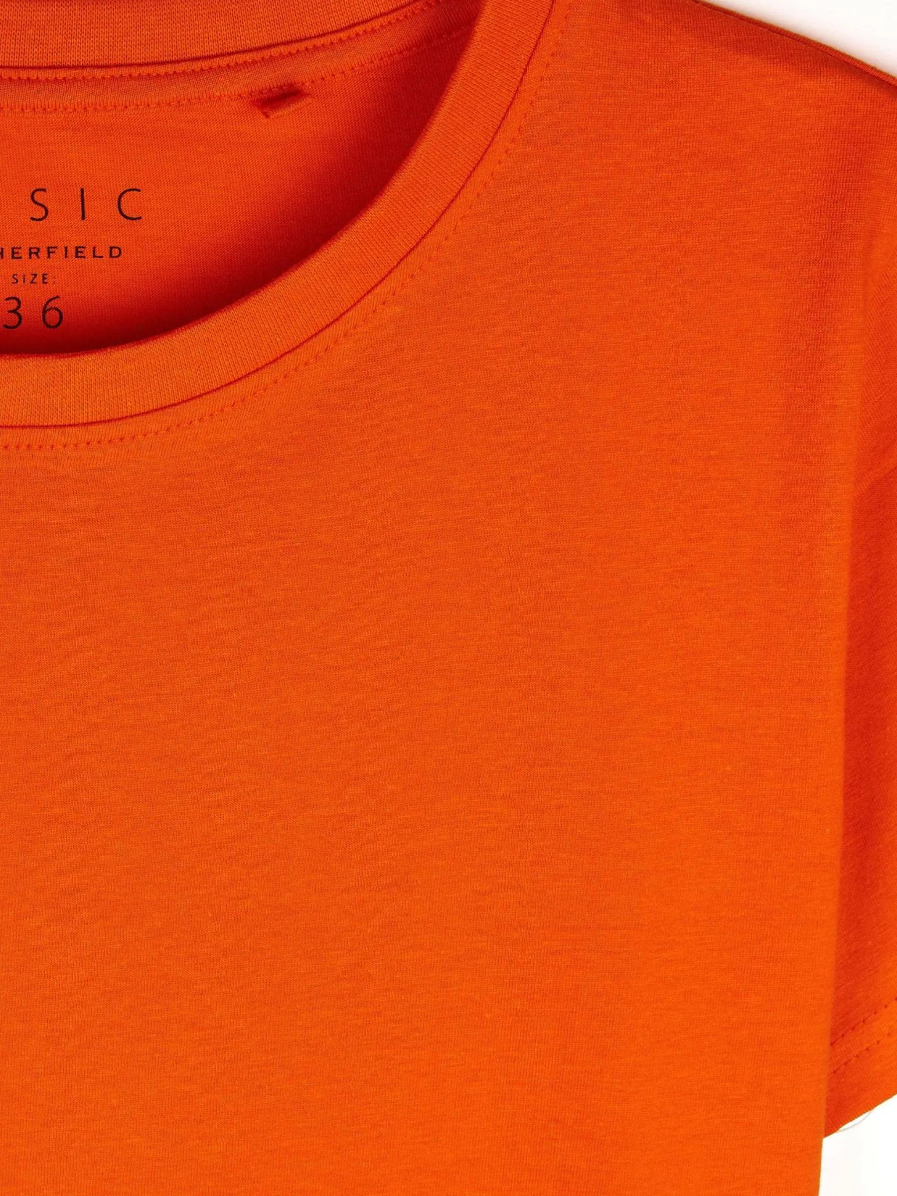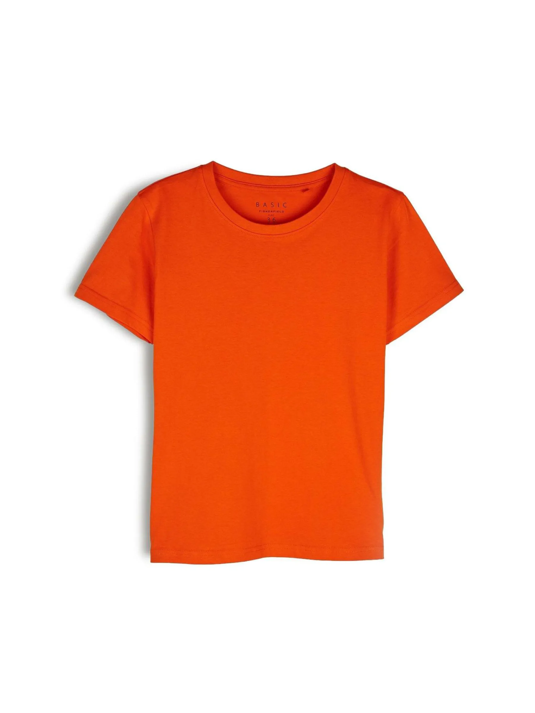 Kolor: pomarańczowyKrój: regularTyp: koszulkaRekaw: krótki rękawDługość: krótkiPattern style: pojedynczy kolorDe…