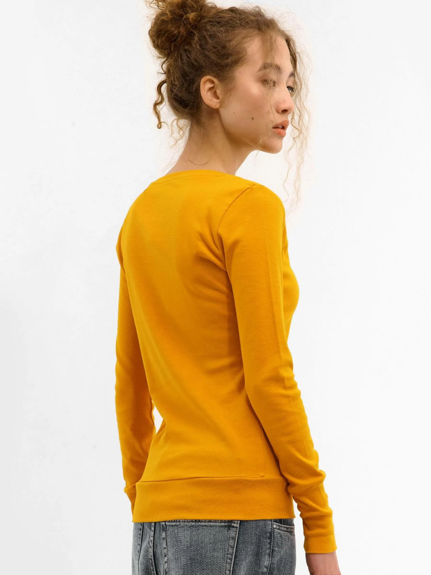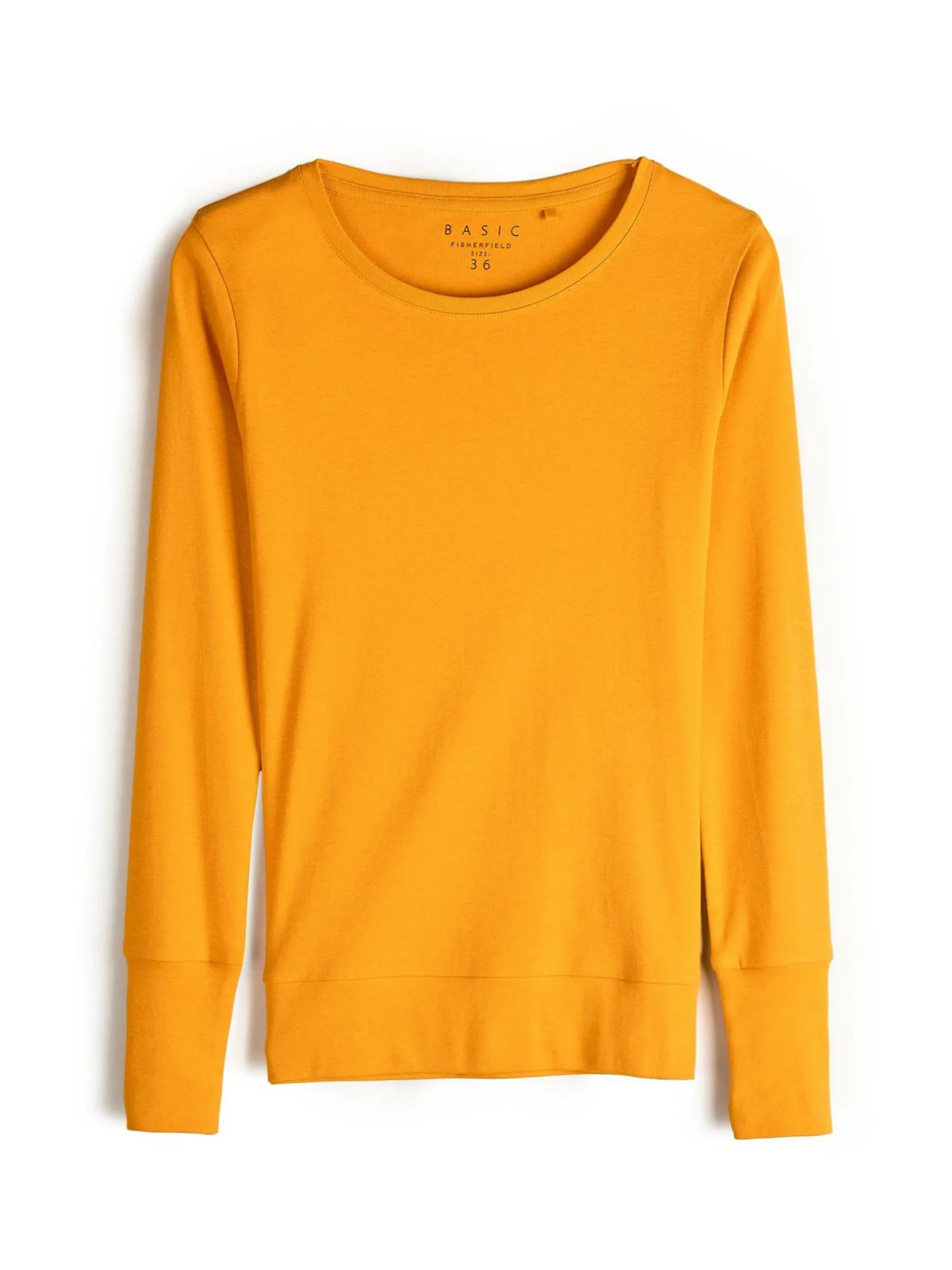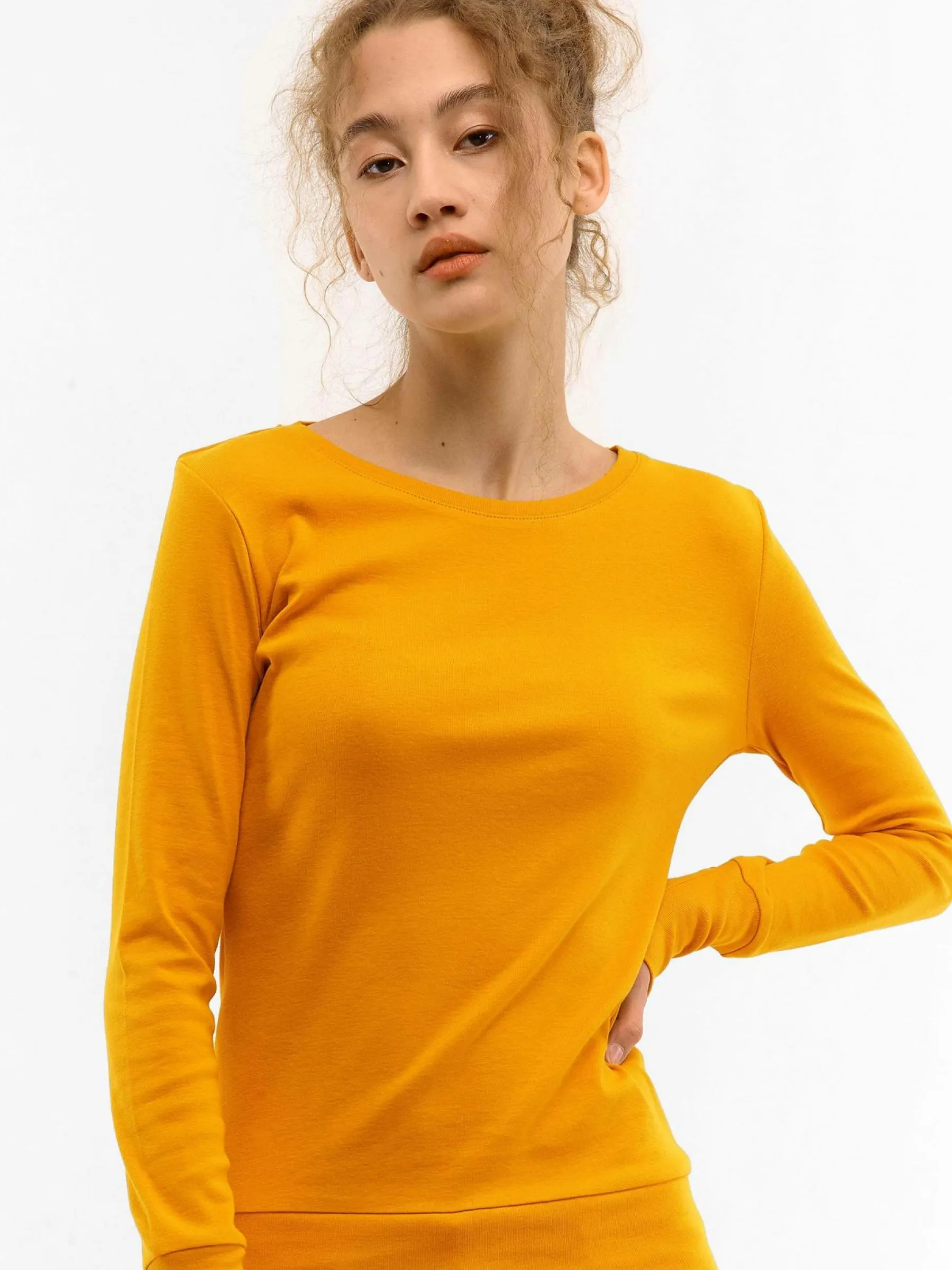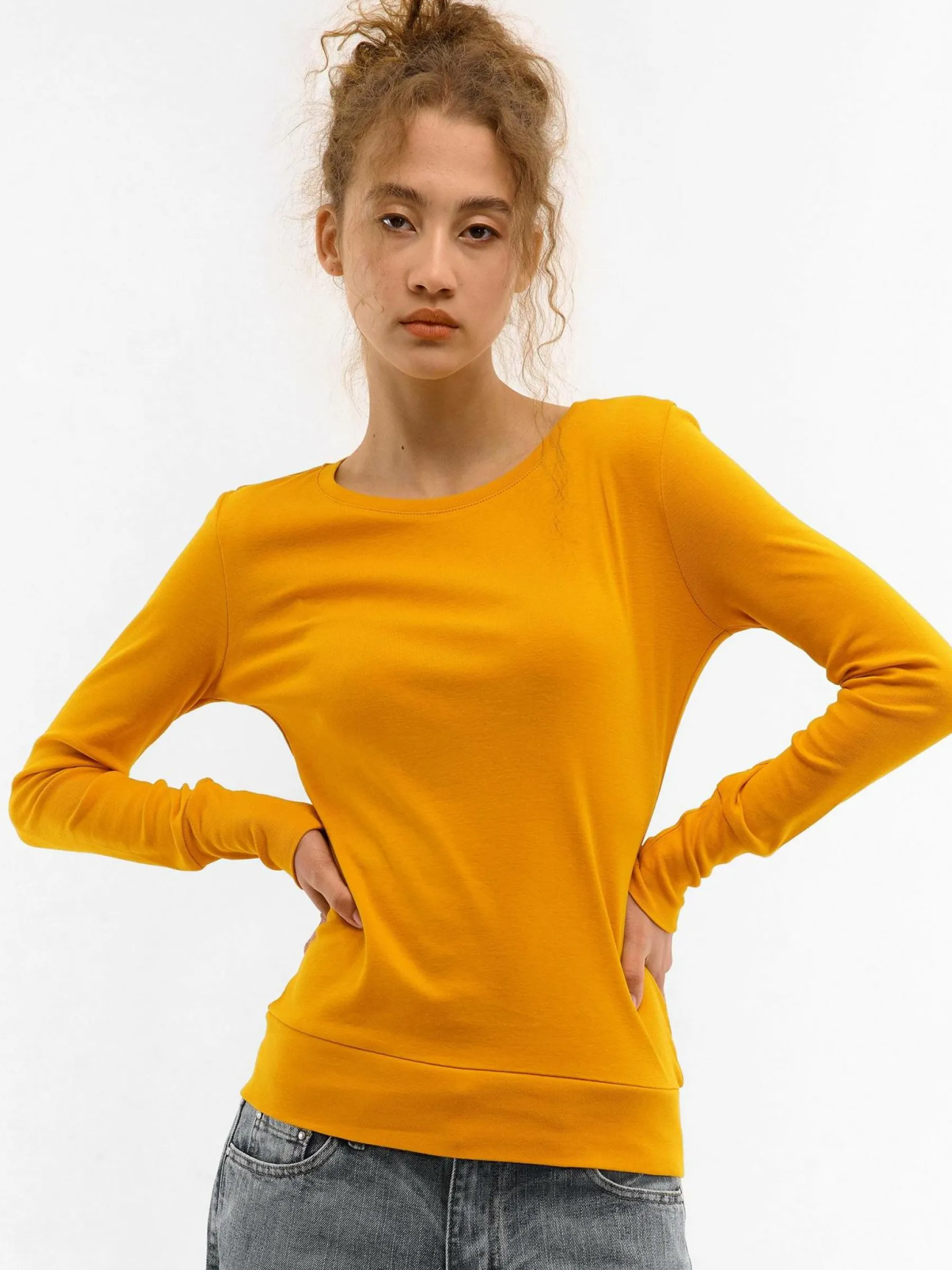Kolor: żółtyKrój: regularTyp: koszulkaRekaw: długi rękawDługość: krótkiPattern style: pojedynczy kolorDetal: n…