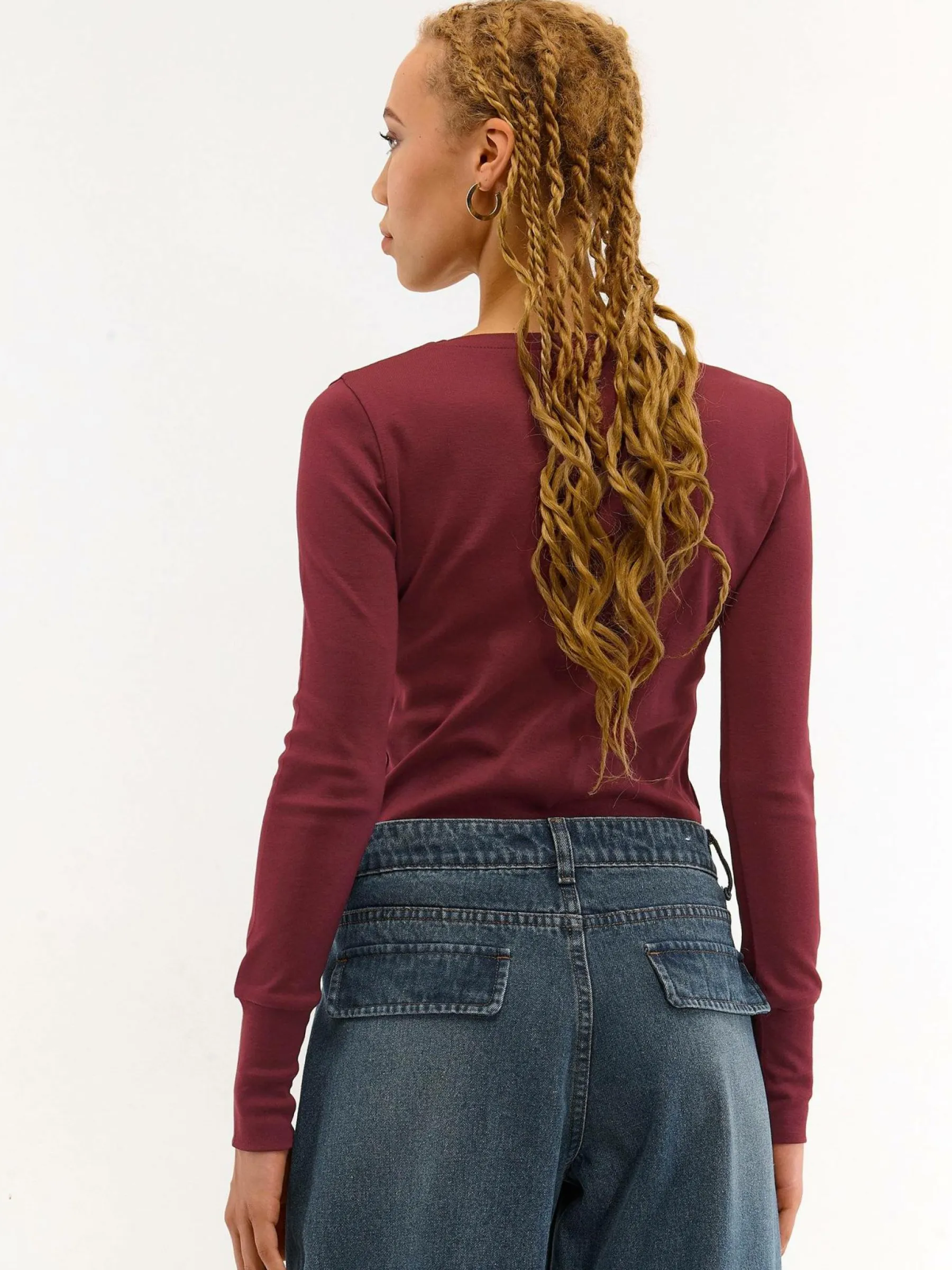 Zdjęcia z modelką mogą nie odpowiadać rzeczywistemu kolorowi produktu.Kolor: burgundyKrój: regularTyp: koszulkaReka…