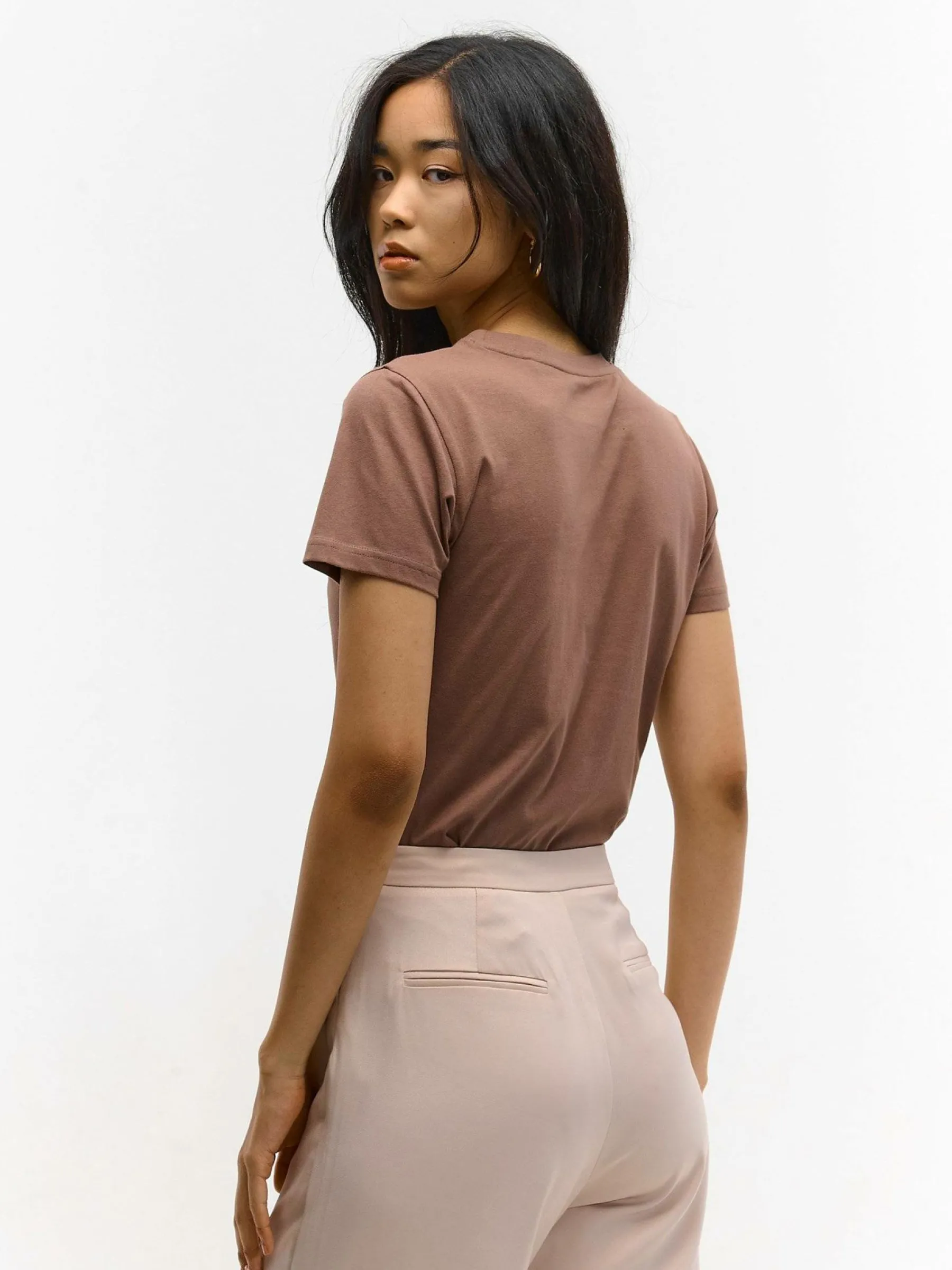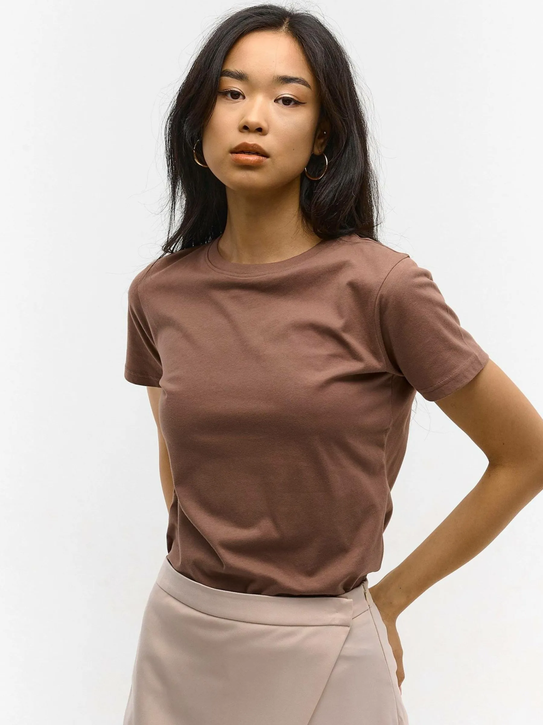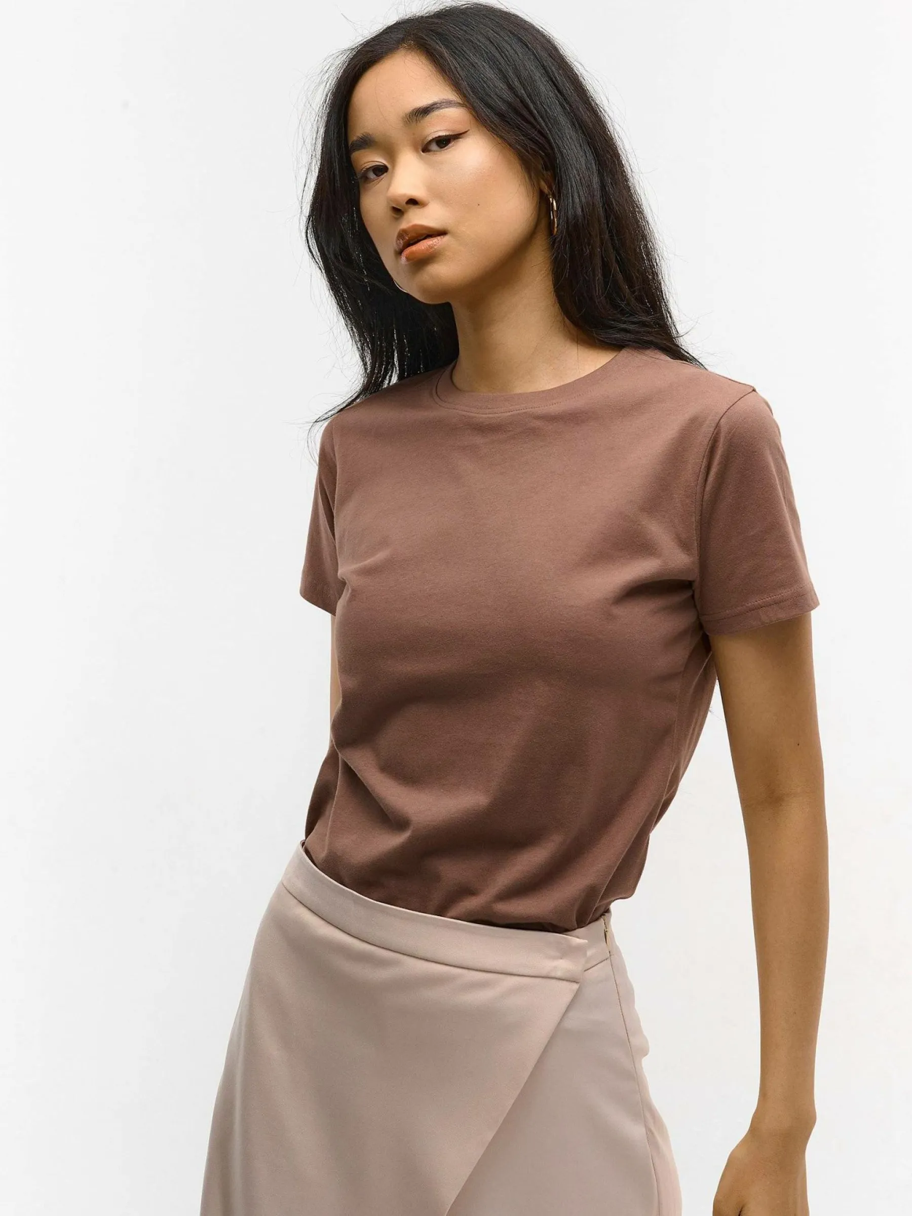 Kolor: brązowyKrój: podstawowyTyp: koszulkaRekaw: krótki rękawDługość: krótkiPattern style: pojedynczy kolorDeta…