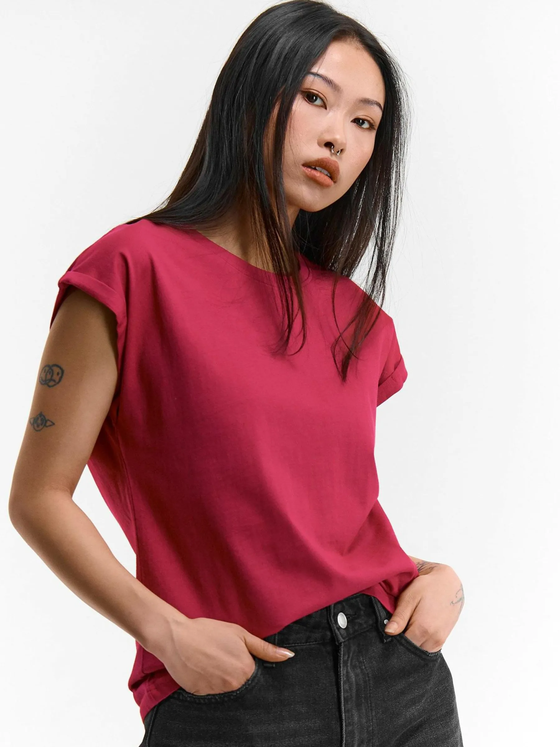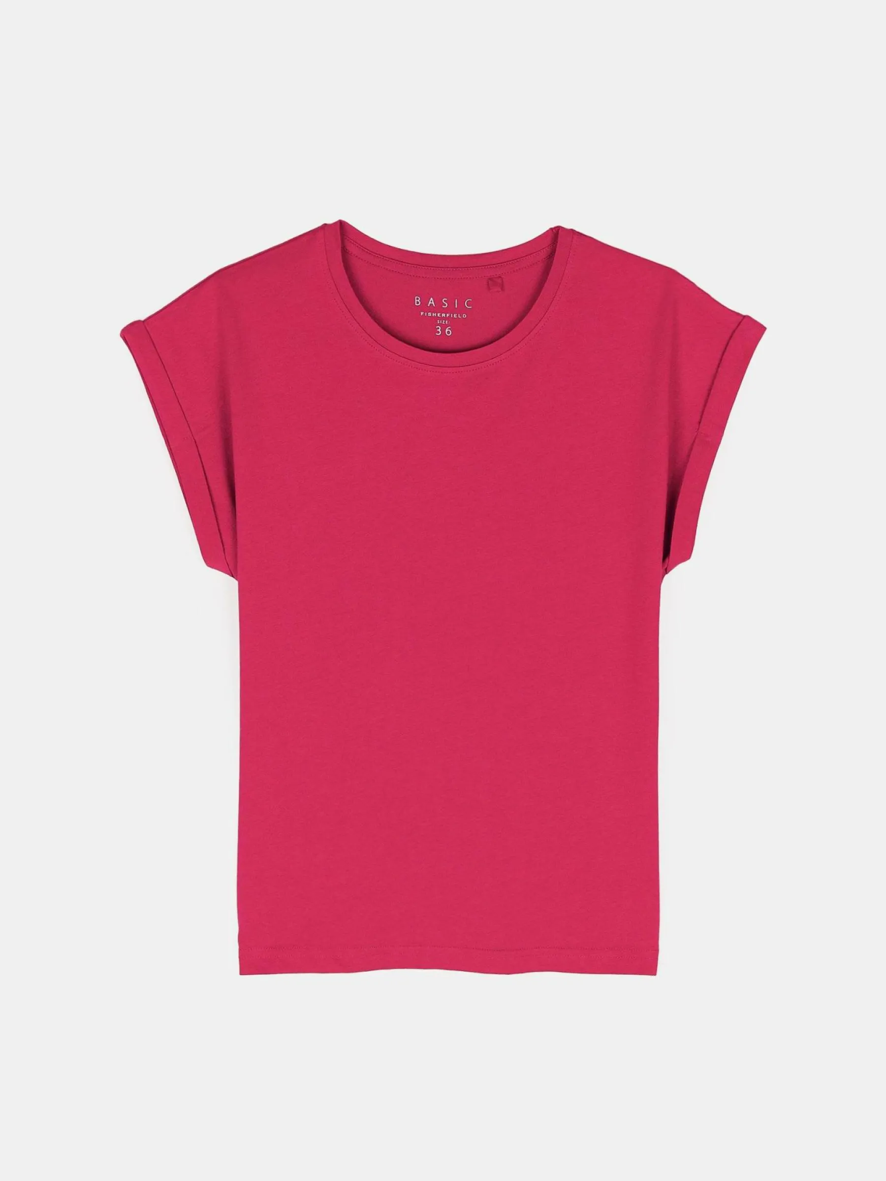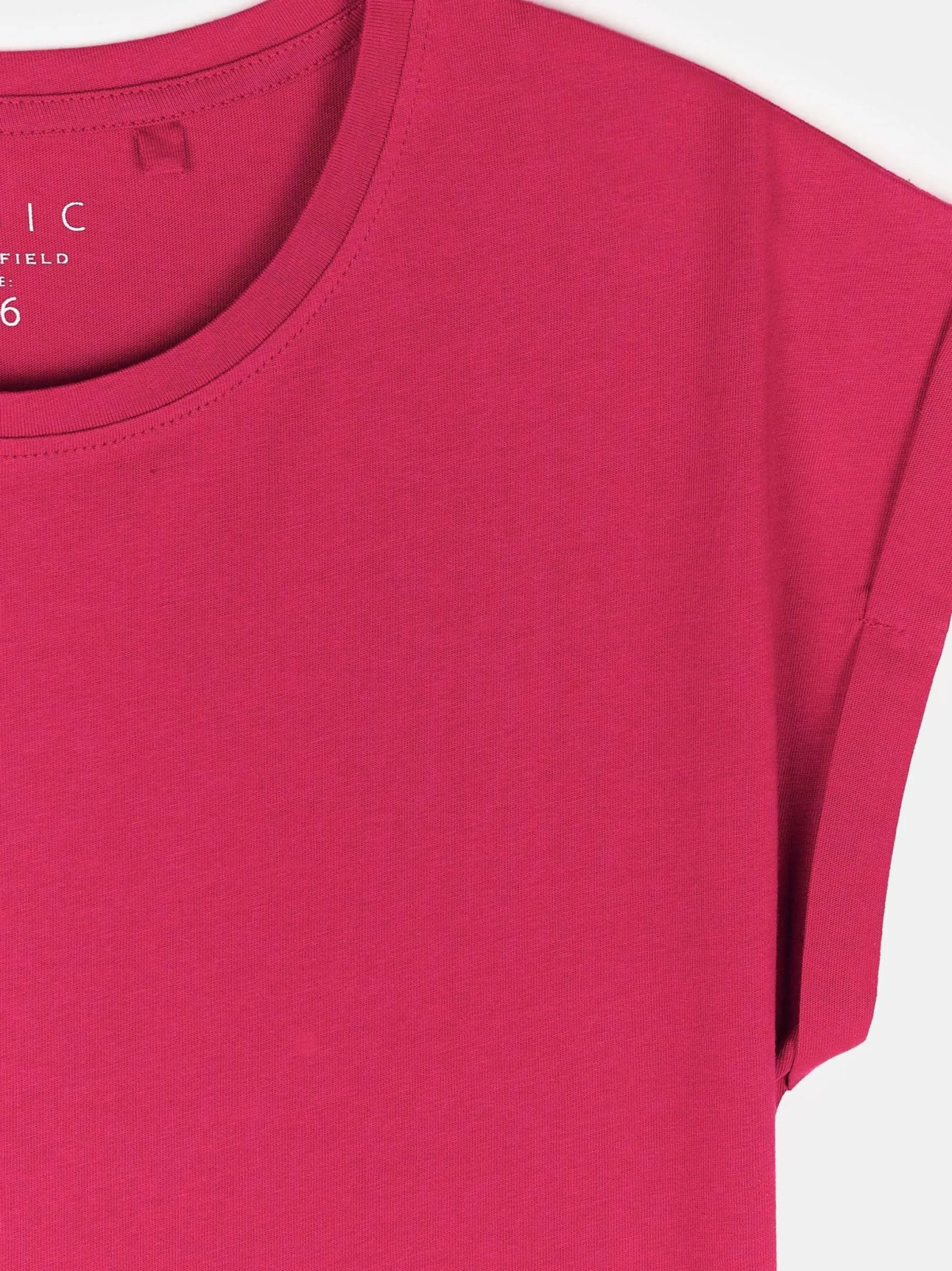 Kolor: różowyKrój: regularTyp: koszulkaRekaw: krótki rękawDługość: krótkiPattern style: pojedynczy kolorDetal: …