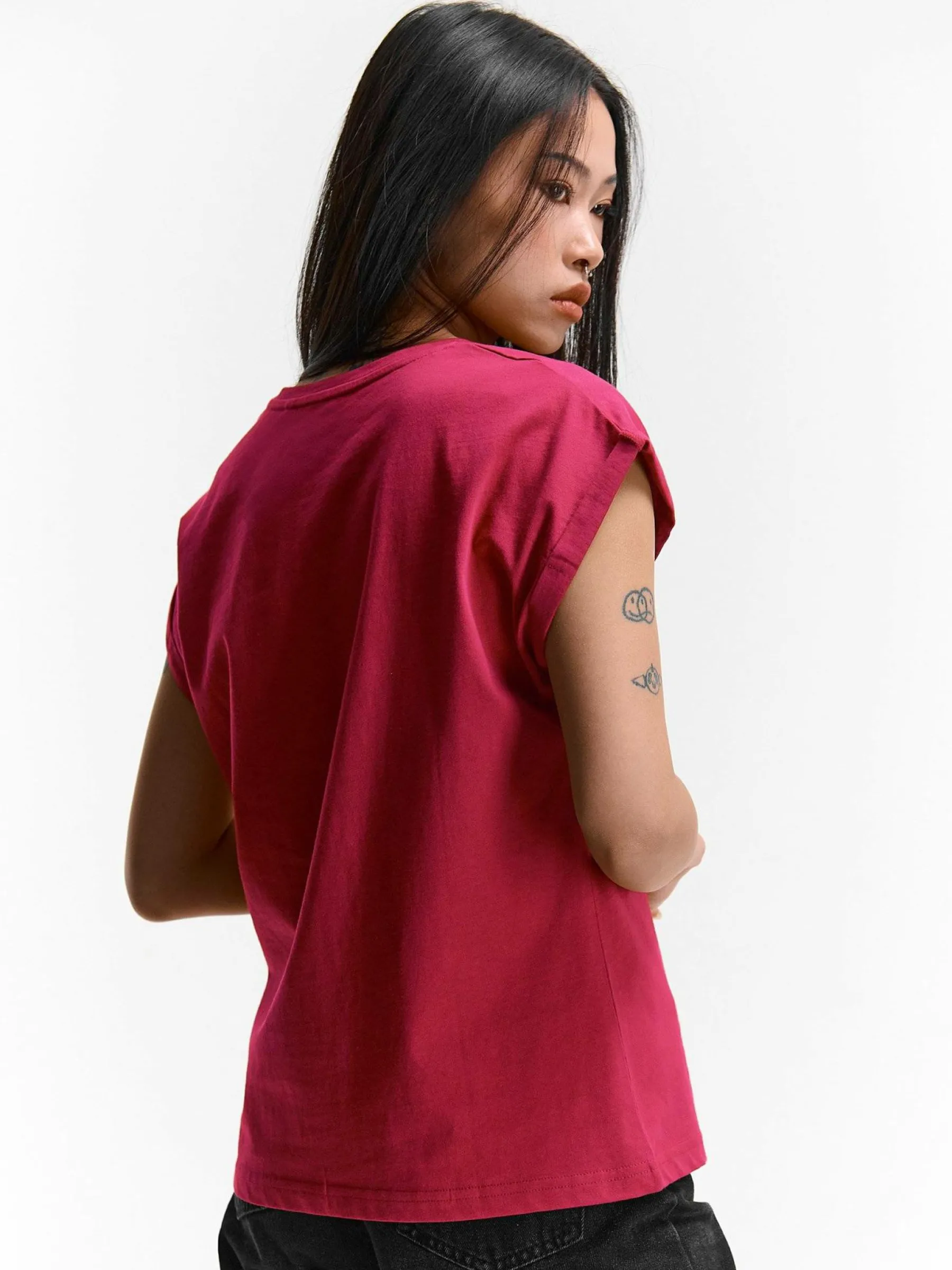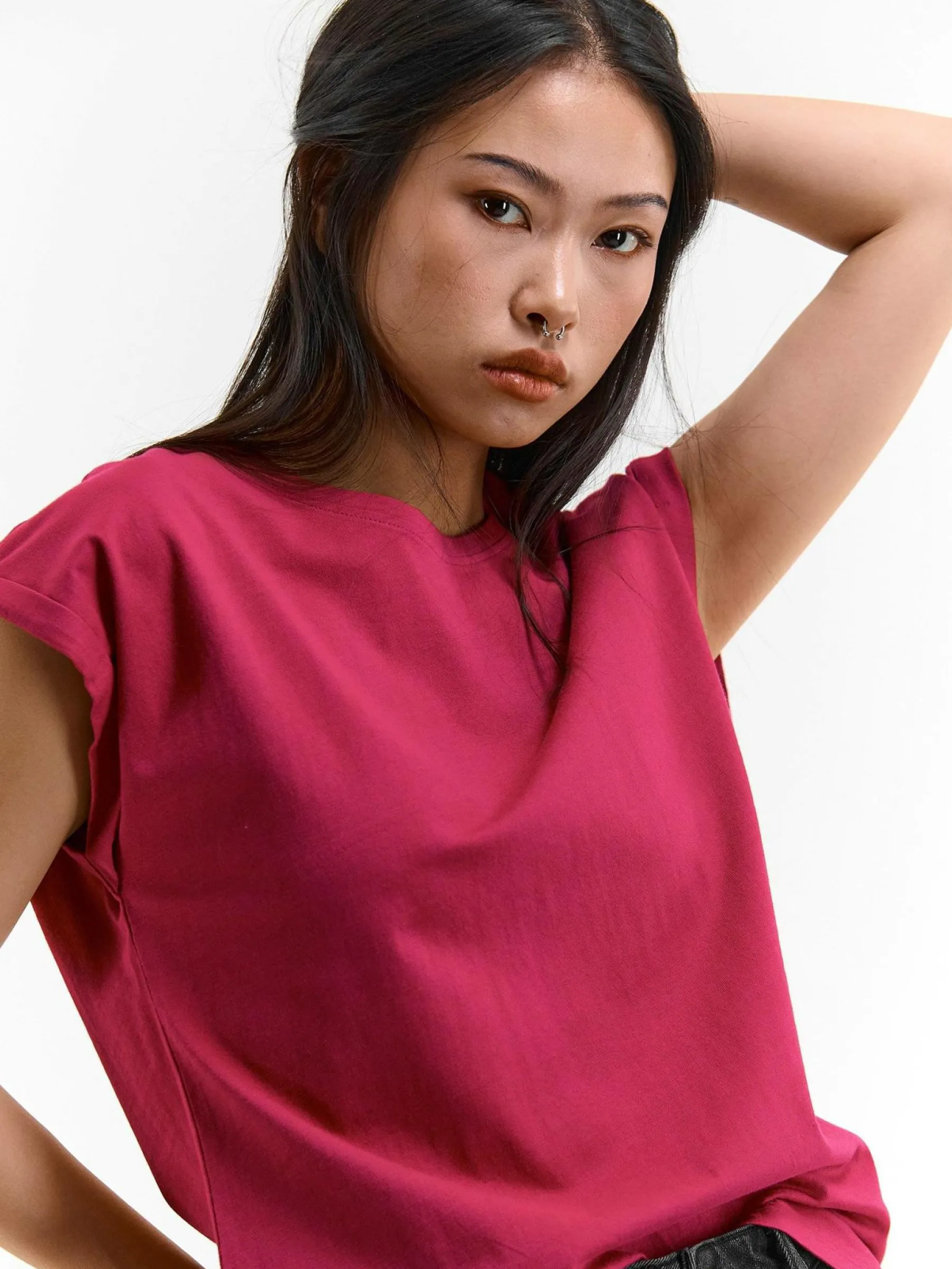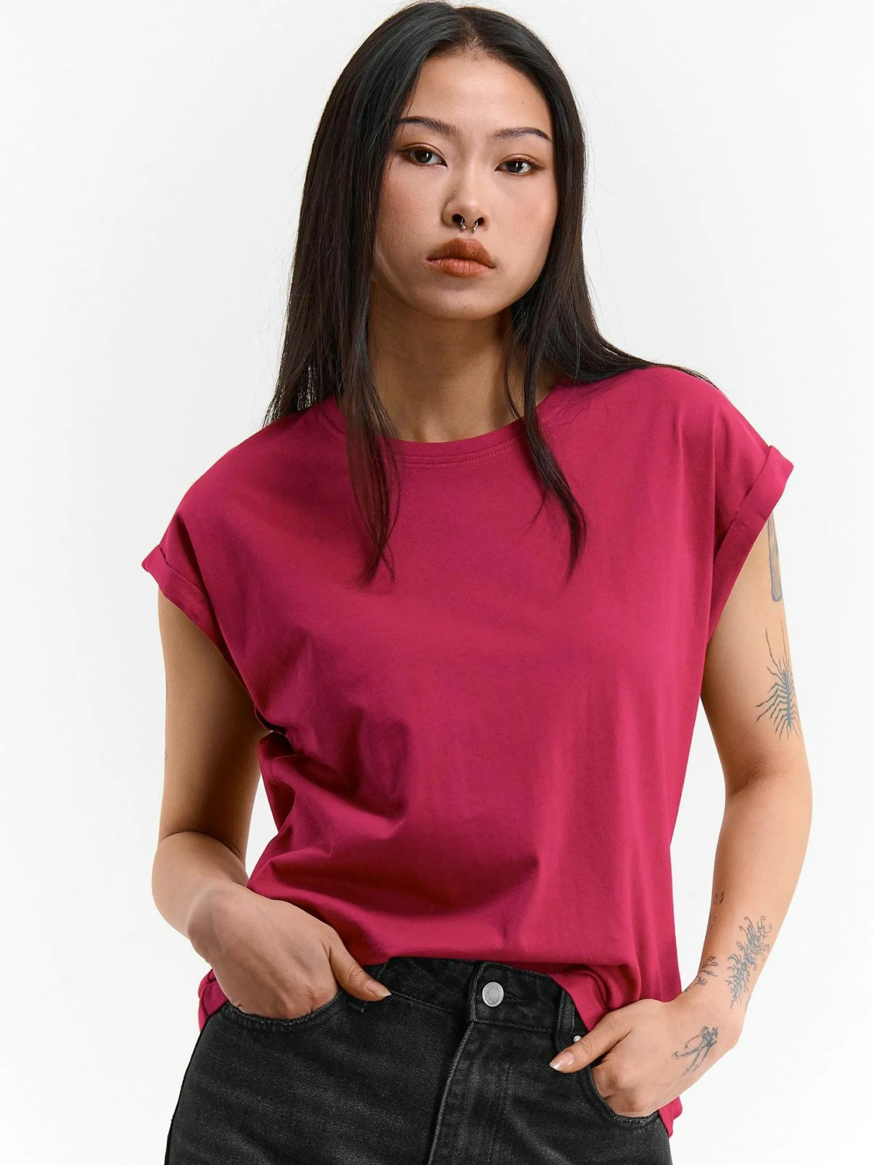 Kolor: różowyKrój: regularTyp: koszulkaRekaw: krótki rękawDługość: krótkiPattern style: pojedynczy kolorDetal: …