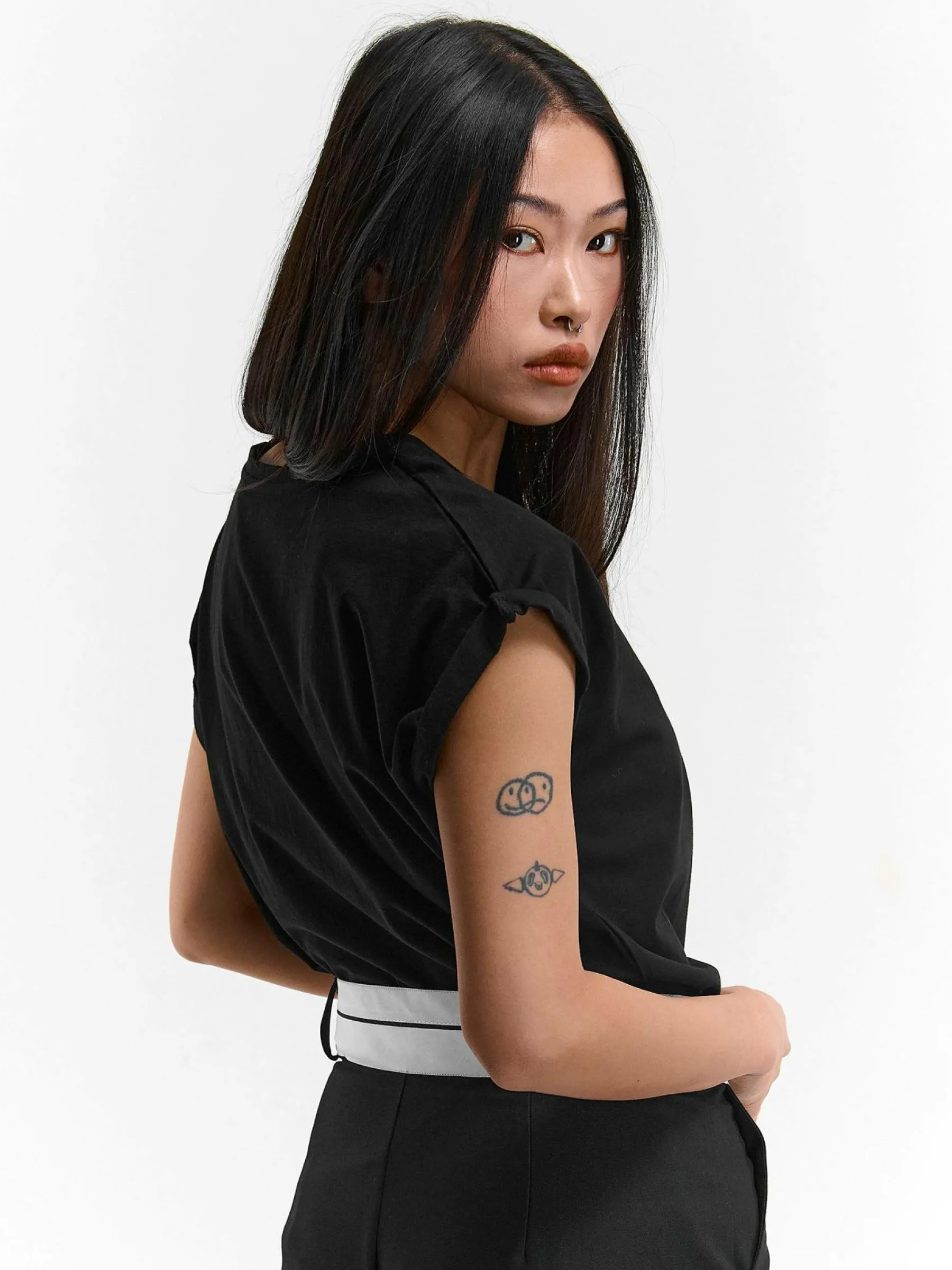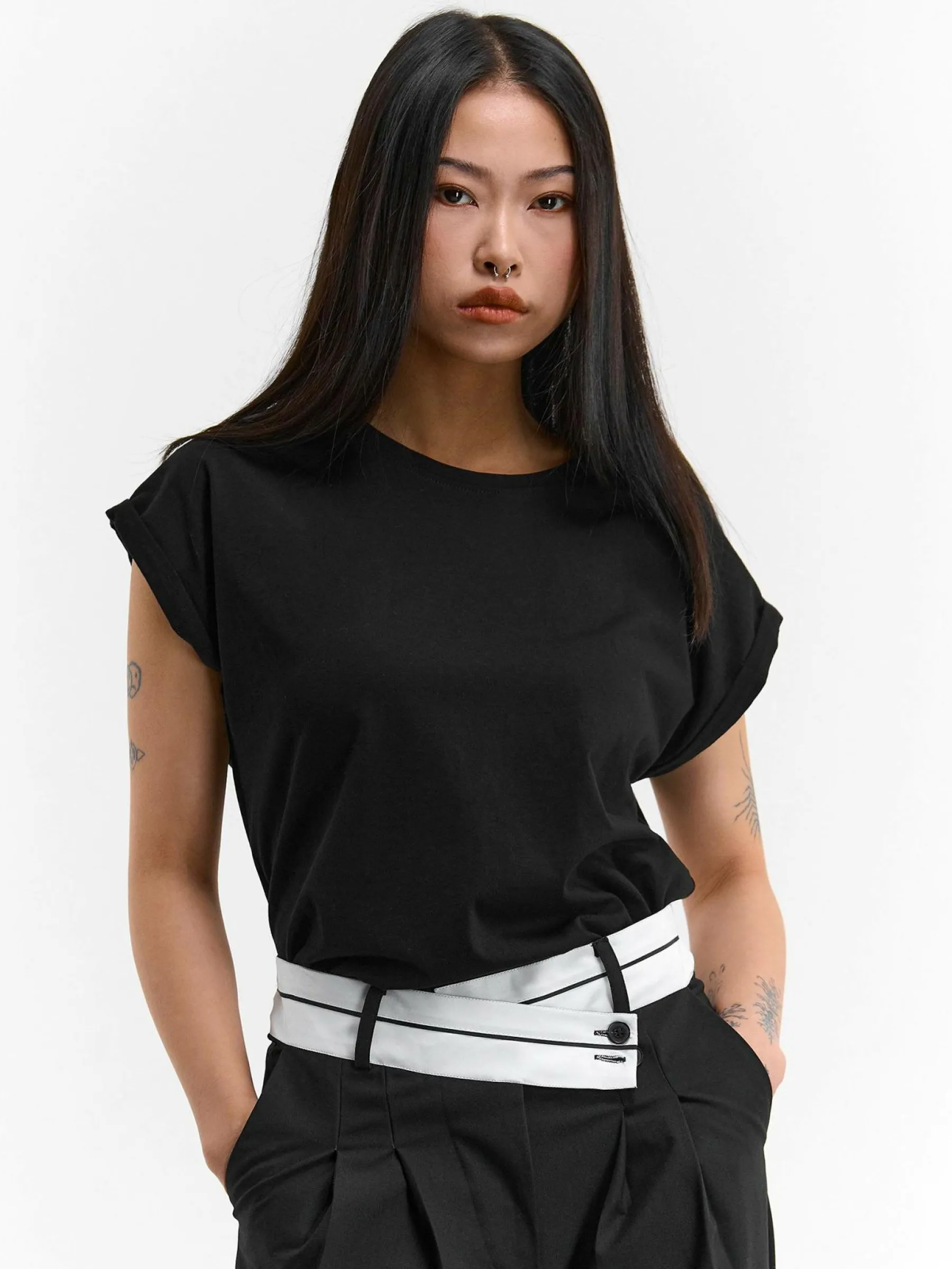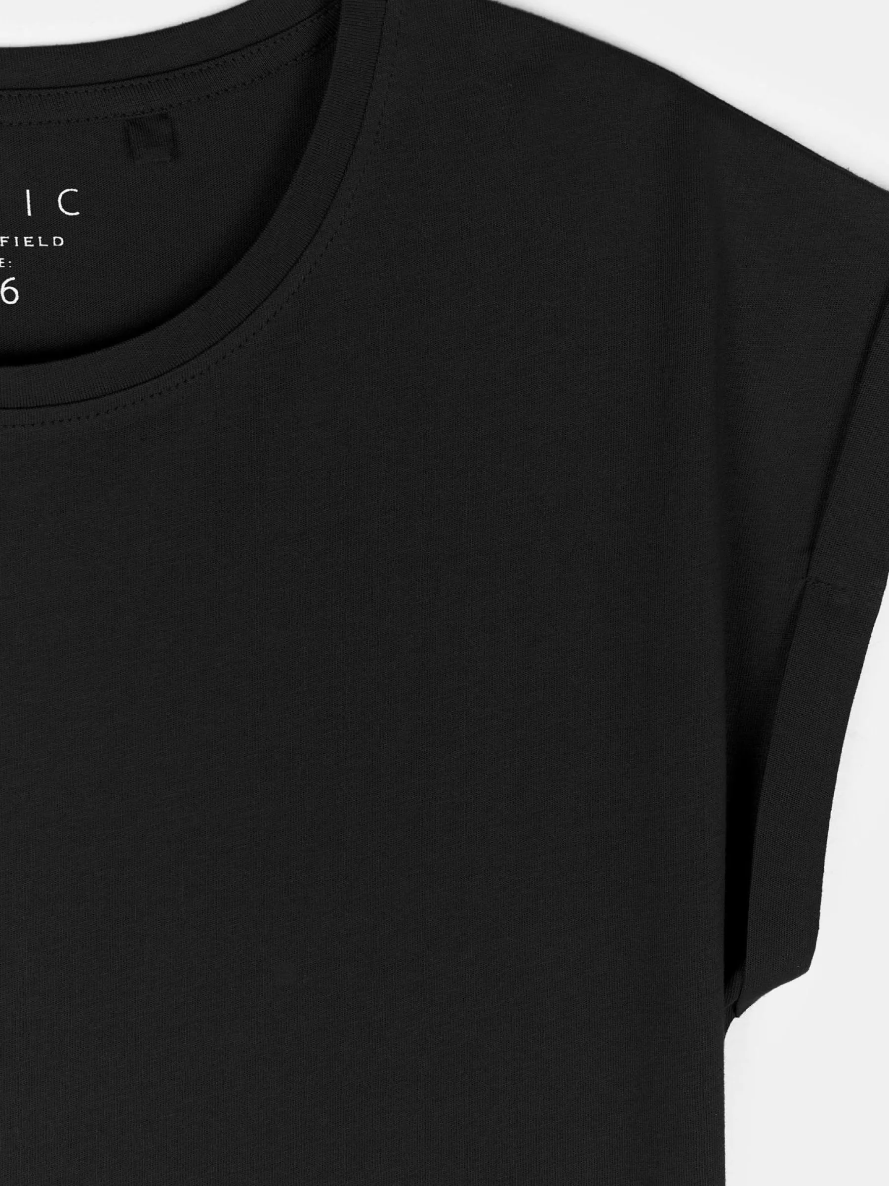 Kolor: czarnyKrój: regularTyp: koszulkaRekaw: krótki rękawDługość: krótkiPattern style: pojedynczy kolorDetal: na…