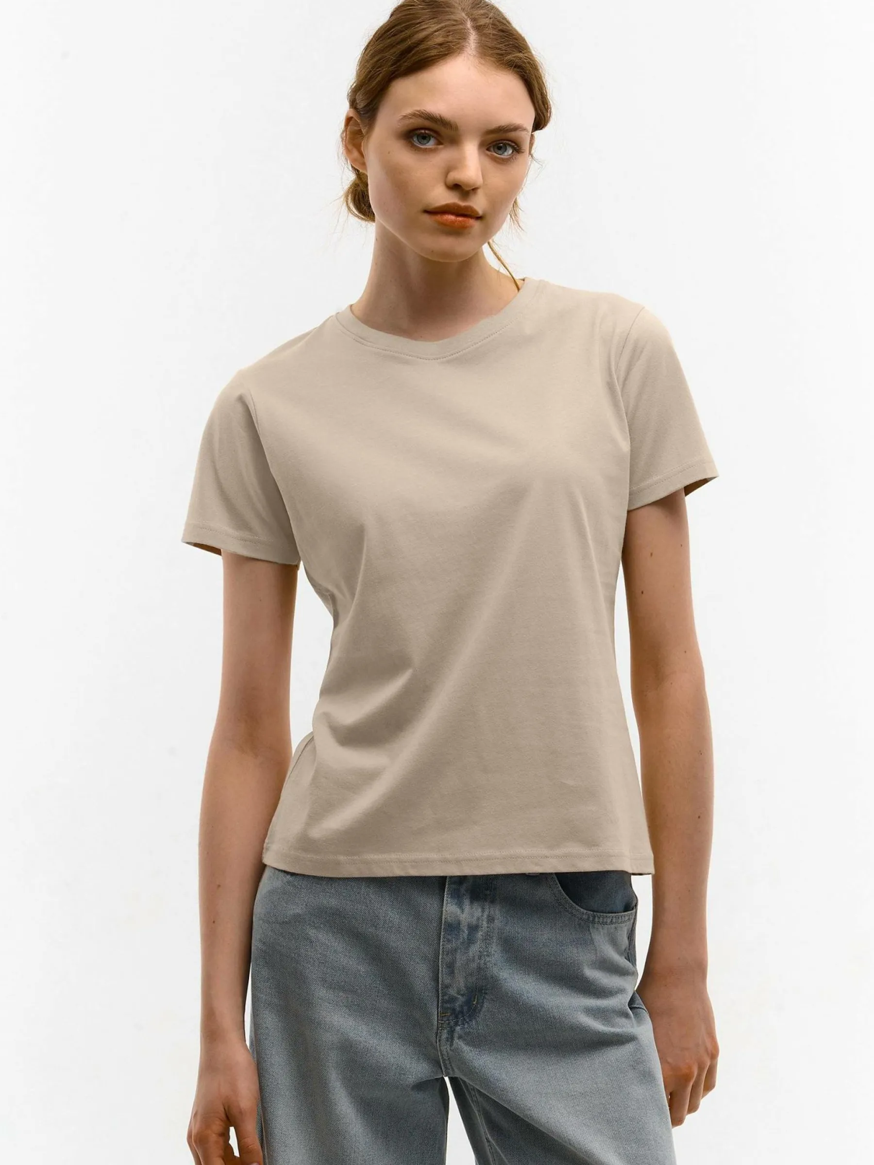 Zdjęcia z modelką mogą nie odpowiadać rzeczywistemu kolorowi produktu.Kolor: beżowyKrój: podstawowyTyp: koszulkaRe…