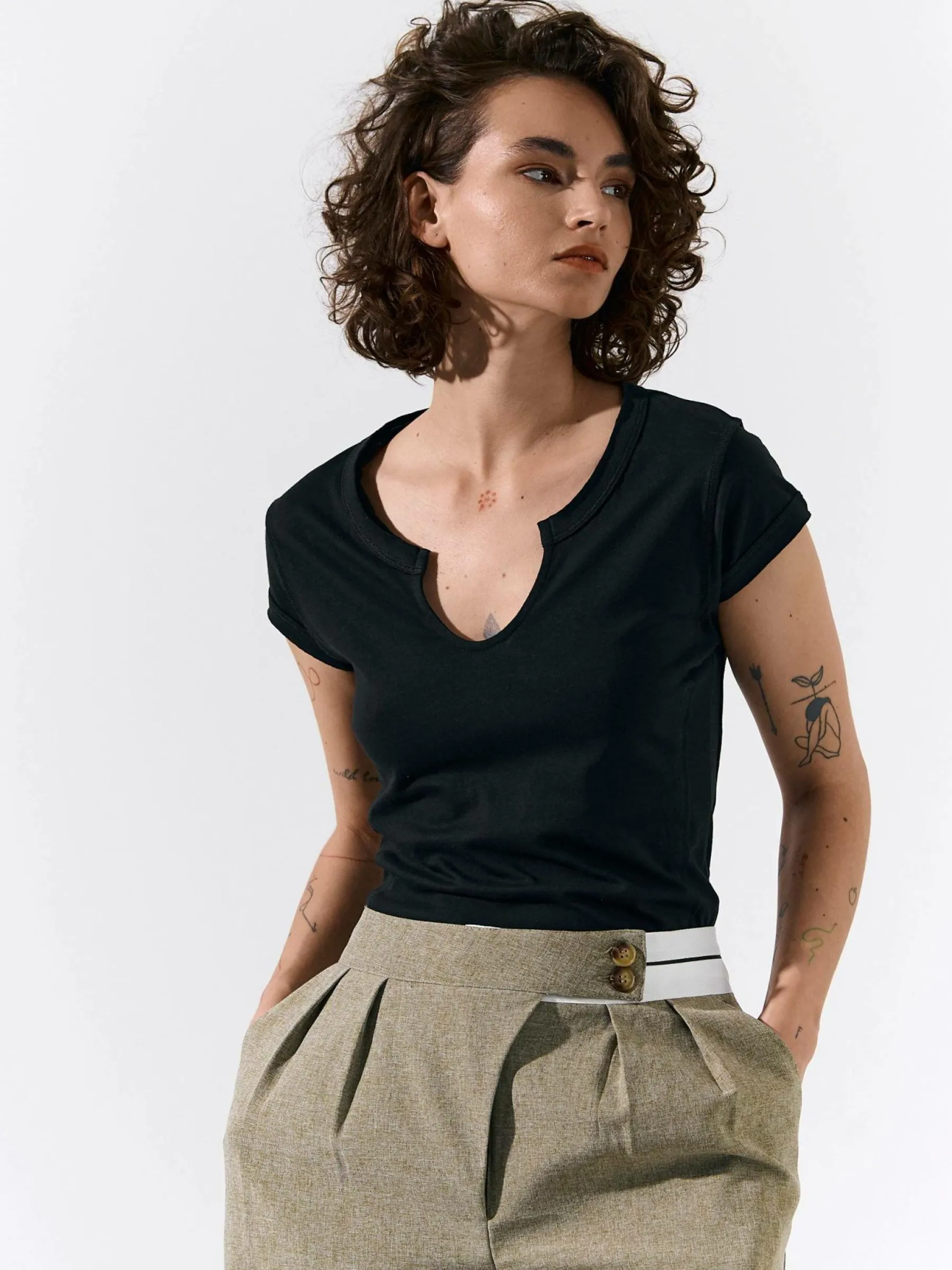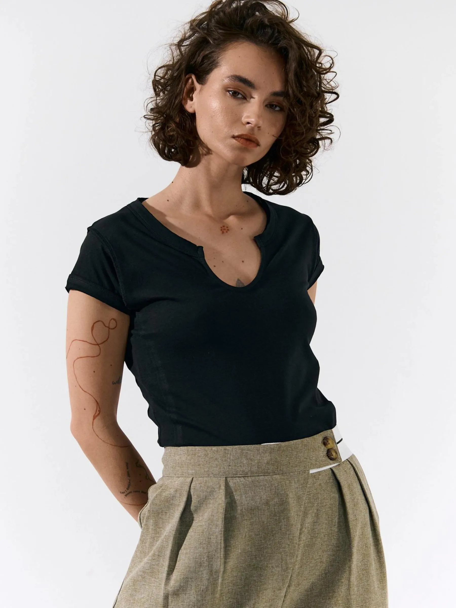 Kolor: czarnyKrój: regularTyp: koszulkaRekaw: krótki rękawDługość: krótkiPattern style: pojedynczy kolorDetal: na…