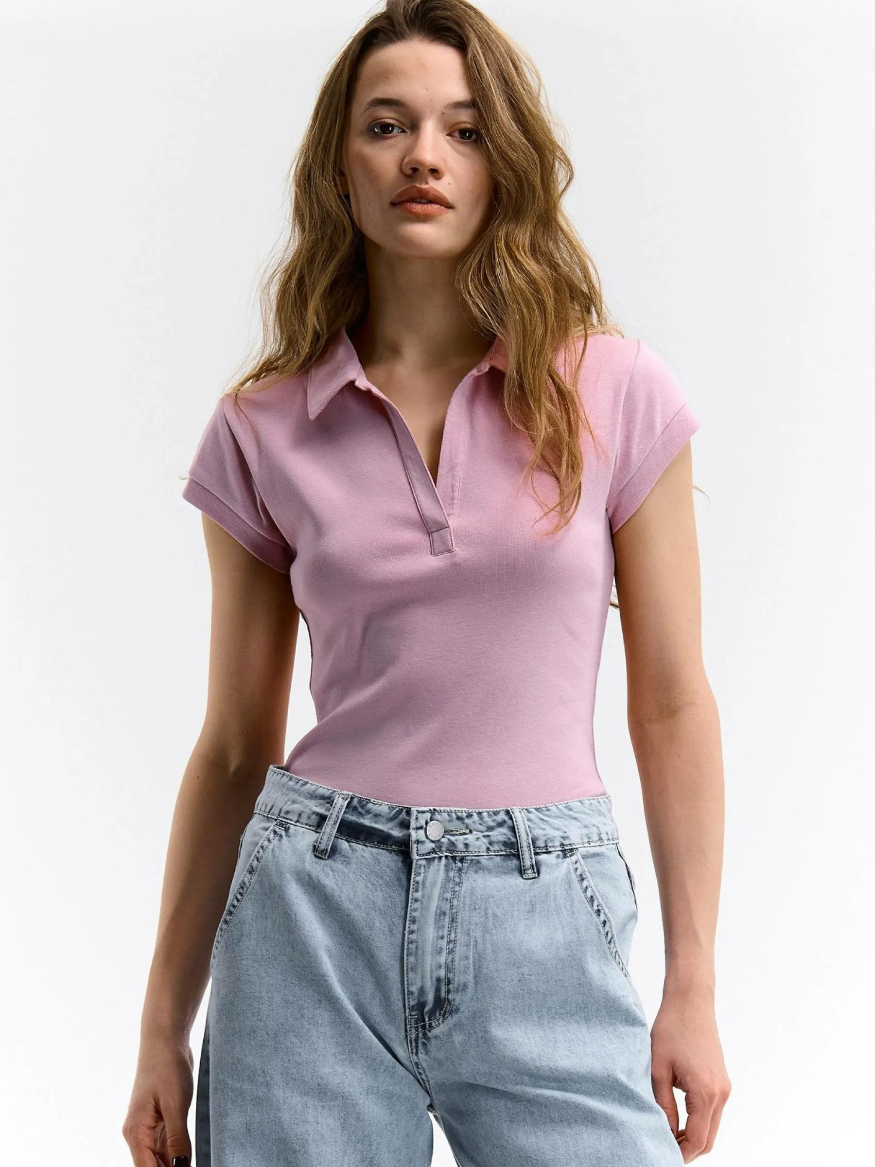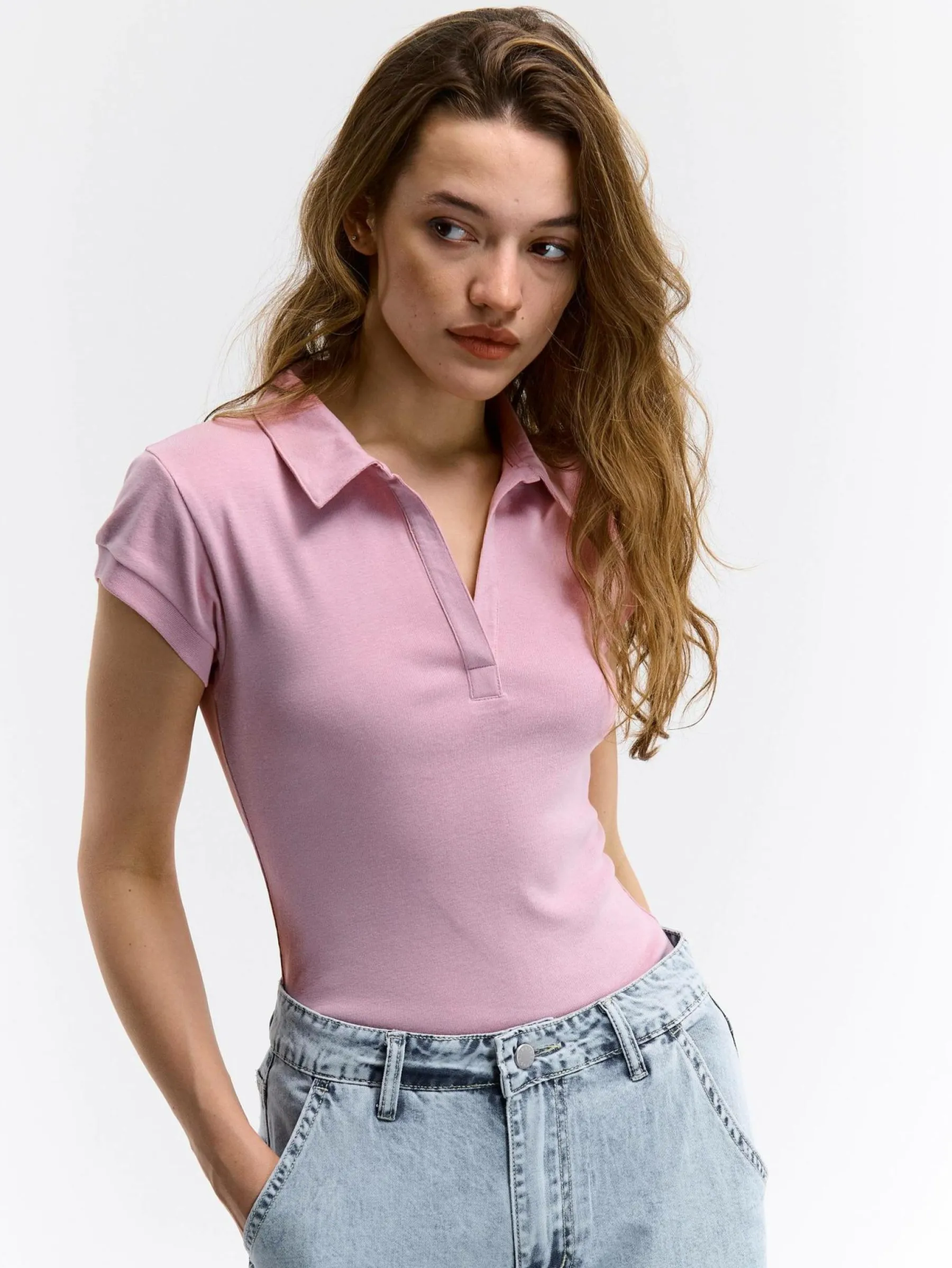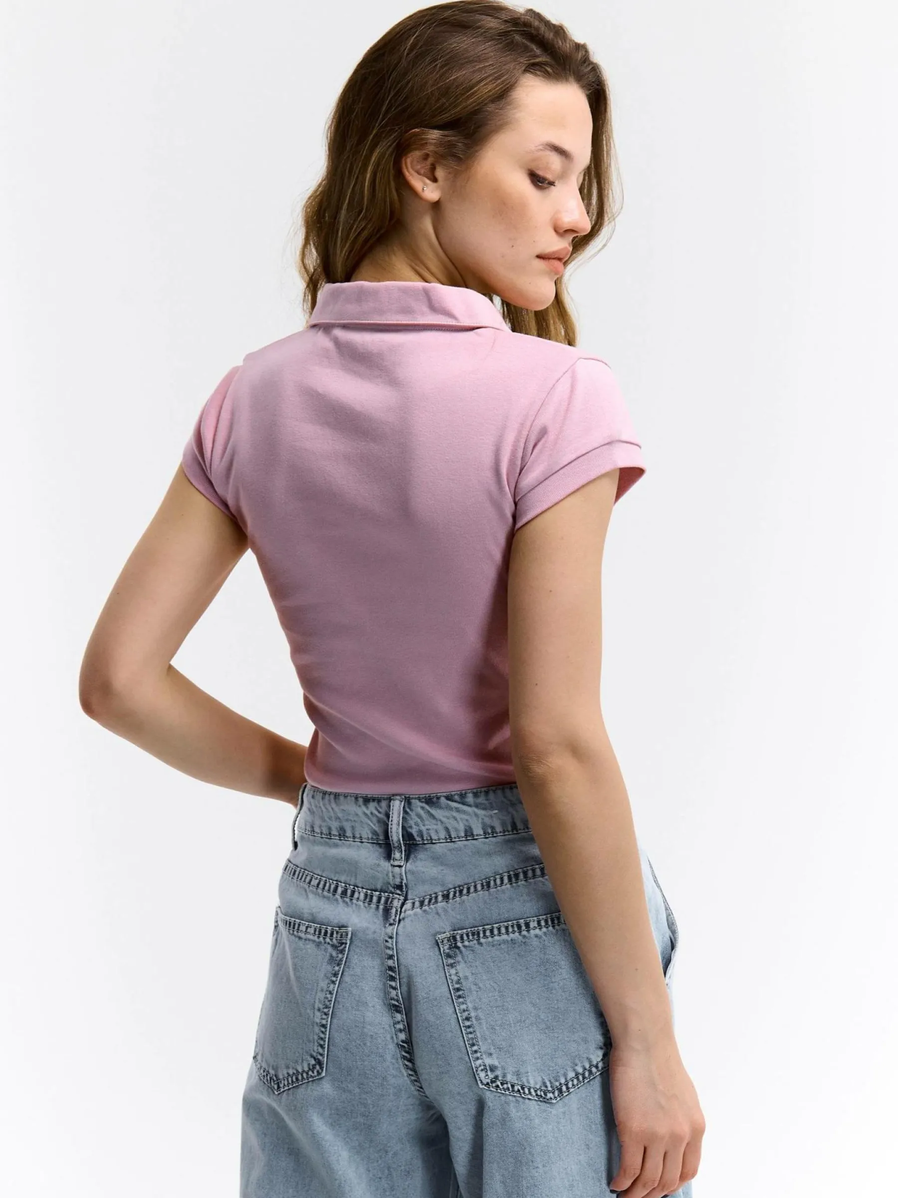 Kolor: różowyKrój: poloTyp: koszulkaRekaw: krótki rękawDługość: krótkiPattern style: pojedynczy kolorDetal: nad…