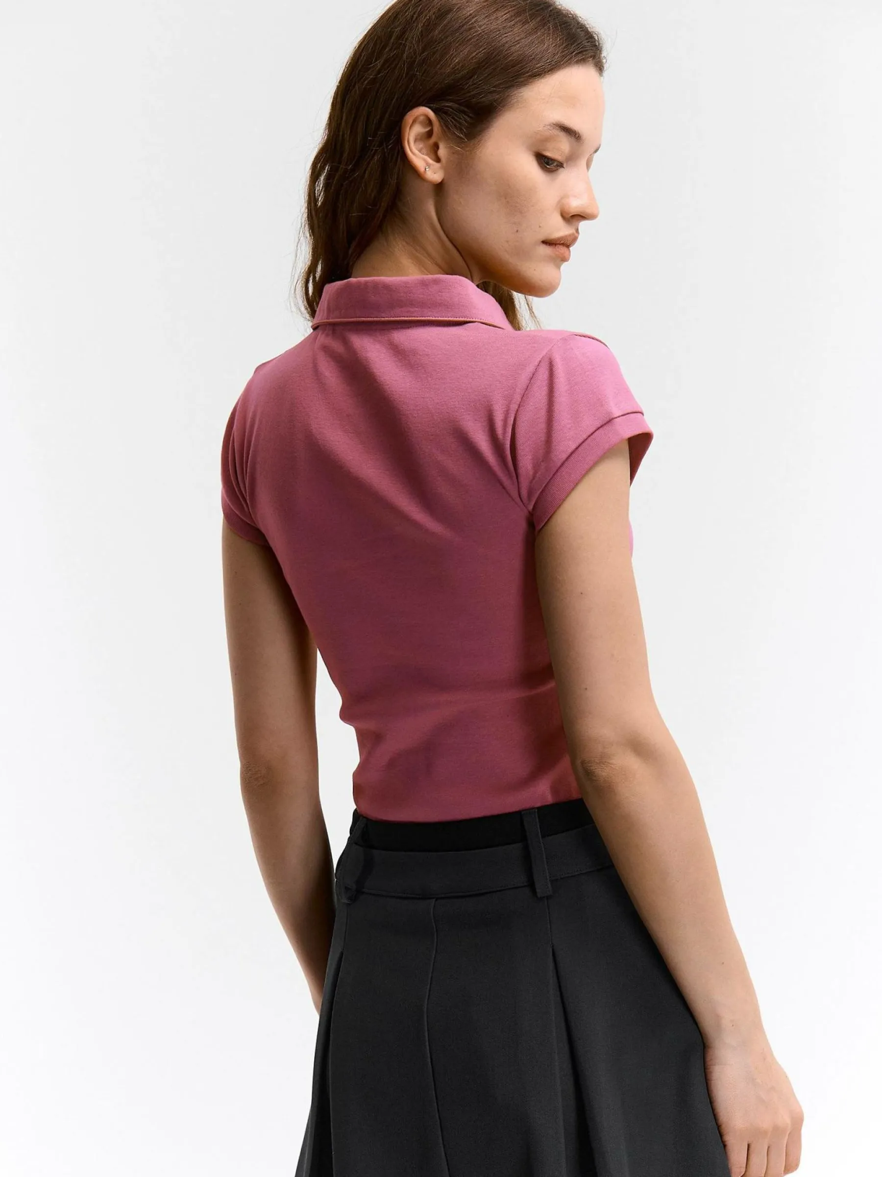 Kolor: różowyKrój: poloTyp: koszulkaRekaw: krótki rękawDługość: krótkiPattern style: pojedynczy kolorDetal: nad…