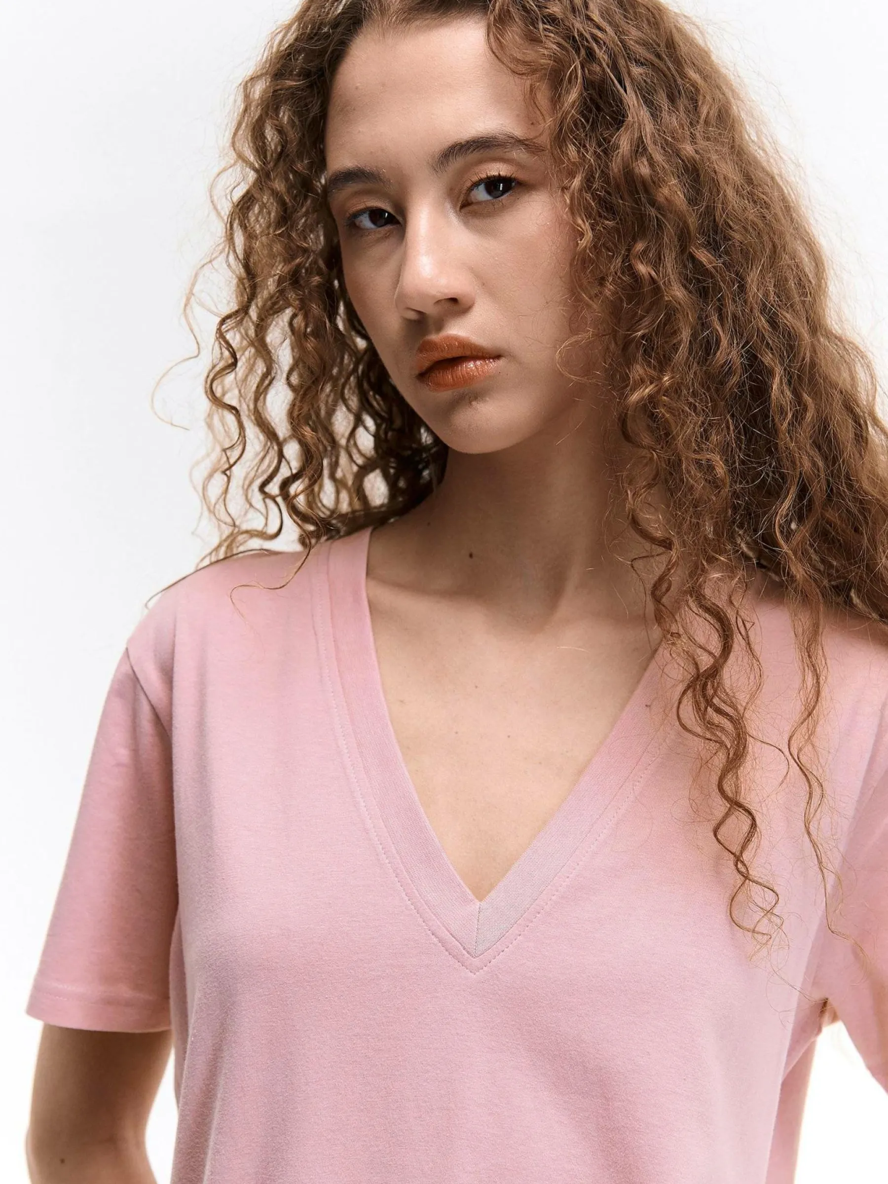 Kolor: różowyKrój: regularTyp: koszulkaRekaw: krótki rękawDługość: krótkiPattern style: pojedynczy kolorDetal: …