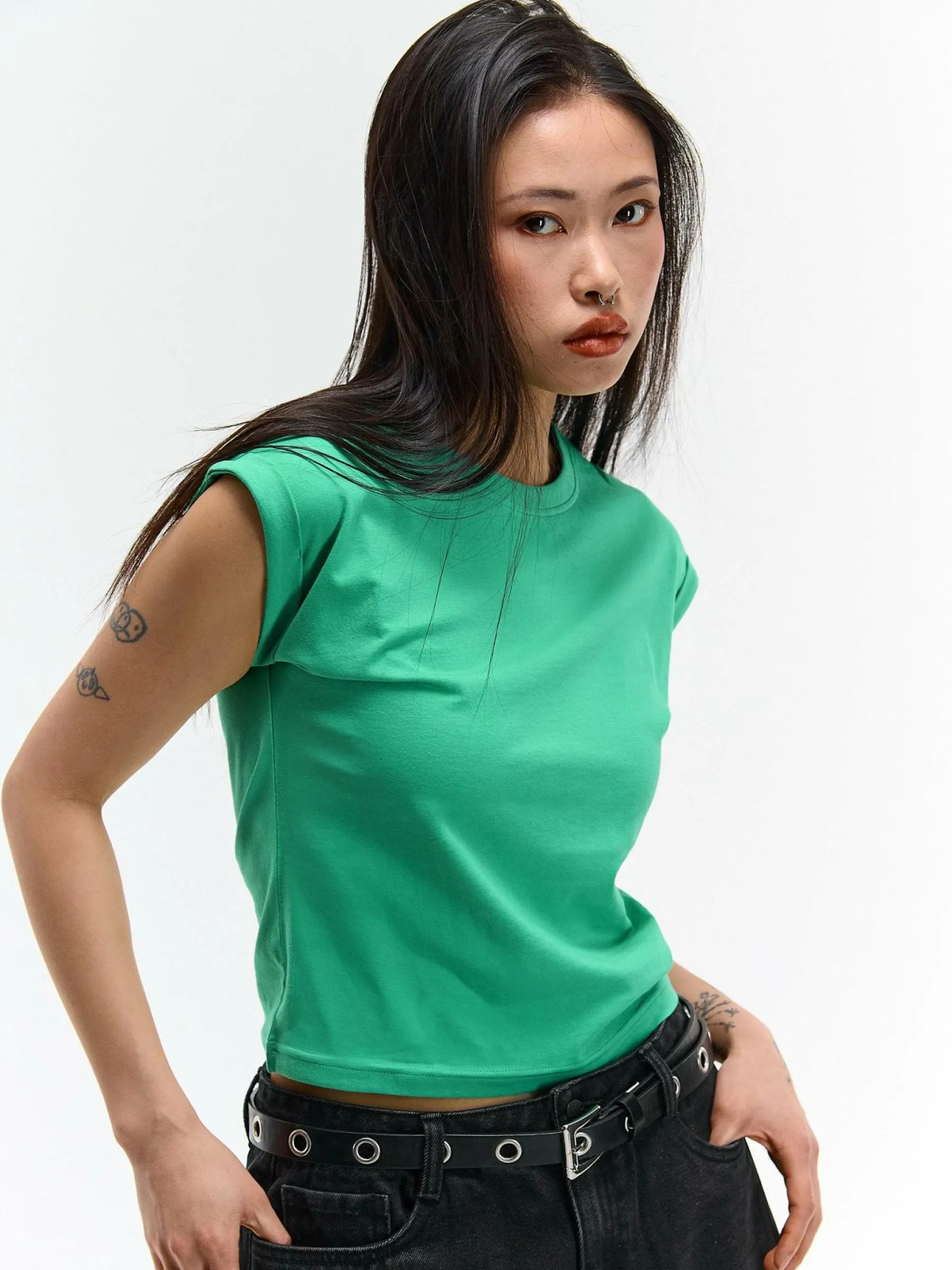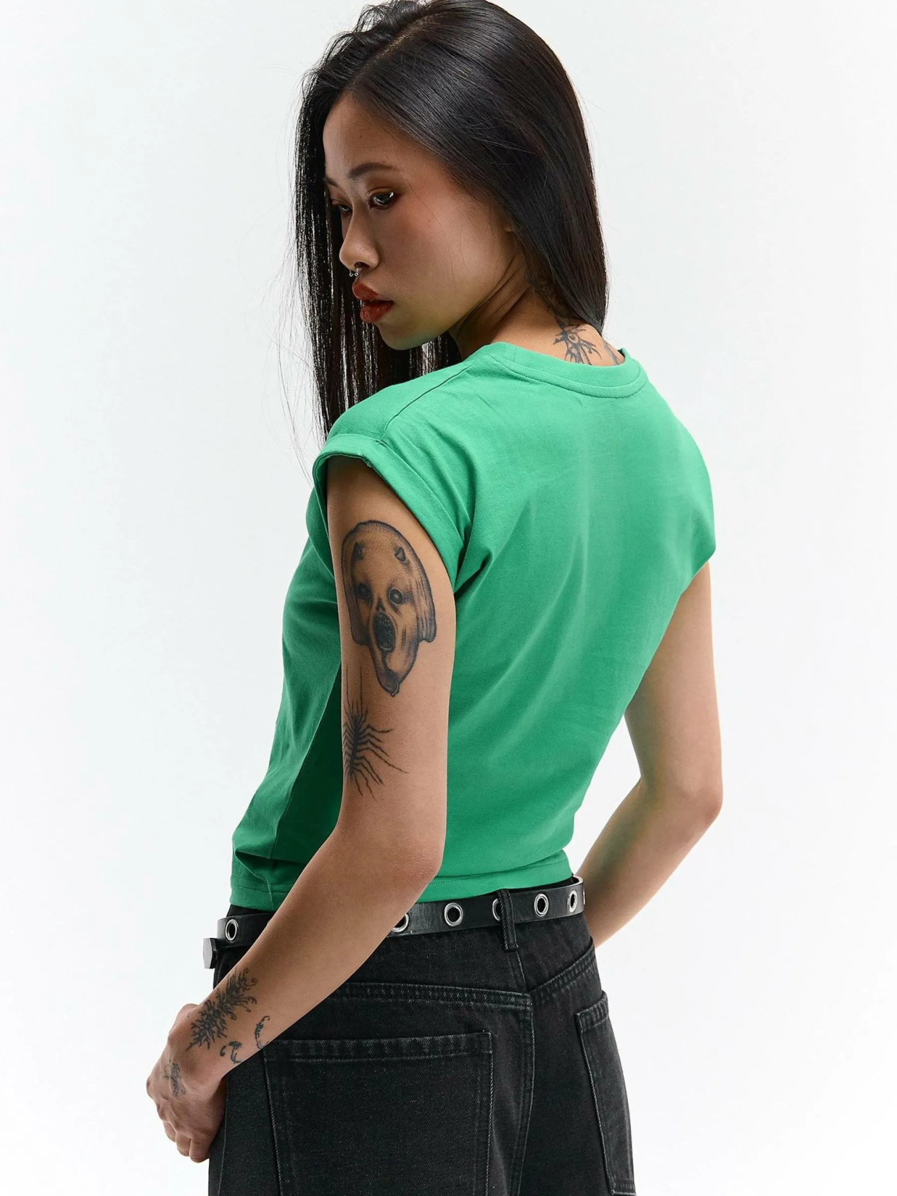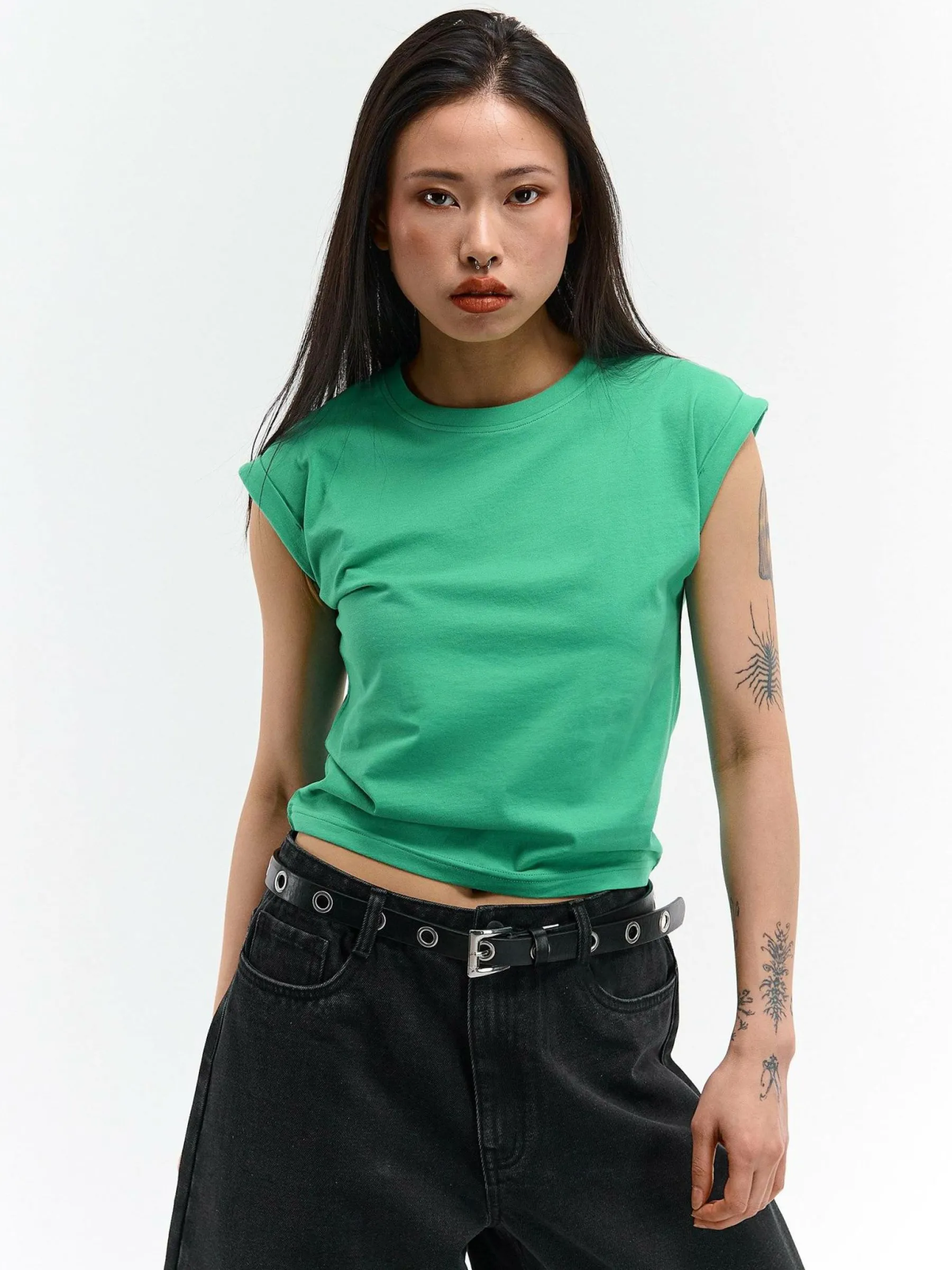 Kolor: zielonyKrój: regularTyp: koszulkaRekaw: krótki rękawDługość: krótkiPattern style: pojedynczy kolorDetal: n…