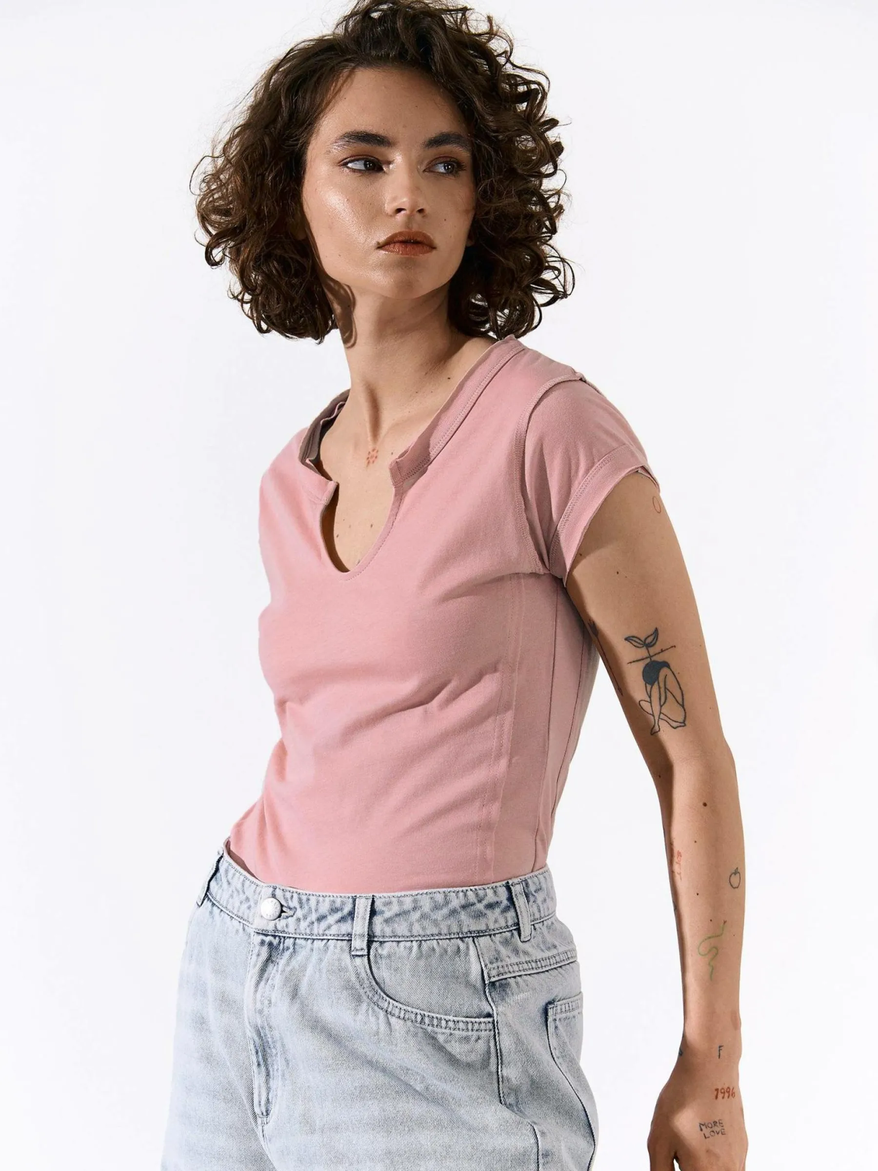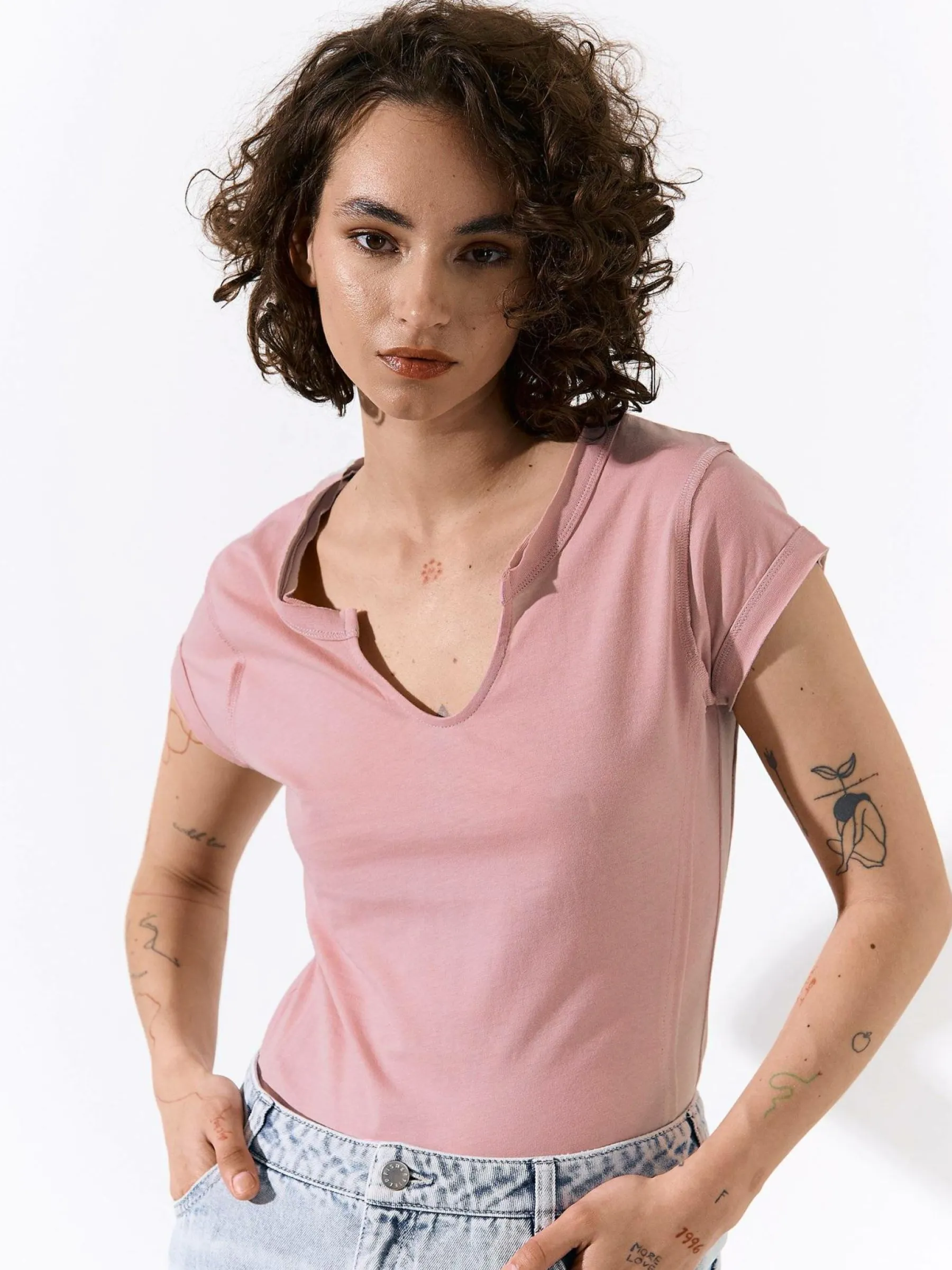 Kolor: różowyKrój: regularTyp: koszulkaRekaw: krótki rękawDługość: krótkiPattern style: pojedynczy kolorDetal: …
